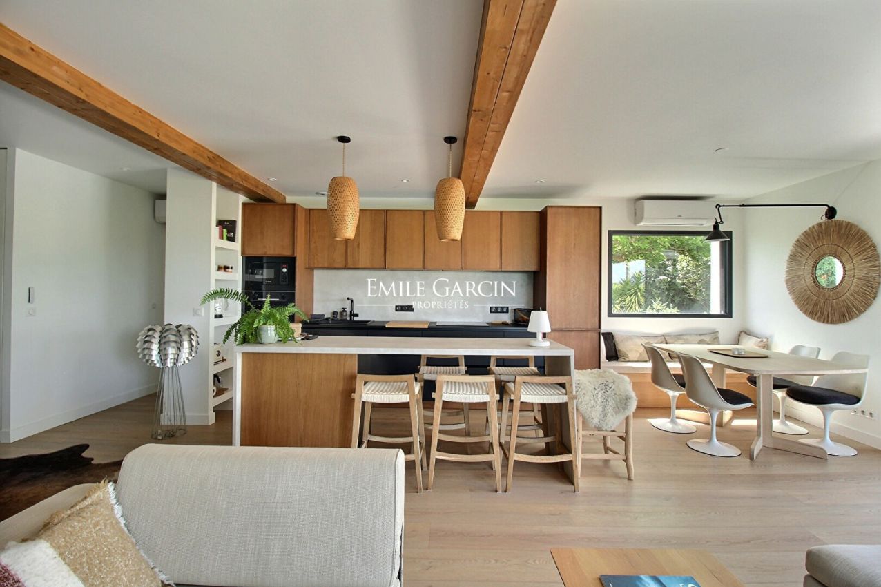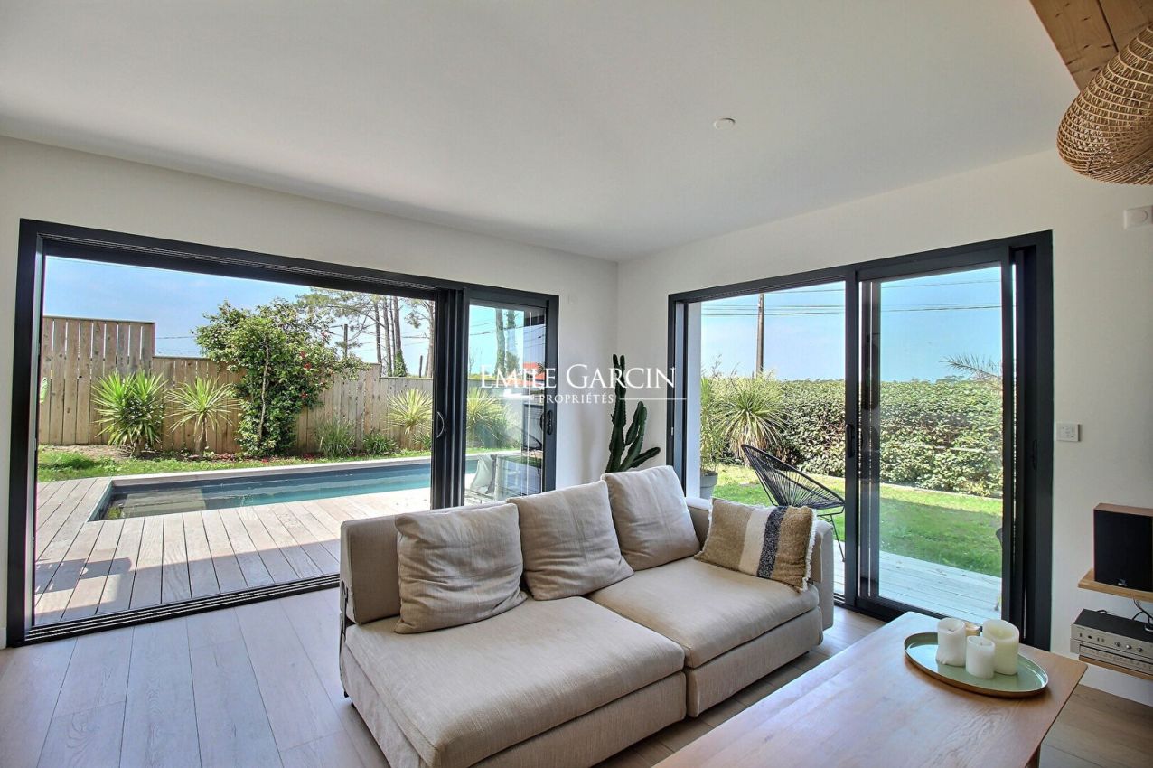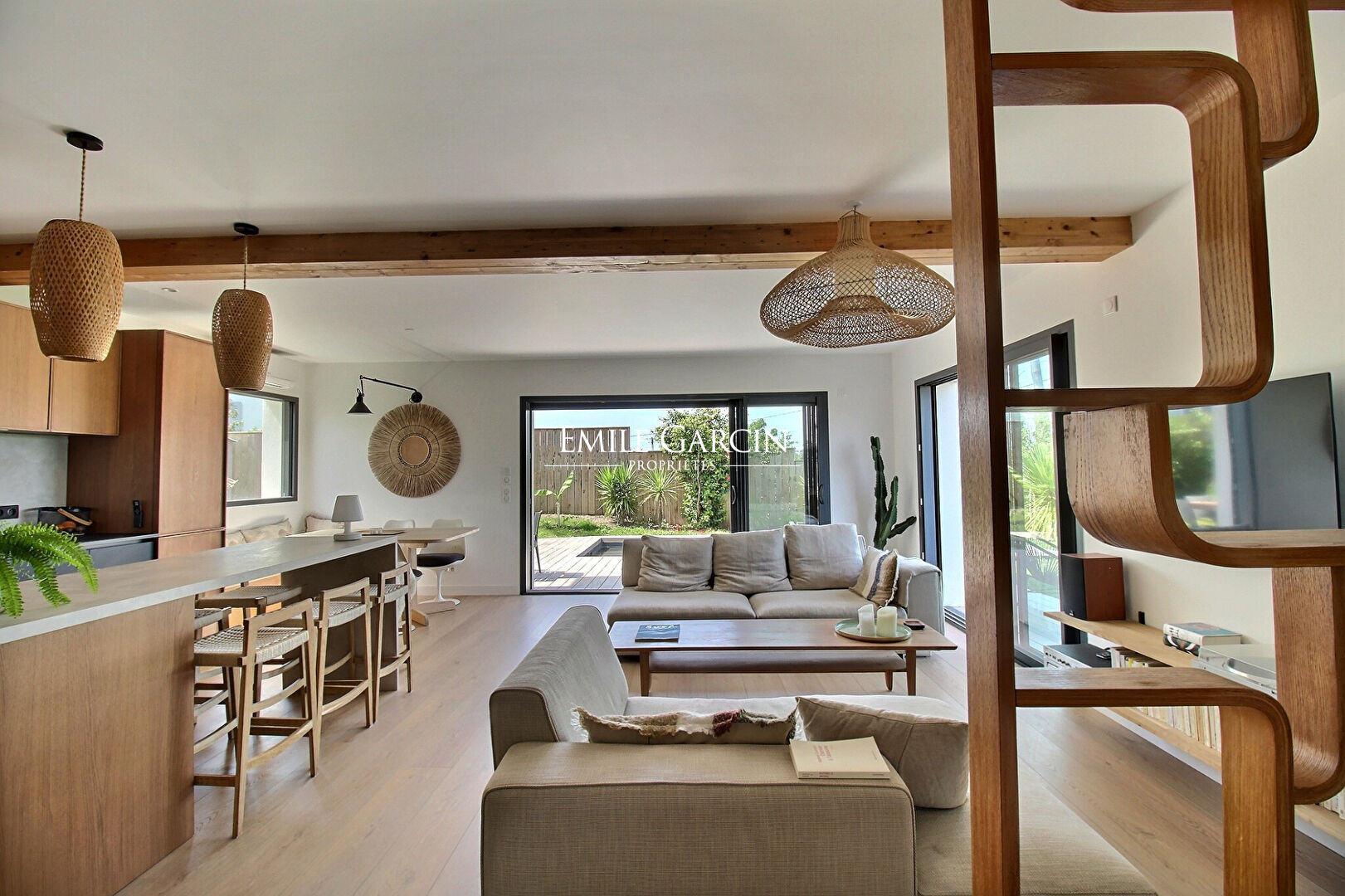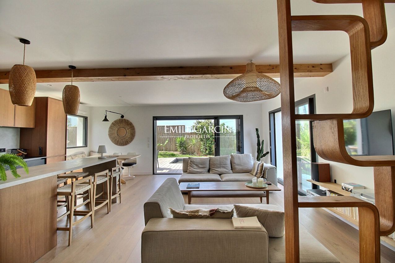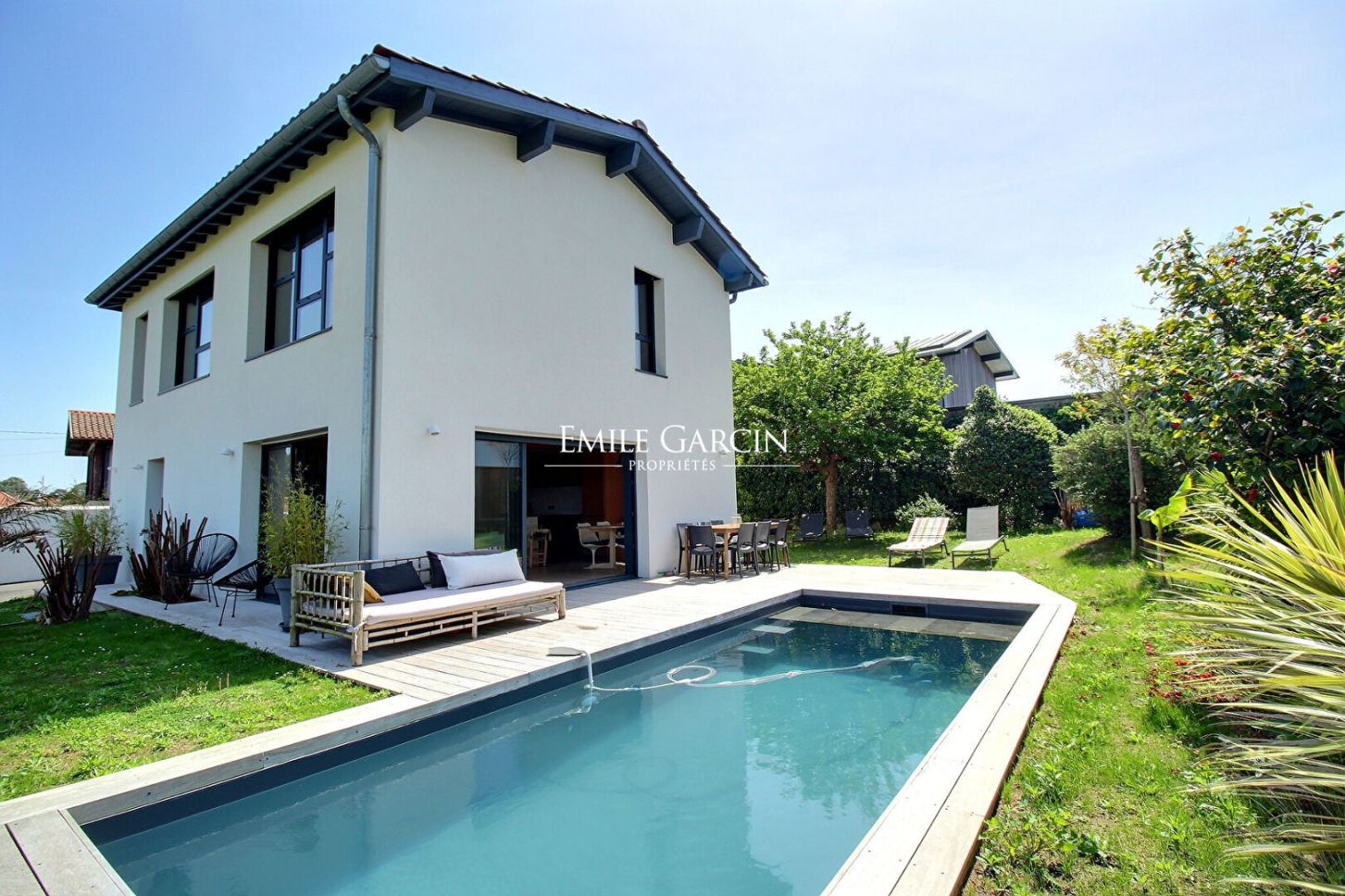 Located in Anglet, on the edge of the Pignada forest and within close proximity of the beachfront, this renovated house presents approximately 150 sq.m of living area on 500 sq.m of landscaped grounds featuring a swimming pool. Boasting a prime location in a peaceful and sought-after area on the Basque coast, the house is centred around a bright living room of approximately 50 sq.m that backs onto the garden and terraces, creating a seamless flow between the indoor and outdoor spaces. An Italian designer kitchen (fitted and equipped) blends in elegantly with the overall design. The master bedroom and its ensuite shower room are located on the ground floor and enjoy direct access to the garden. Upstairs, you will find a second master suite, as well as two bedrooms with views of the forest and a shared bathroom. Within minutes of the beaches, cycle paths, shops and amenities of Anglet, this house offers idyllic living conditions between the ocean and nature. Additional facilities include a garage.