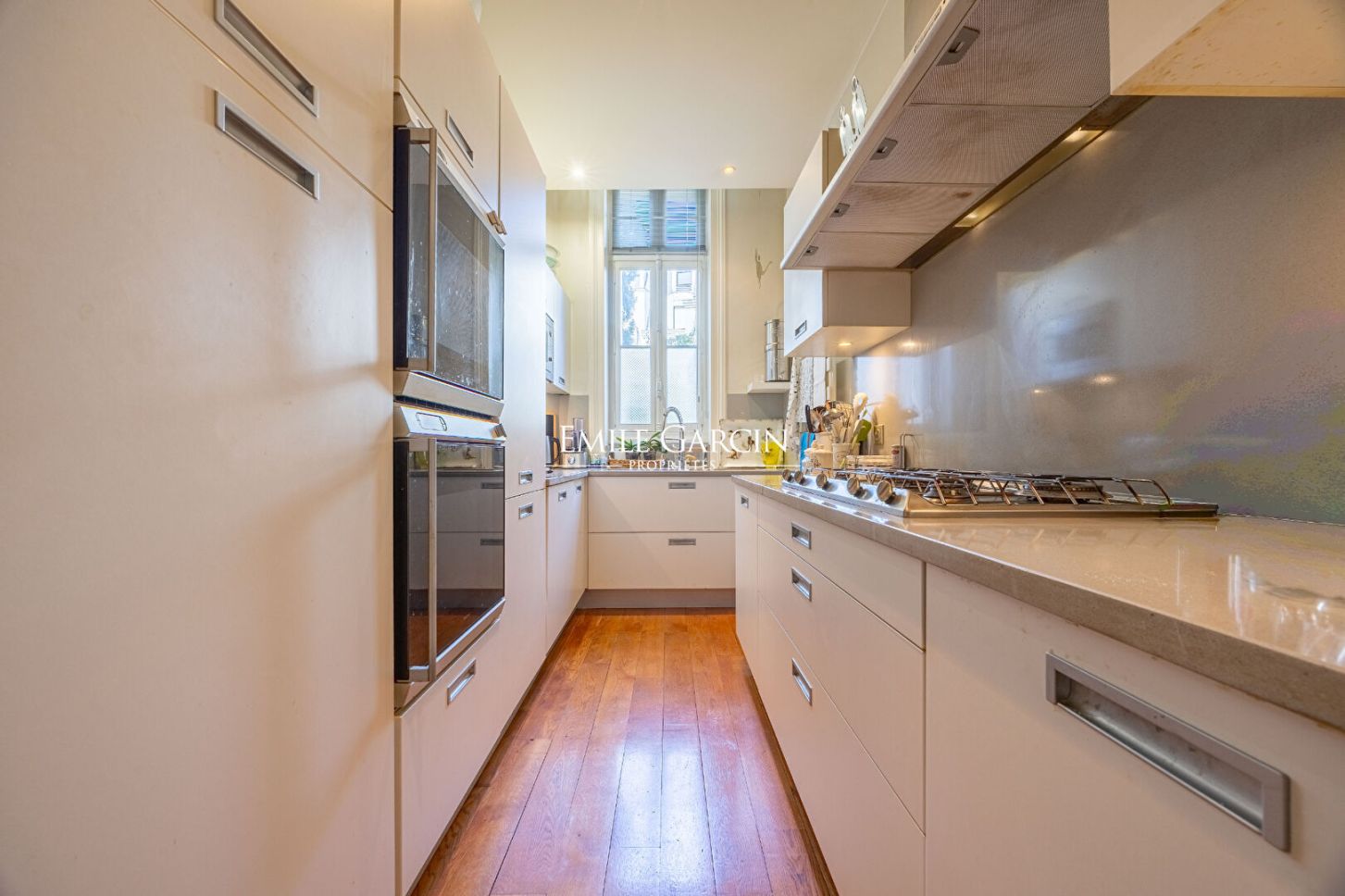 From the moment you enter, the atmosphere is captivating: elegant proportions, abundant natural light, and period features subtly enhanced by a remarkable renovation. The reception areas are enhanced by beautiful fireplaces and flow seamlessly into one another: a large living room, a smaller sitting room, and a dining room are perfect for entertaining or enjoying everyday life in a refined setting. The fully equipped kitchen integrates elegantly into this ensemble. Then, almost as if a secret, the eye is drawn to the private garden: a true haven of greenery, a rare find in the city center, which naturally extends the living spaces and lends this apartment a home-like feel.
