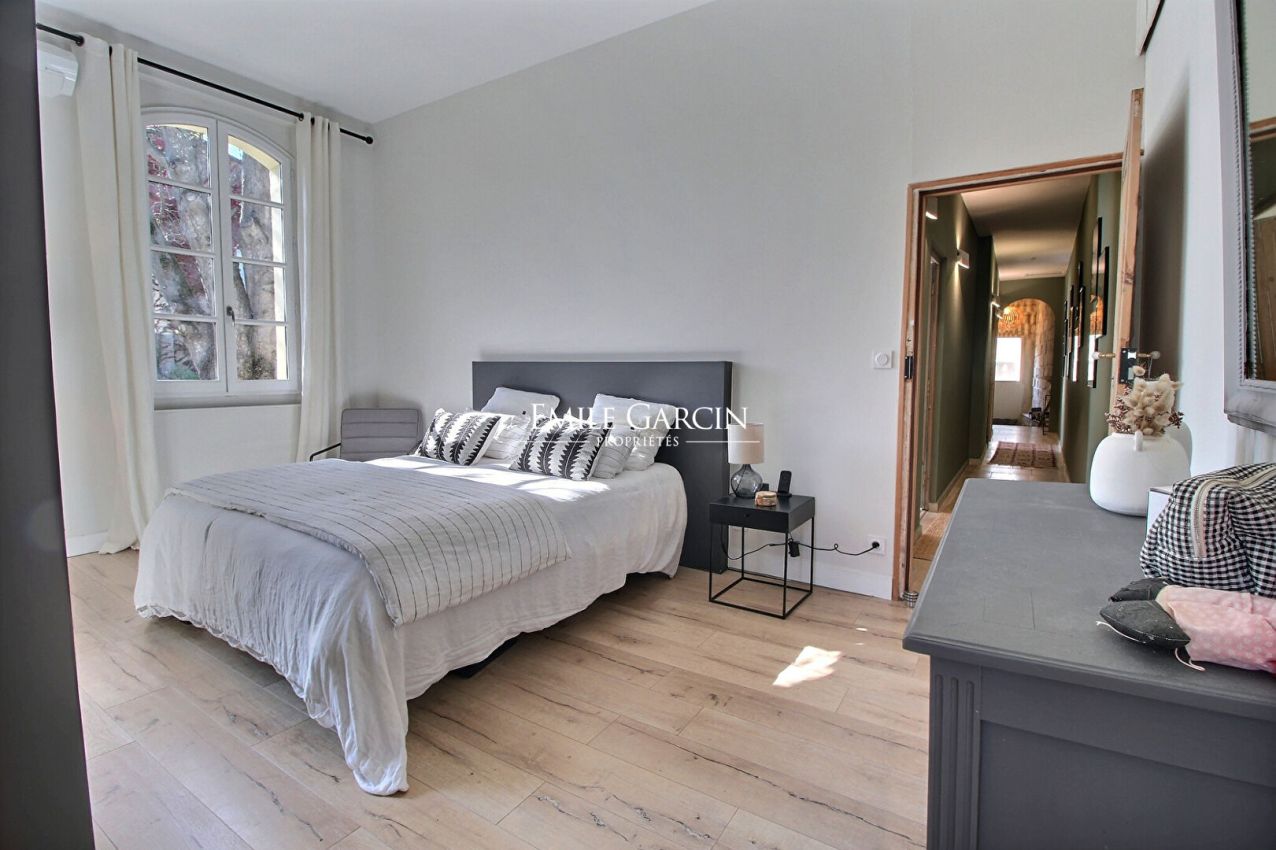 Located in the centre of Uzès, this charming renovated stone house presents a harmonious blend of authenticity and modernity. A beautiful wooden door opens onto a bright entrance hall. To the right, there is a master suite offering comfort and practicality, followed by a storage room with independent entrance (suitable for use as a bicycle store). To the left, the hall extends towards a succession of reception rooms. The fully equipped kitchen backs onto the garden, making it easy to enjoy the outdoors in the summer. Adjacent to the kitchen, the living room and dining room stand out for their large windows, allowing natural light to bathe the space and creating a warm and welcoming atmosphere. In addition, a pantry/utility room and a guest WC add a touch of functionality. Upstairs, the right wing of the house contains a first ensuite bedroom followed by two east-facing suites bathed in morning light. These two bedrooms also have a kitchen area, creating an independent guest space. On the other side of the upstairs floor, you will find three additional south-facing ensuite bedrooms, guaranteeing optimal sunshine throughout the day. Please note that all the bedrooms have air conditioning. Outside, the delightful little garden sits under the shade of a majestic chestnut tree. It offers a comfortable seating area, a dining area and a plunge pool This stone house would make the perfect family home or guest house.