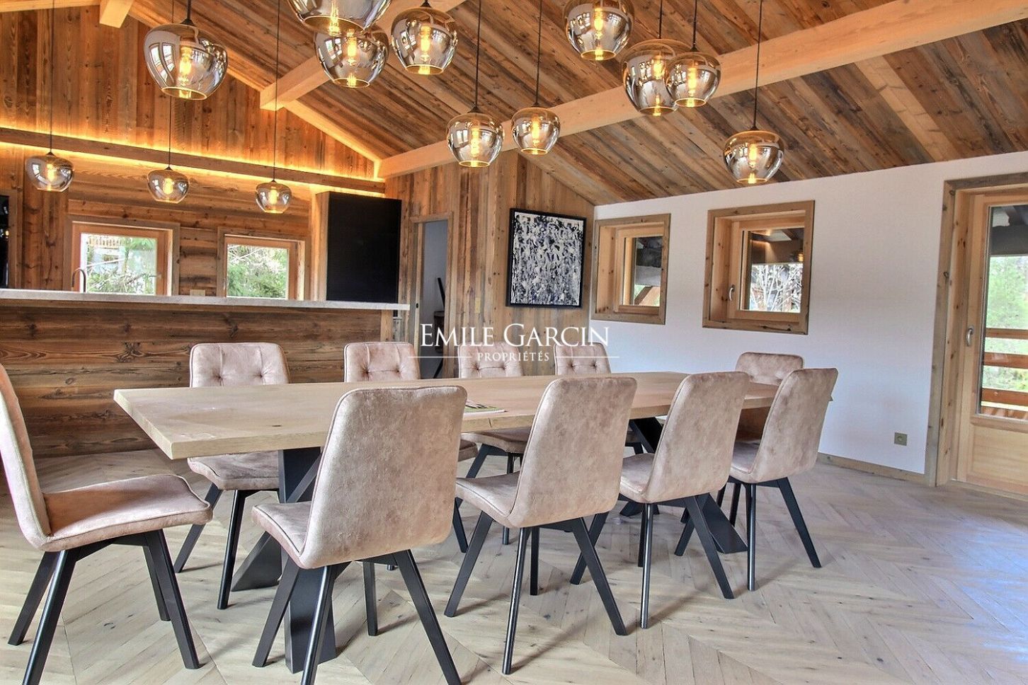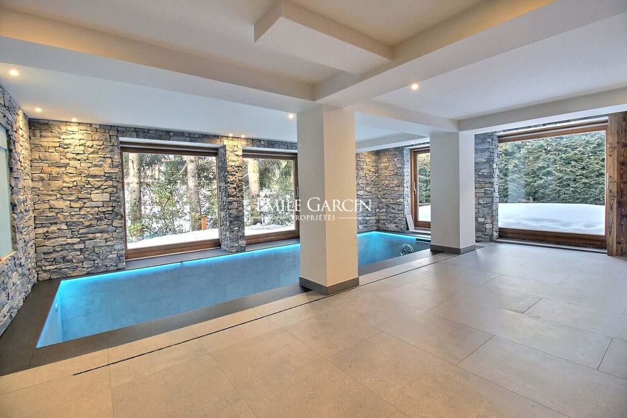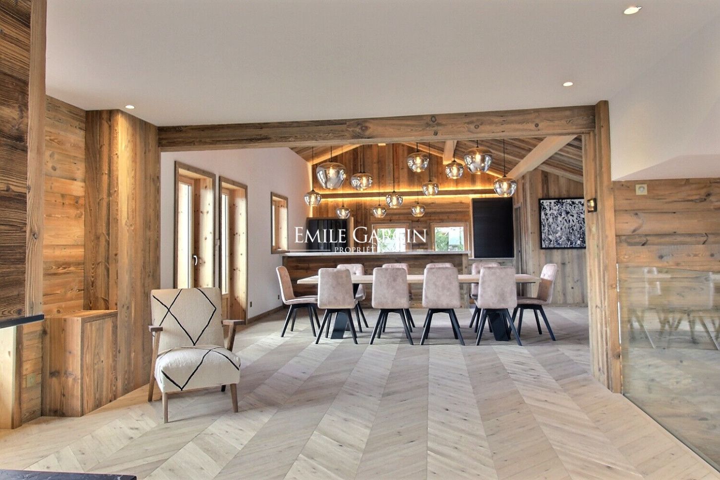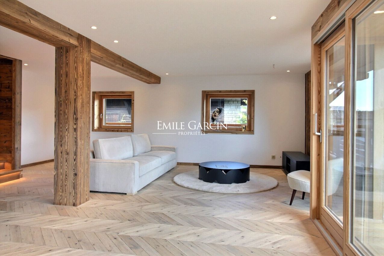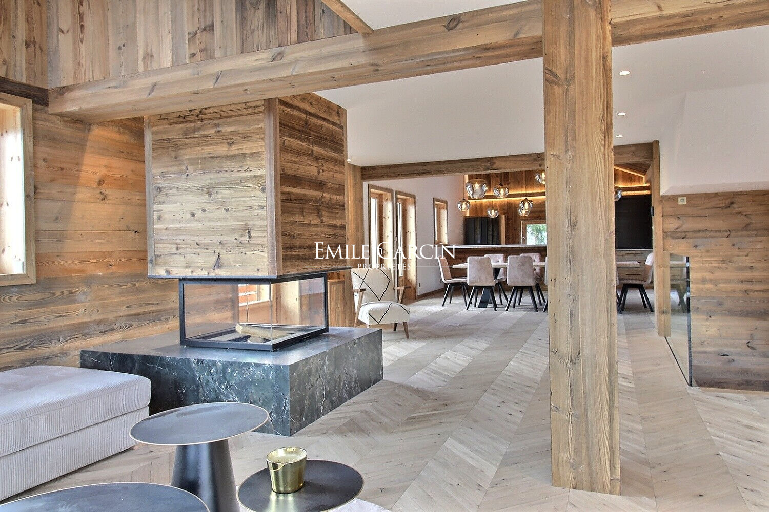Located in an unspoiled setting alongside a stream just a short walk from the centre of Megève, this fully renovated chalet of approximately 388 sq.m presents the perfect blend of Savoyard charm and high-end contemporary touches. First occupation. The property stands out for its exceptional location, which is peaceful yet close to all local amenities. The spacious and welcoming main room features a fully equipped kitchen and a double living room with bar area and fireplace. Large windows reveal spectacular views of the village and surrounding mountains. Spread over four levels (all served by an elevator), there are seven comfortable ensuite bedrooms including a sumptuous master suite occupying the entire top floor. Additional facilities include a wellness area with indoor pool and spa, a laundry room and a spacious garage. A rare opportunity in the heart of Megève.