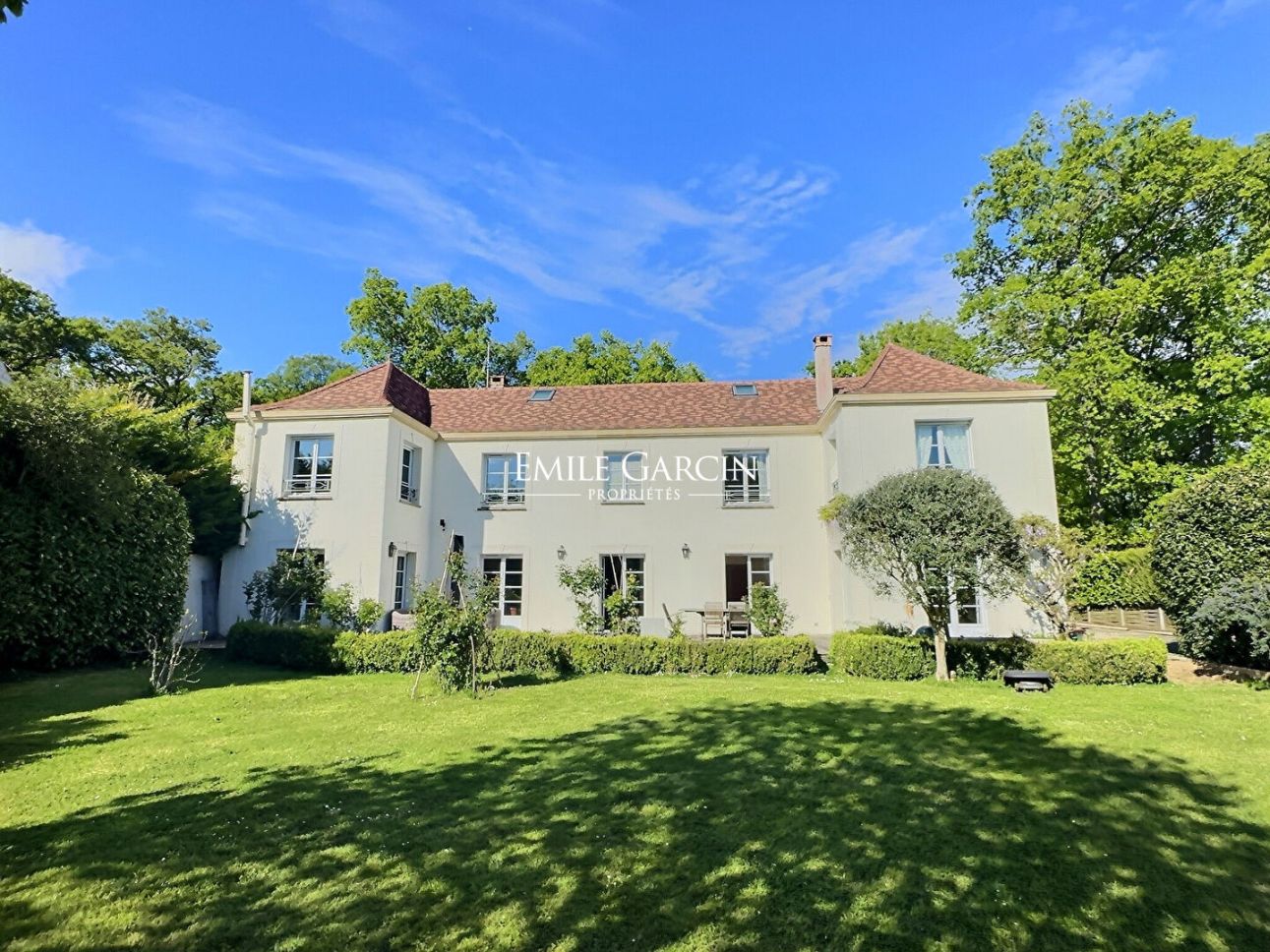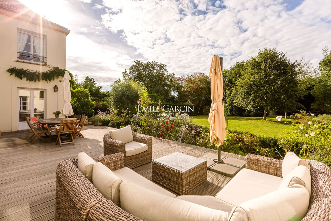 SAINT-NOM-LA-BRETÈCHE - EXCEPTIONAL MODERN PROPERTY IN THE HEART OF NATURE. Tucked away in privileged green surroundings in Saint-Nom-la-Bretèche, this exceptional modern property presents a spacious interior with a high-end finish. In total, it offers nearly 350 sq.m of living space (719 sq.m floor space) on 2,580 sq.m of magnificent landscaped south-facing grounds. From the moment you enter, the tone is set: elegance, light and absolute comfort. The garden level includes a beautiful reception room of 64 sq.m with a fireplace, ideal for entertaining guests, which backs onto a vast sunny terrace and a secluded garden. On this level, you will also find a cosy office with a wood-burning stove, a family kitchen with dining area and fireplace, and a guest WC. Upstairs, a magnificent stone staircase leads to perfectly laid-out sleeping quarters including: a master suite with dressing room, bathroom/shower and toilet; three bright bedrooms; a bathroom with toilet; a shower room with toilet; and a large, flexible office that could easily be converted into two additional bedrooms. On the top floor, the insulated and converted attic offers the ideal space in which to create an additional bedroom, office or games room. The full basement floor is dedicated to well-being and functionality, offering exceptional amenities including: an indoor swimming pool; a gym with shower; a wine cellar; laundry and utility rooms; and a garage for up to six vehicles (equipped with electric vehicle charging station). The property is idyllically located for golf enthusiasts, within close proximity of the renowned courses of Noisy-le-Roi and Saint-Nom-la-Bretèche. Quick access to the A13 motorway; 3 minutes away from Noisy train station; school transport provided to Saint-Germain-en-Laye and Versailles.