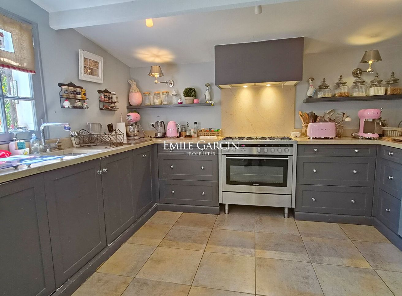 This very attractive house presents approximately 200 sq.m of living area in perfect condition backing onto a delightful, completely flat garden of 1800 sq.m. Not overlooked, the ground floor comprises two living rooms (one with a fireplace), a dining room, a fully equipped kitchen with breakfast area and utility room, a conservatory used as an office/library, a utility room and a shower room. The first floor offers three bedrooms, including a master suite, and an additional shower room. A charming pergola shelters an outdoor living and dining area, elegantly complementing the BBQ area, which sits alongside the saltwater swimming pool. There is also a single-vehicle carport and additional space for parking.
