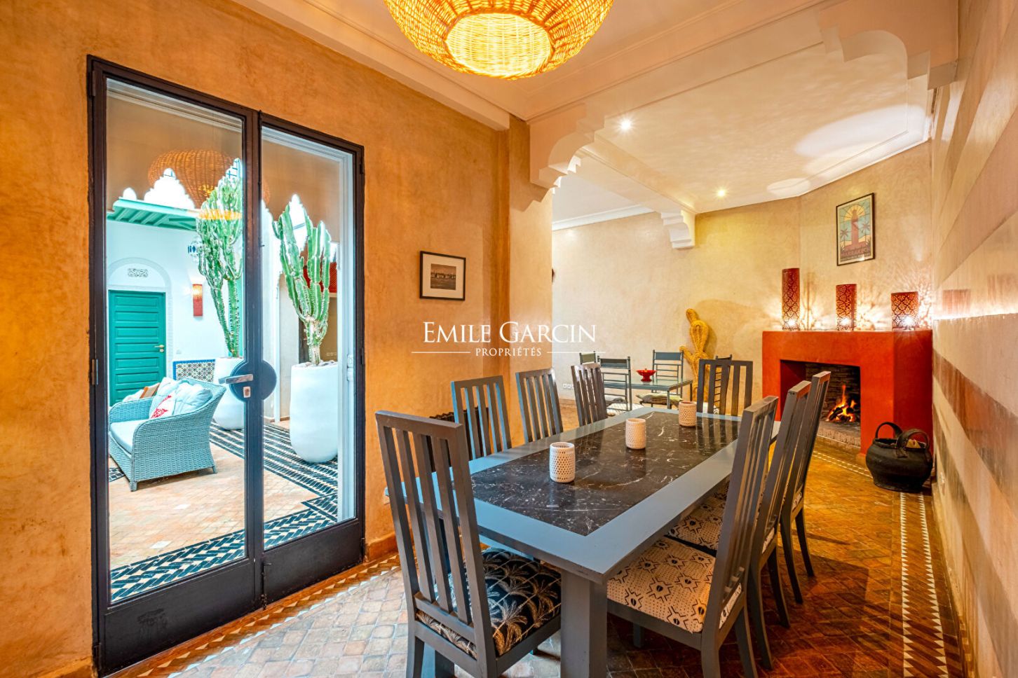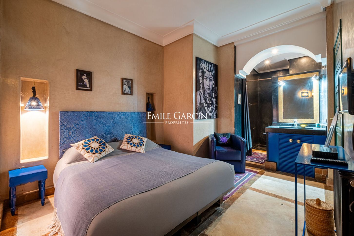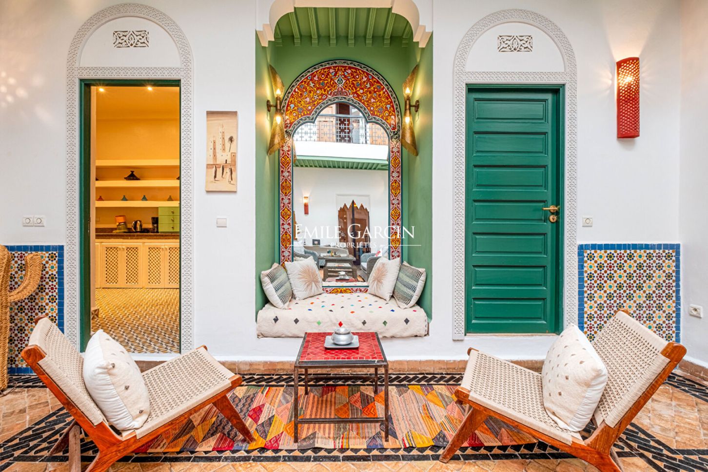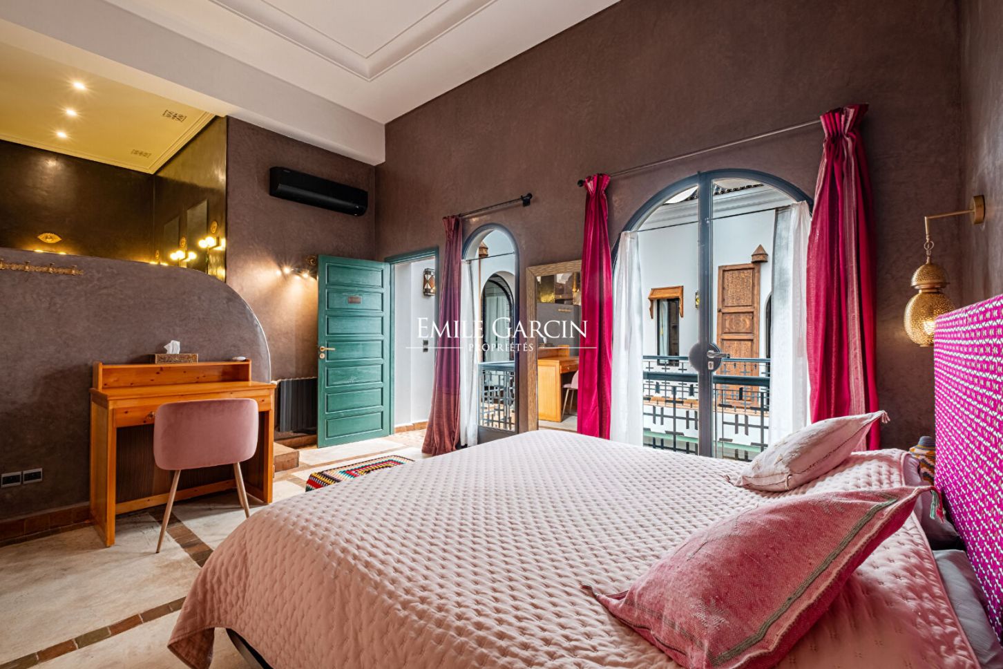Located in one of the most vibrant and iconic neighbourhoods of the medina, this riad presents 320 sq.m of living area on a footprint of 187 sq.m. It comprises a large and beautifully landscaped patio featuring a heated swimming pool equipped with a retractable roof, a spacious living room, a dining room with fireplace, a fully equipped kitchen, six beautiful ensuite bedrooms, a hammam and a large furnished terrace with hot tub, relaxation area, dining area and cooking facilities. In perfect condition throughout, this riad represents an excellent opportunity for anyone looking either to buy a family home or run a guest house for holidaymakers. Its modern facilities include reversible air conditioning, solar panels, a gas-powered hammam and a heat pump for the pool.