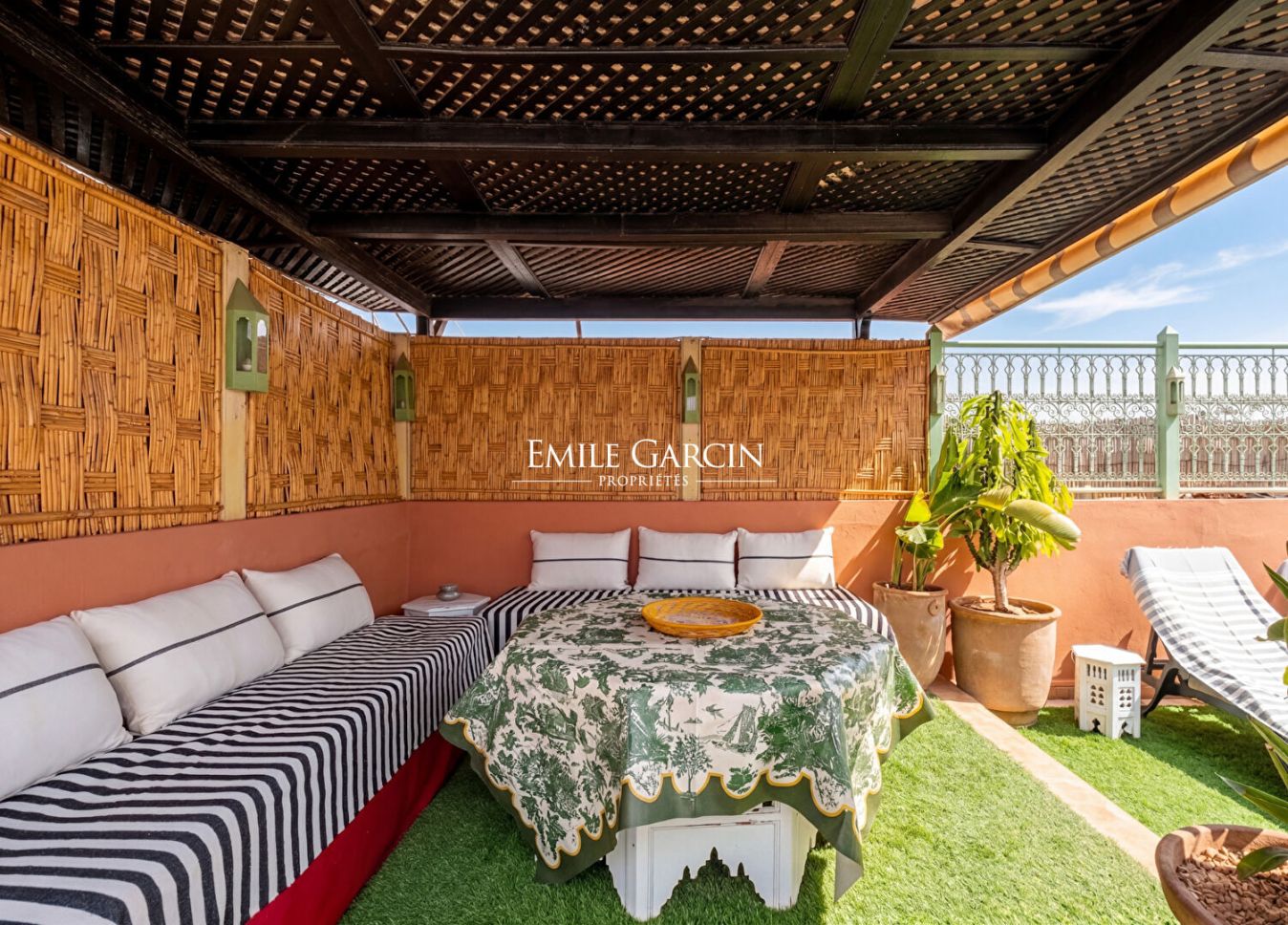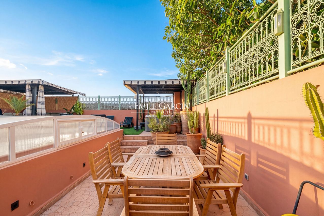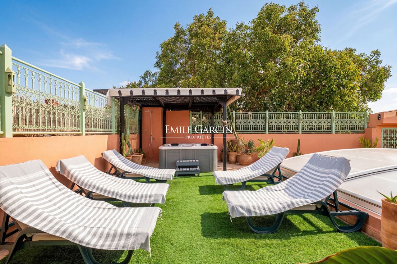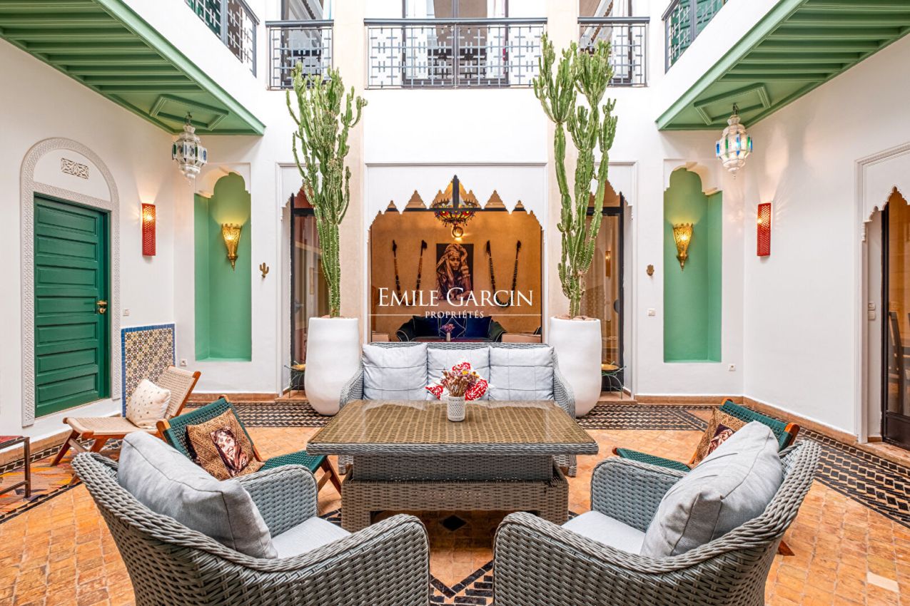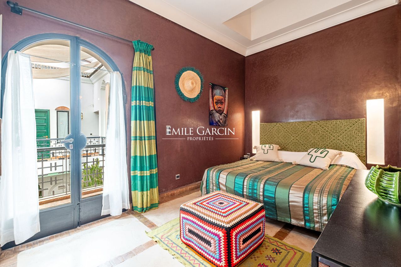 Located in one of the most vibrant and iconic neighbourhoods of the medina, this riad presents 320 sq.m of living area on a footprint of 187 sq.m. It comprises a large and beautifully landscaped patio featuring a heated swimming pool equipped with a retractable roof, a spacious living room, a dining room with fireplace, a fully equipped kitchen, six beautiful ensuite bedrooms, a hammam and a large furnished terrace with hot tub, relaxation area, dining area and cooking facilities. In perfect condition throughout, this riad represents an excellent opportunity for anyone looking either to buy a family home or run a guest house for holidaymakers. Its modern facilities include reversible air conditioning, solar panels, a gas-powered hammam and a heat pump for the pool.