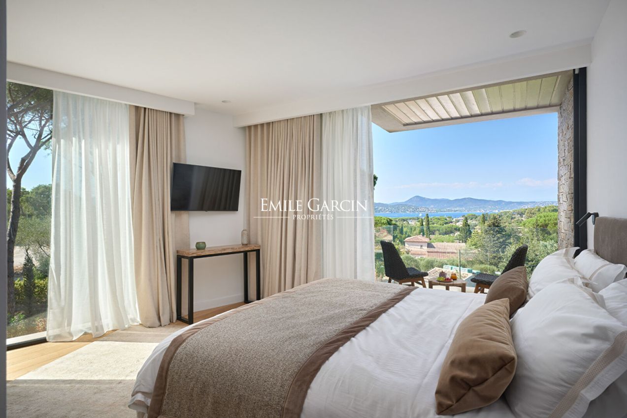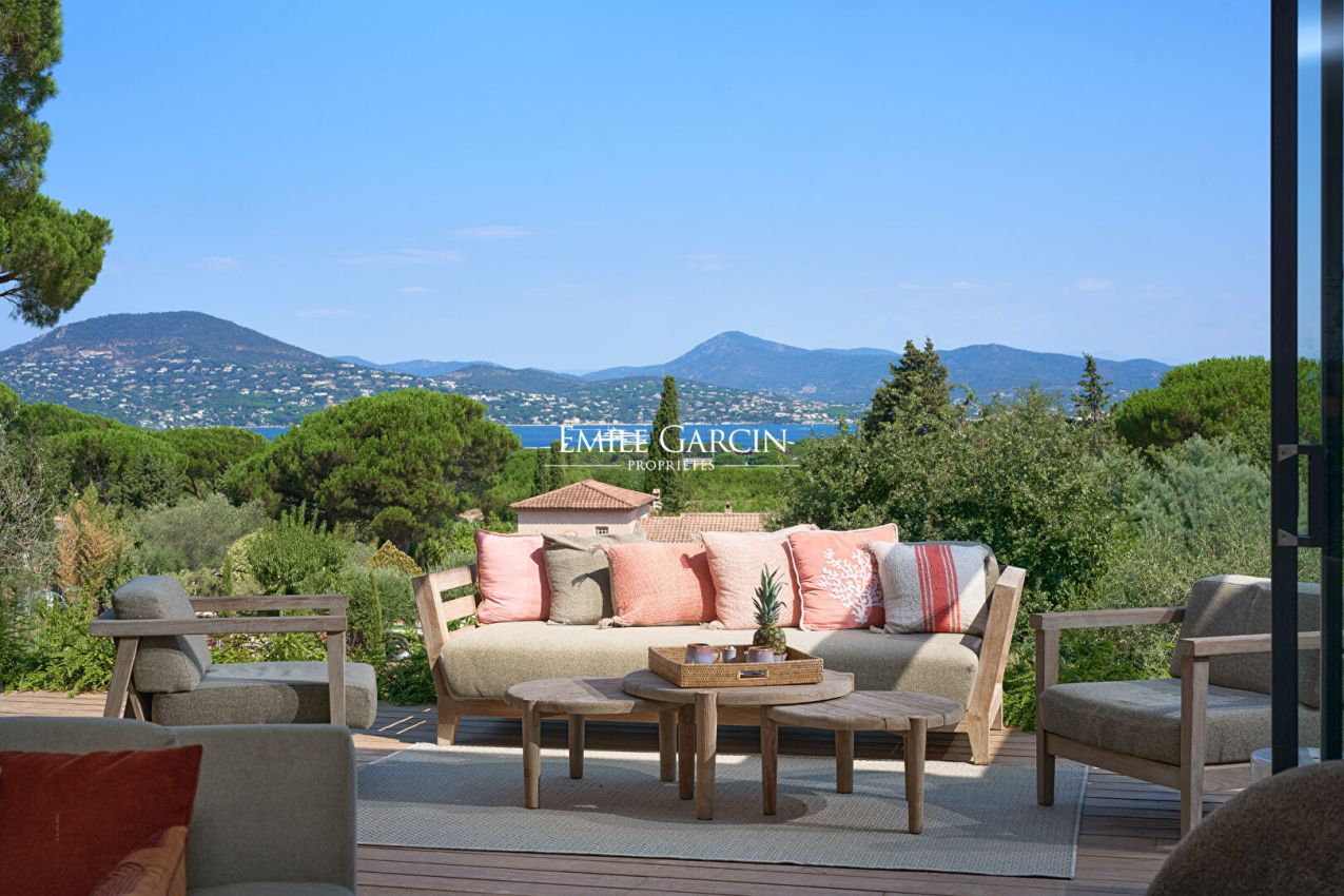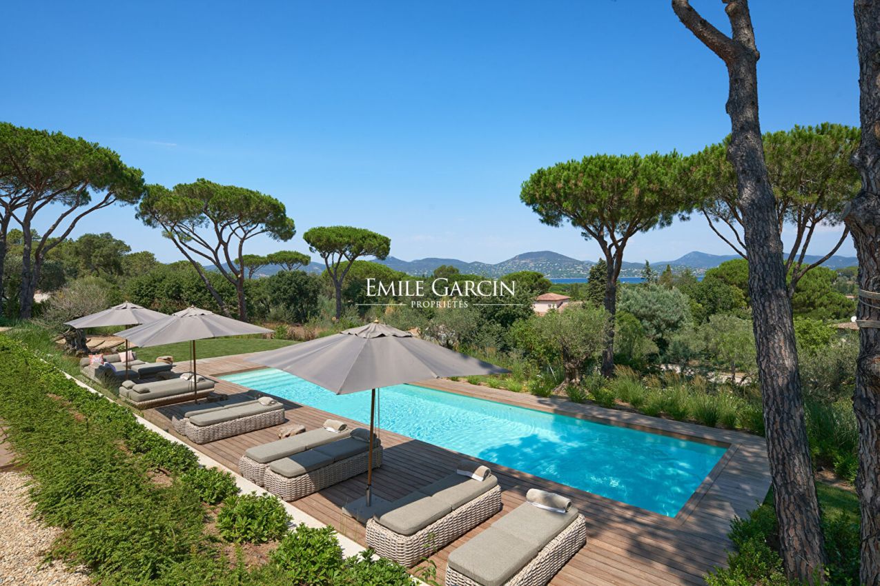 Sumptuous villa presenting 520 m² of living area on the Gassin hillside, just a few minutes from the centre of Saint-Tropez. This contemporary property is spread over three levels and includes six beautiful suites with sea views, in addition to a sauna and a full home gym. Outside, you will find a beautiful terrace with dining area, a pétanque court and a 16 x 4 m swimming pool. High quality decor and construction materials. Top-of-the-range facilities. Sea view. Registration number: 83065 000457 XO