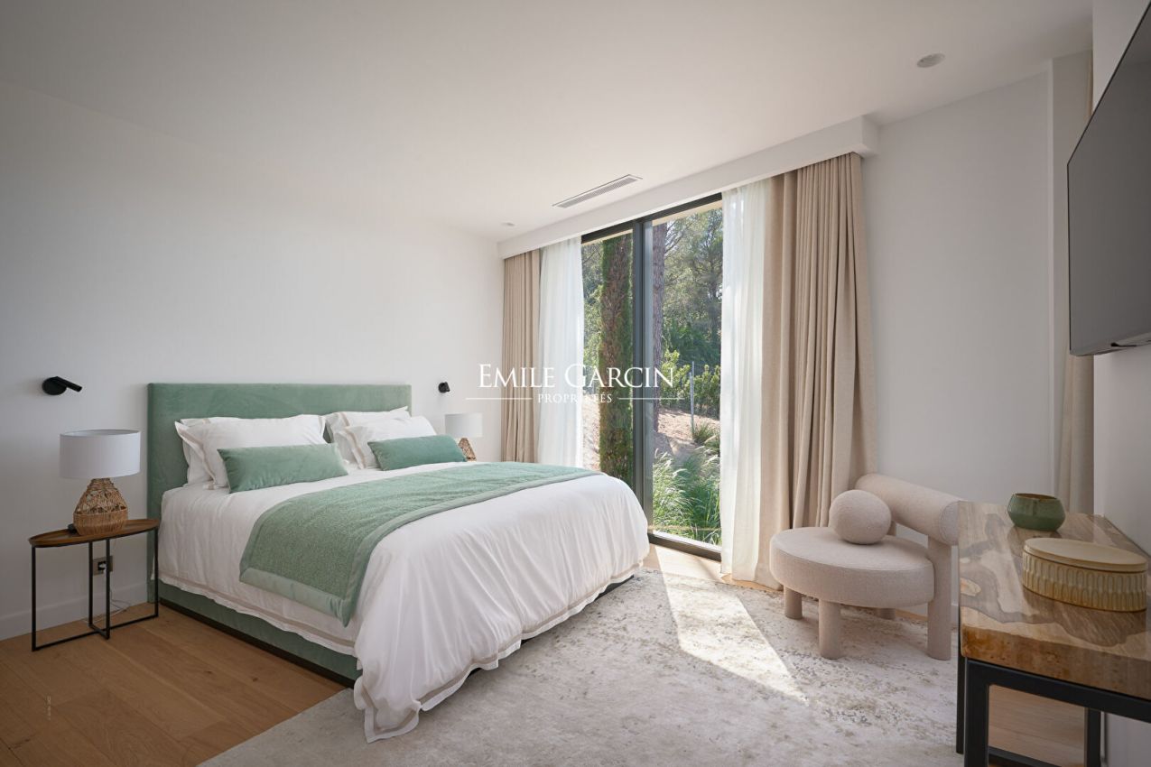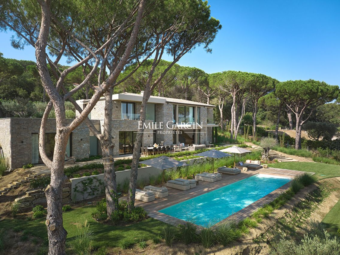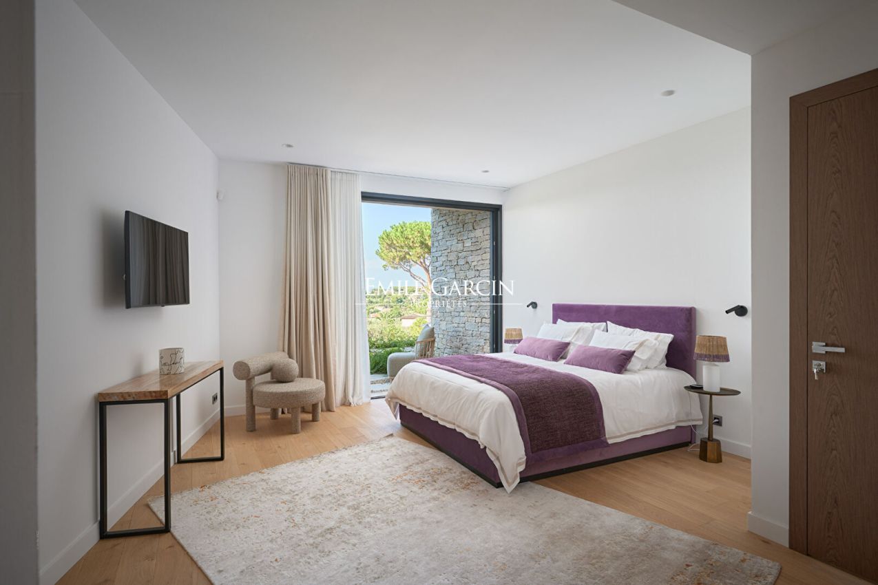 Sumptuous villa presenting 520 m² of living area on the Gassin hillside, just a few minutes from the centre of Saint-Tropez. This contemporary property is spread over three levels and includes six beautiful suites with sea views, in addition to a sauna and a full home gym. Outside, you will find a beautiful terrace with dining area, a pétanque court and a 16 x 4 m swimming pool. High quality decor and construction materials. Top-of-the-range facilities. Sea view. Registration number: 83065 000457 XO