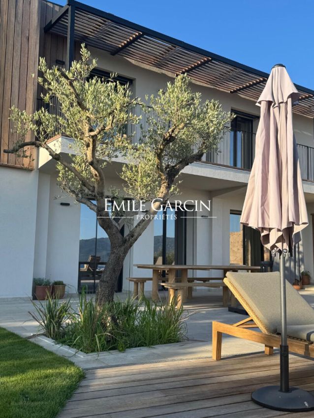 Located in a preserved natural setting, just 900 meters from the sea, this newly built villa offers breathtaking views over the bay of Propriano.