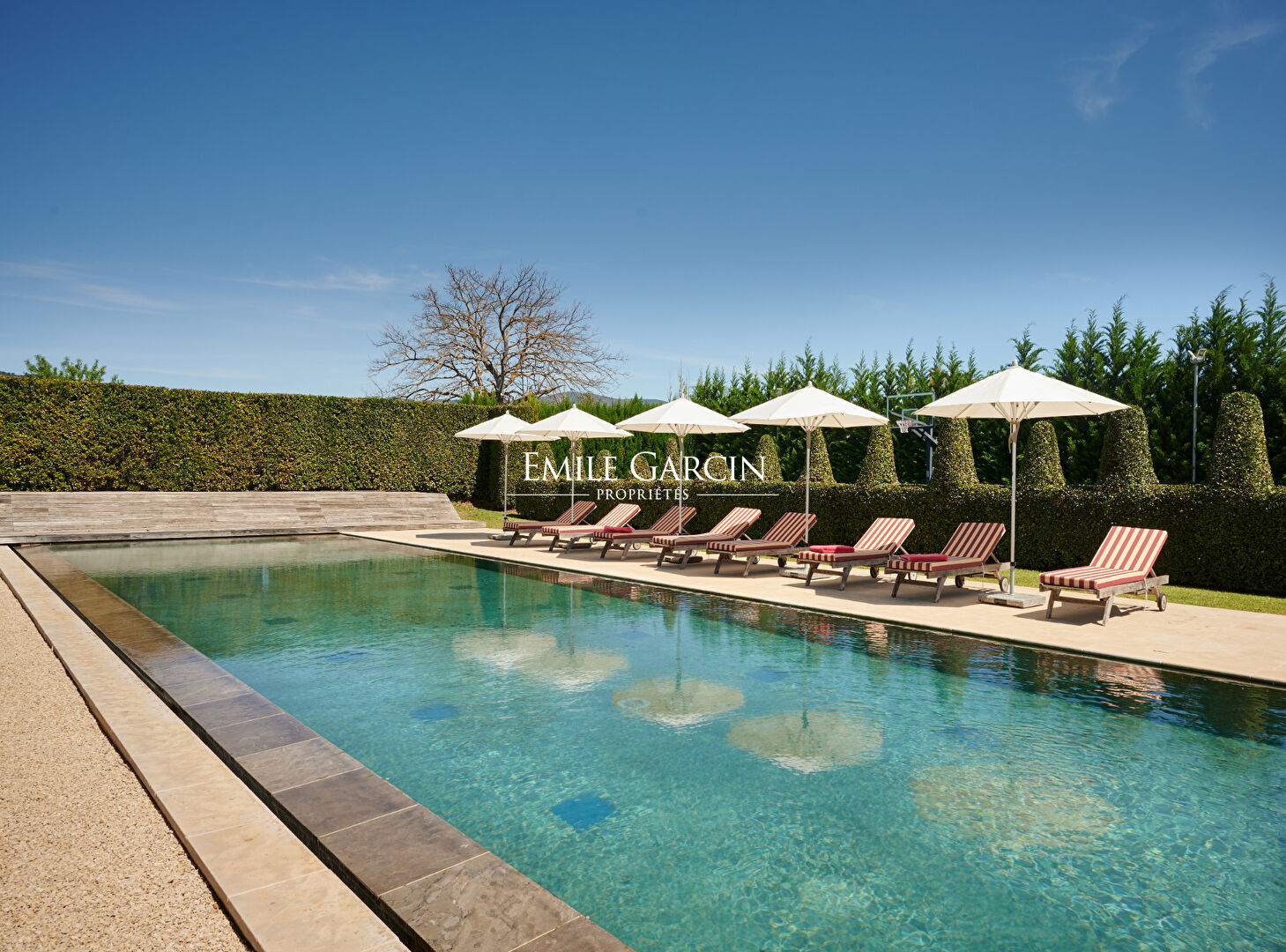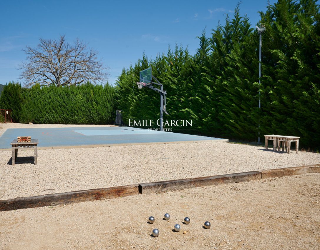 Hidden from view in the heart of Provence, not far from the charming village of Lourmarin, the Serenità d'Oro estate offers a haven of peace, ideal for a stay in Provence. Comprising three elegant, single-story buildings and a verdant garden, the first two buildings, facing each other, each include a modern living room, a separate and functional kitchen, and three bedrooms with en-suite bathrooms and toilets. The third building offers two bedrooms with independent entrances, each with its own bathroom and toilet, and opening onto the garden. Underfloor cooling is provided. Sleeping up to 16 people, this property combines comfort and privacy for relaxing moments with family in complete tranquility. Amenities include a secure 22 x 4.5 meter swimming pool, a basketball court, a pétanque court, and fruit trees. *Price varies depending on the season.