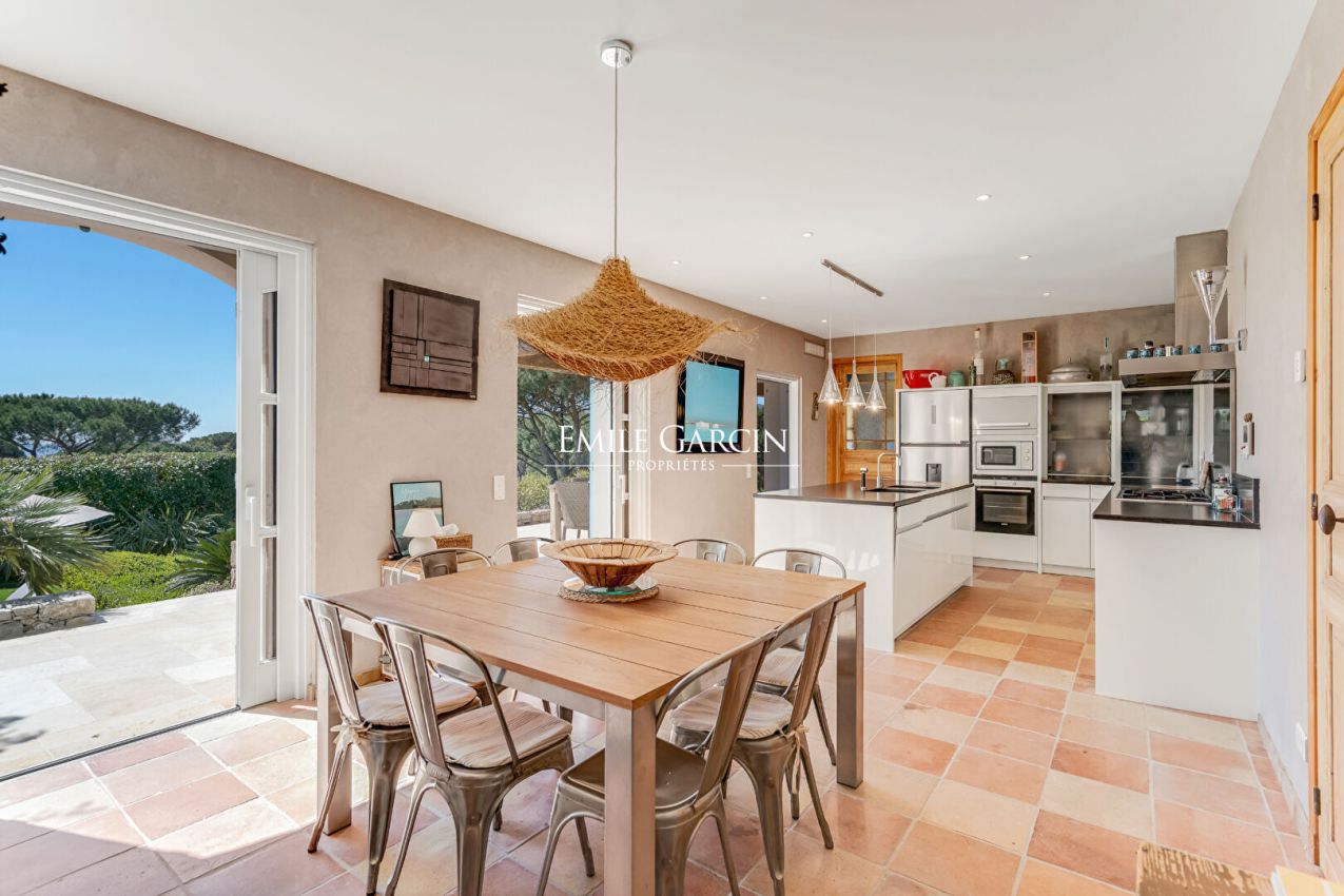 Located in the sought-after and unspoiled Gigaro area, this property sits on approximately 4,700 sqm of land, offering a peaceful and exclusive setting. In excellent condition, it features five bedrooms, including three suites and a staff bedroom. There is also a separate guest house with a kitchen, two bedrooms, and a bathroom. A heated swimming pool completes the property. The beach is just steps away.