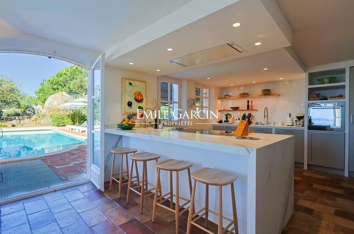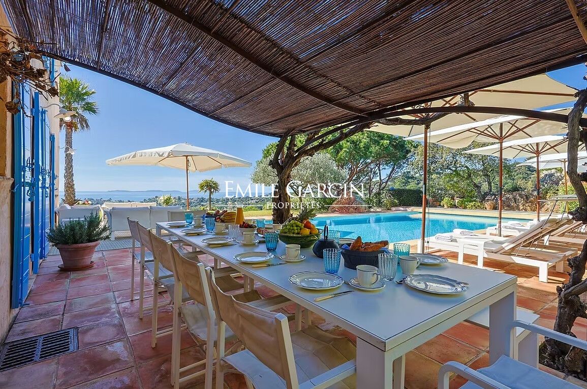 In the sought-after hills above La Croix-Valmer, this elegant property boasts panoramic sea views and a peaceful setting just minutes from the beaches. The villa features a double living room with a fireplace, six en-suite bedrooms, and a children's bedroom, offering comfort and privacy for every guest. Outside, there is a 6x12m swimming pool, furnished terraces, a pétanque court, a ping-pong table, and ample parking for up to seven vehicles. An ideal place for family enjoyment. Registration number: 83048 000282 XD
