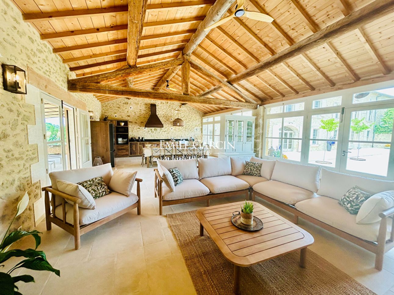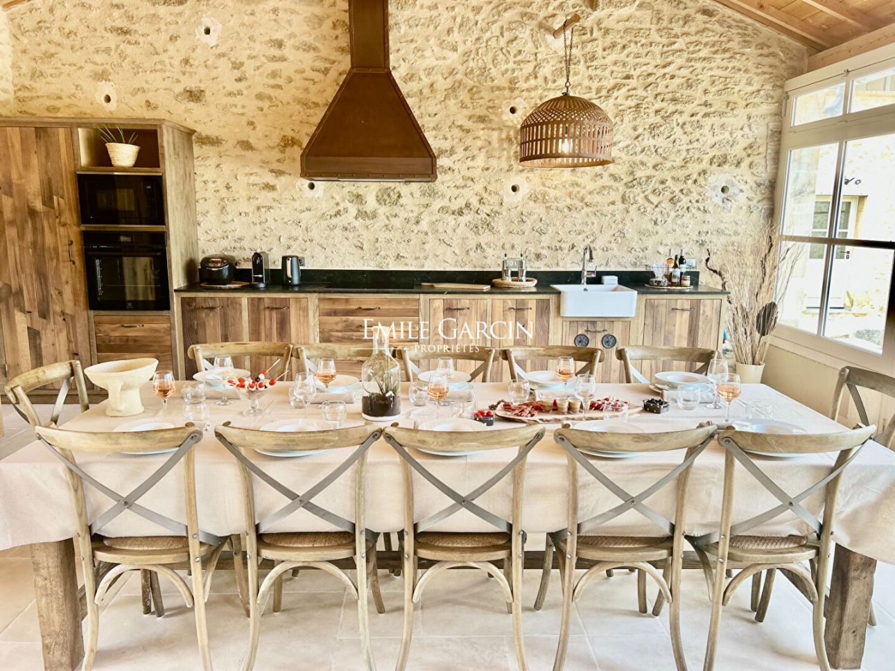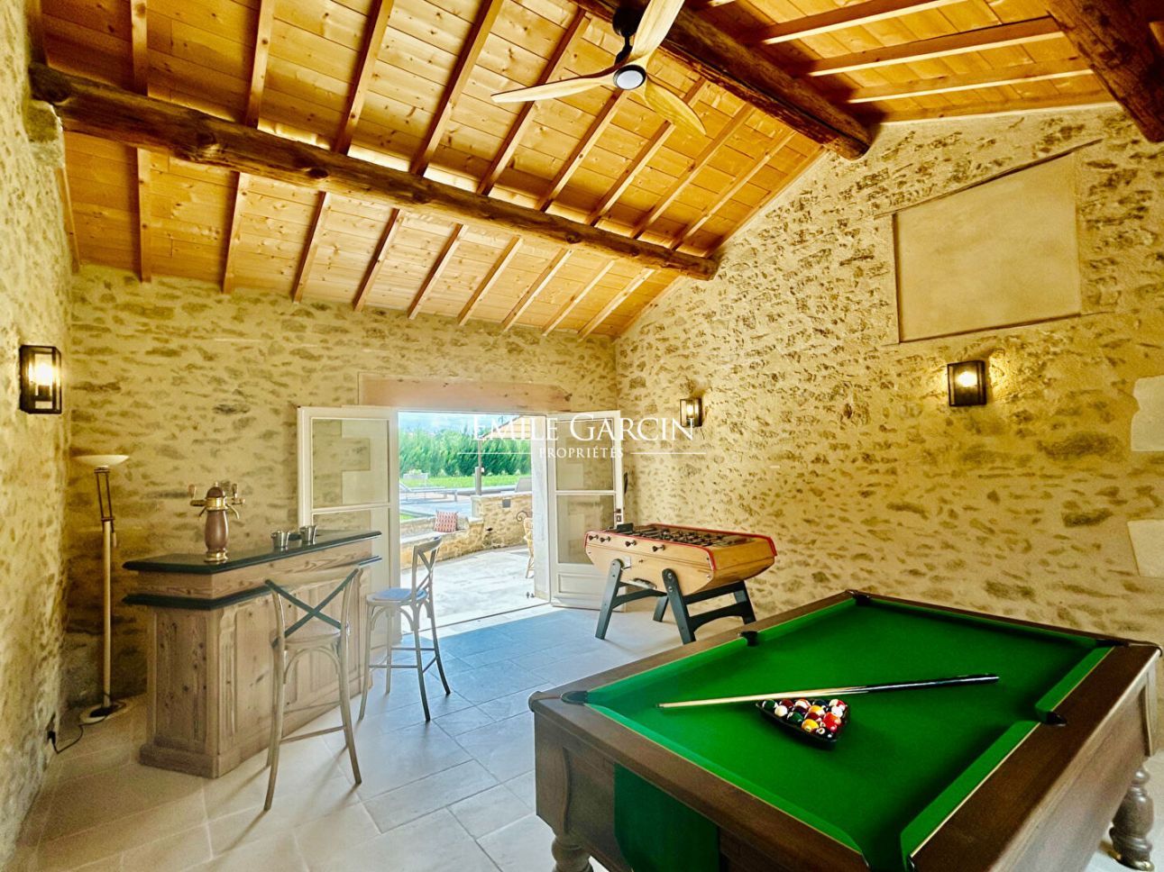 Elegant property in the Luberon. 6 bedrooms, 6 bathrooms (sleeps 12). Idyllically located in the commune of Robion, right in the heart of the Luberon and within easy reach of a number of iconic villages, this property is only a few minutes' walk or drive from the nearest shops. Presenting the perfect blend of modern comfort, Provençal authenticity and delightful outdoor spaces, it offers approximately 350 sq.m of fully air-conditioned living area. Peaceful and refined, this is the ideal setting for a relaxing break among family or friends. The house backs onto approximately 2,500 sq.m of private grounds featuring a lovely lawn and a majestic lime tree offering welcome shade in summer. The 12 x 5m heated swimming pool, secured by a roller shutter, is a central feature. A large awning of approximately 70 sq.m serves as an outdoor living area: it houses a fully equipped kitchen, a cosy lounge, a large table that can seat up to 12 guests for meals, and a games room with pool table and table football. Gas BBQ and pétanque area. Please contact us directly for further information.