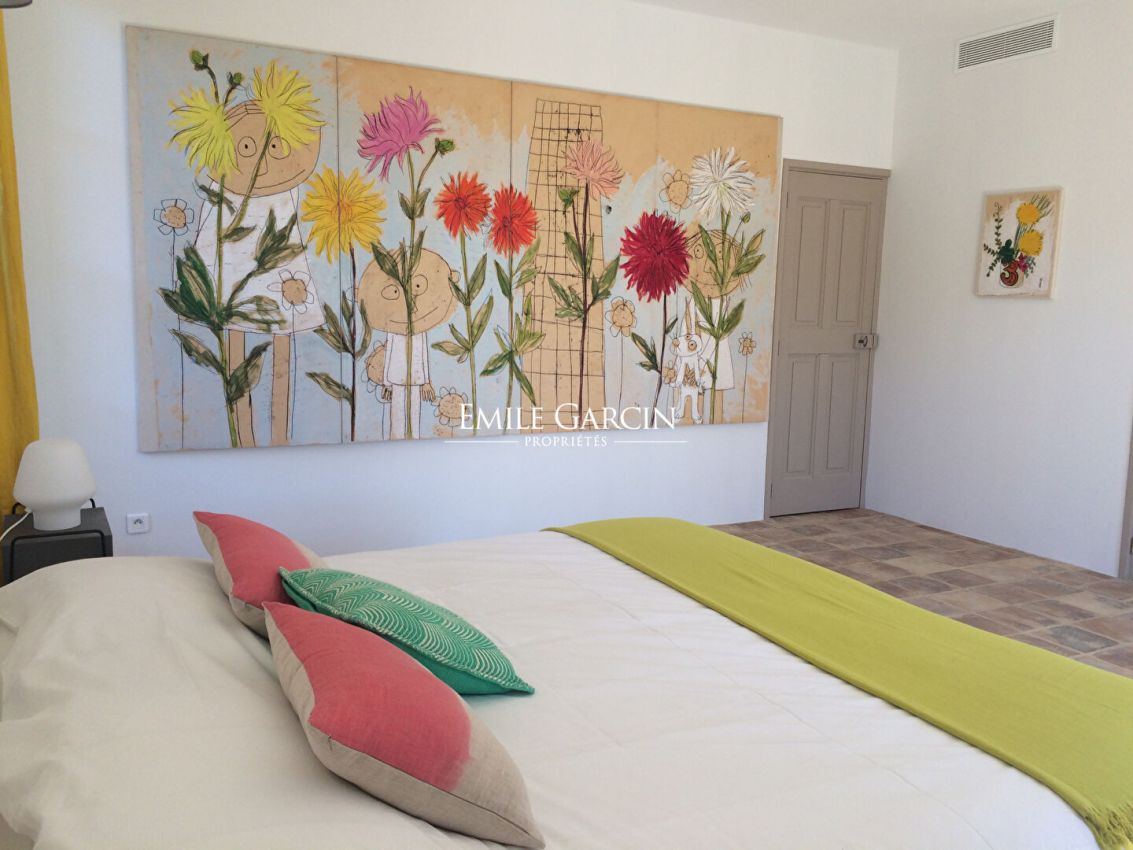 Located in a pretty village with shops, this fully renovated 16th century farmhouse exudes an artistic spirit and sense of timelessness. This historic property presents five bedrooms (four of which are air conditioned) and five bathrooms. Outside, you will find a swimming pool (9 x 4.5m) sheltered from the wind, as well as a beautiful shady terrace with dining facilities. Magnificent leafy grounds. The ideal setting for holidays among family or friends, within easy reach of Uzès. Maximum capacity: 10 people.