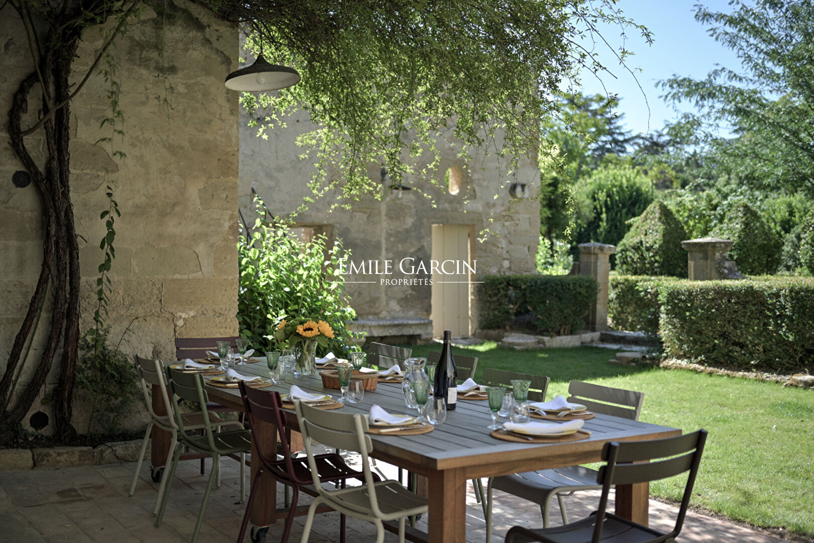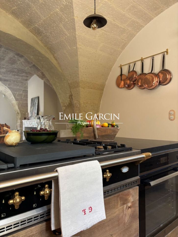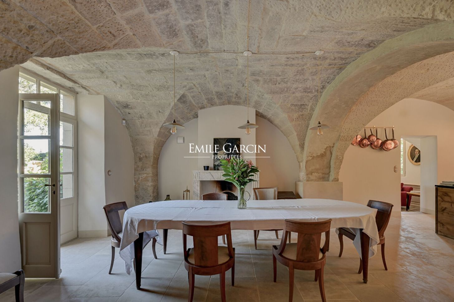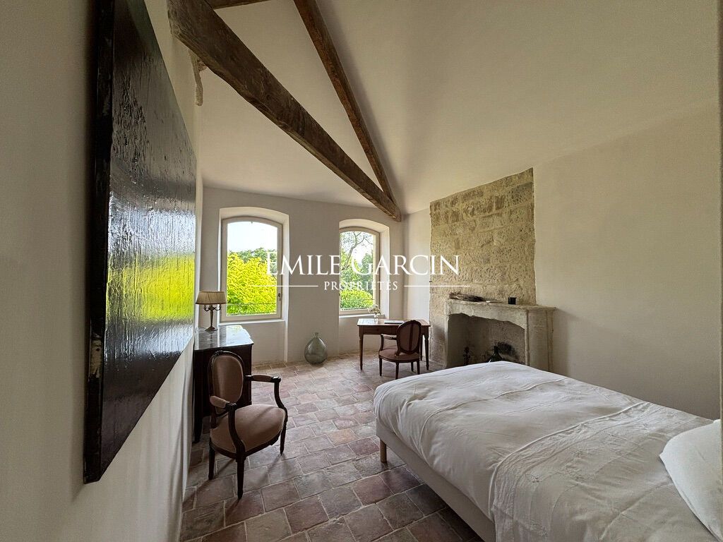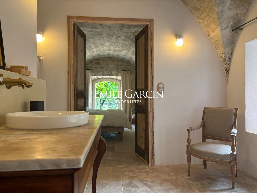 This exceptional 16th-century residence, located just outside Uzès, elegantly exudes the unmistakable art de vivre of the South of France. Fully restored, it offers a light-filled interior that subtly blends the character of old stonework with contemporary levels of comfort. Nestling in the heart of a charming village near the Gorges du Gardon, it offers a peaceful and privileged setting that is entirely conducive to relaxation and tranquility. The elegantly landscaped garden features a magnificent swimming pool (13 x 3.5m) around which to enjoy long sunny days. The open and inviting interior is nothing less than a harmonious extension of the outdoor spaces. The property offers six air-conditioned bedrooms with ensuite bathrooms. The ground floor, with its magnificent stone vaulted ceilings, comprises a characterful kitchen, a spacious dining room and two lounges. This is rare and inspiring real estate, where every detail serves as an invitation to savour another moment under the southern sun. Please note: part of the second floor is discreetly reserved for a live-in housekeeper, who will remain at your service throughout your stay.