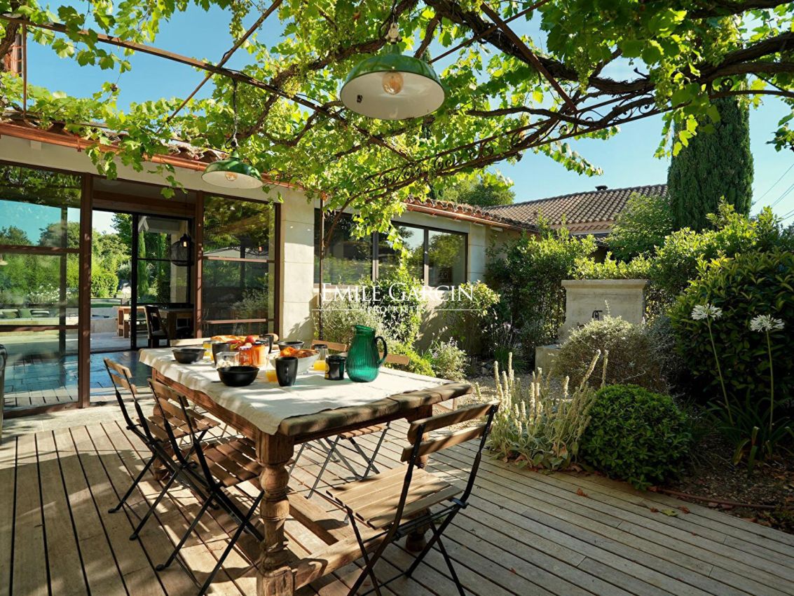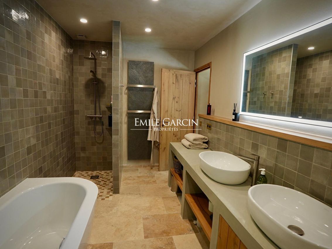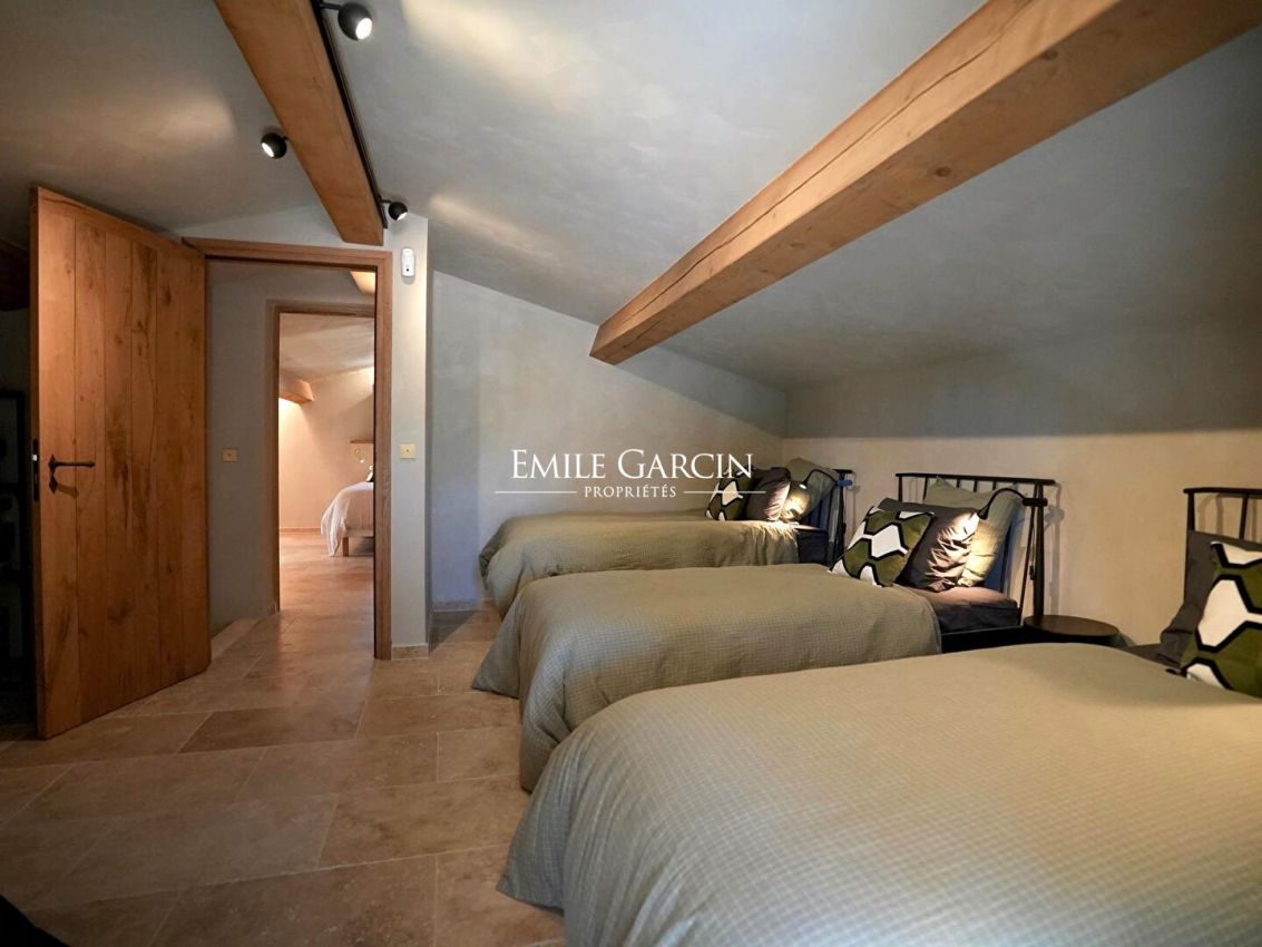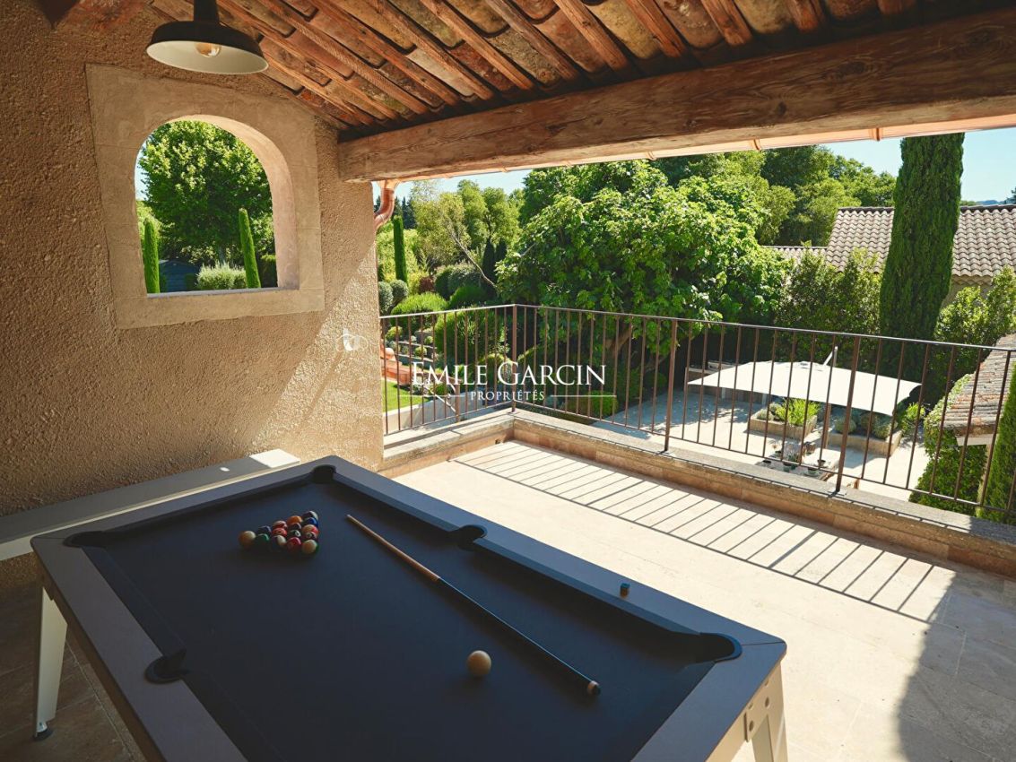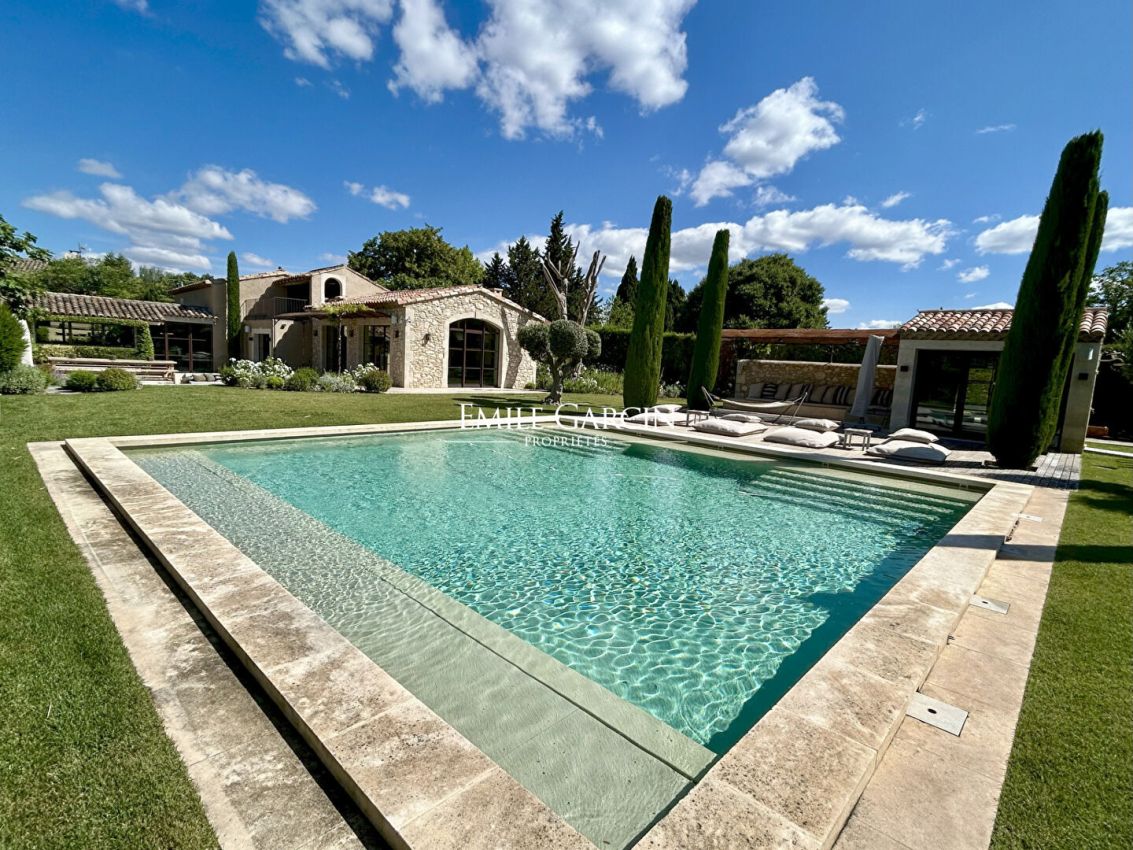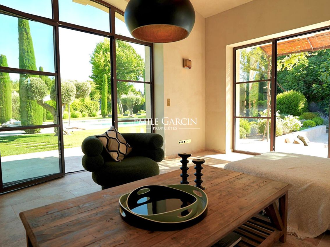 Located 2km from the village of Eygalières, this magnificent fully renovated house presents a tasteful decor and a high-end finish. Fully air-conditioned. 4 bedrooms, 4 bathrooms. Home gym. Salt-water swimming pool (9 x 9m) with electric shutter. Beautifully landscaped garden featuring outdoor lounges and relaxation areas.