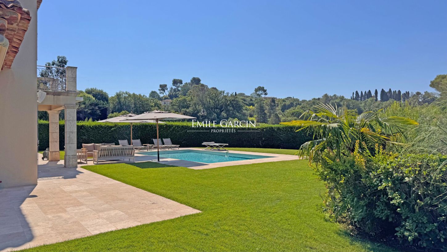 Second home in Mougins, available to rent on a long-term basis. Located at the foot of the historic village of Mougins, this magnificent villa is available for long-term rentals exclusively as a second home. It presents 400 sq.m of living area on 5,000 sq.m of flat land with a swimming pool and unobstructed views of the village. The interior includes six double bedrooms (including a separate annex), five bathrooms, a large living room and an open kitchen. Air conditioning in every bedroom. Secure residence with double gate. An utterly peaceful and perfectly maintained house close to the amenities of the village of Mougins.