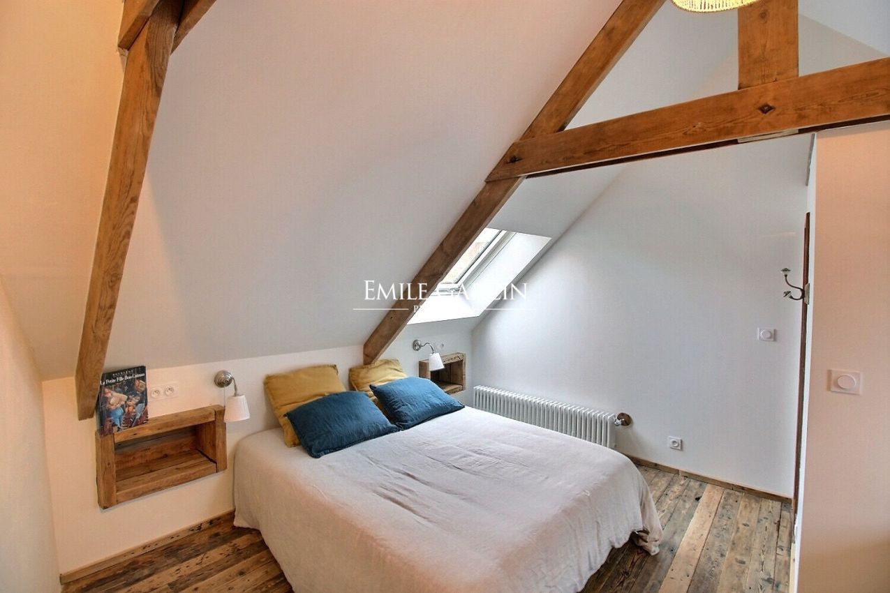 In the heart of the town of Paimpol, a pied-à-terre nestles peacefully at the bend of a pretty town square. All shops, market and parking nearby, marina and schools within walking distance. The house, completely renovated recently, is spread over two levels: two bedrooms and their superb bathrooms on the ground floor, laundry-boiler room and, via a carved and inlaid staircase, the fitted kitchen opens onto a dining room marine-style bench seat and a lounge bathed in light. A third bedroom takes its place with its bathroom. Cleverness, original and elaborate decor, comfort, this place is a perfect pied-à-terre in Paimpolaise.