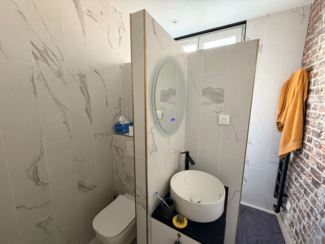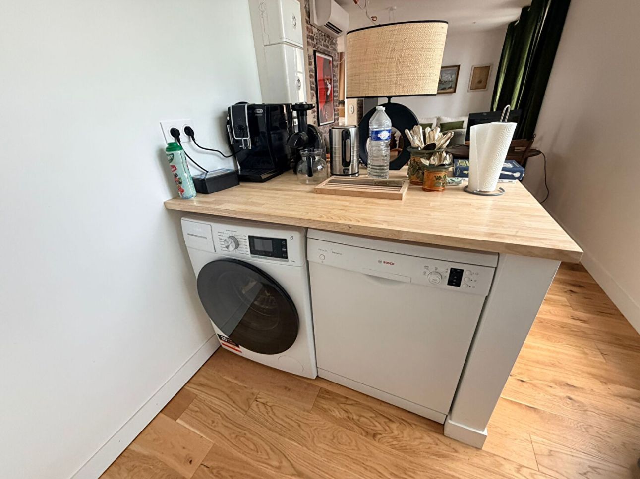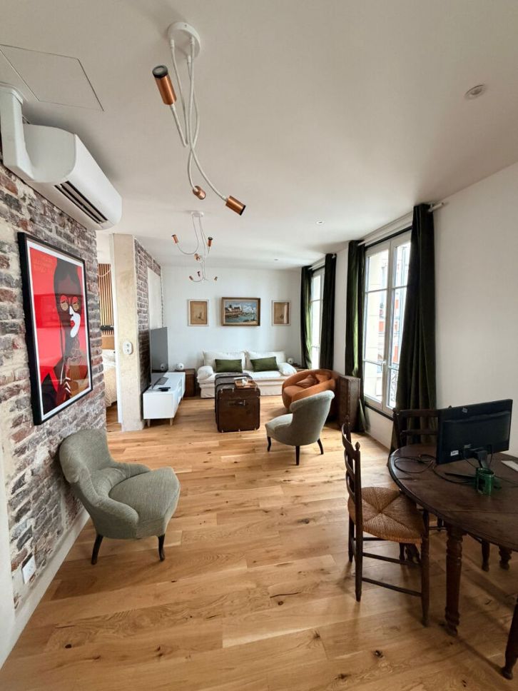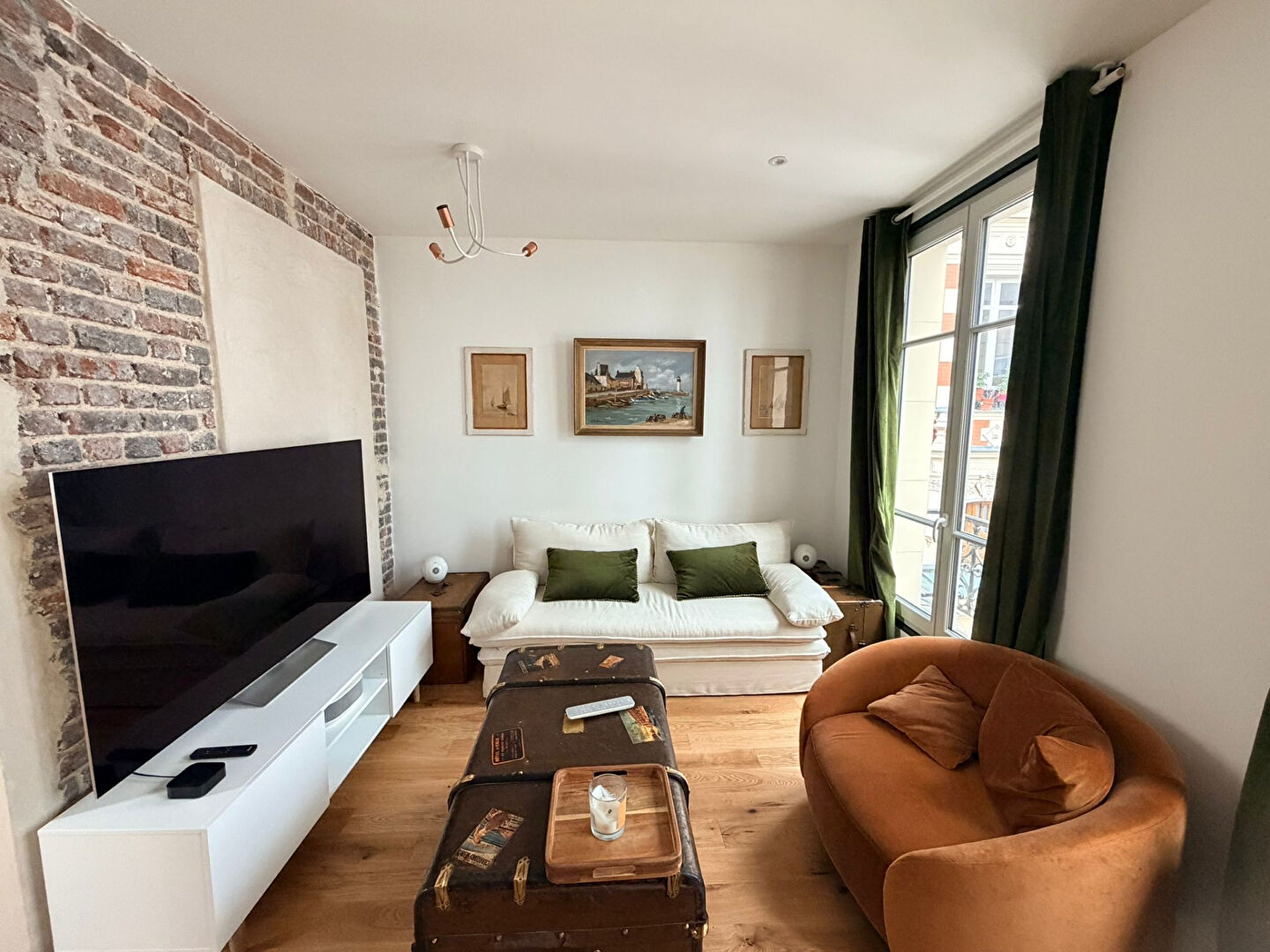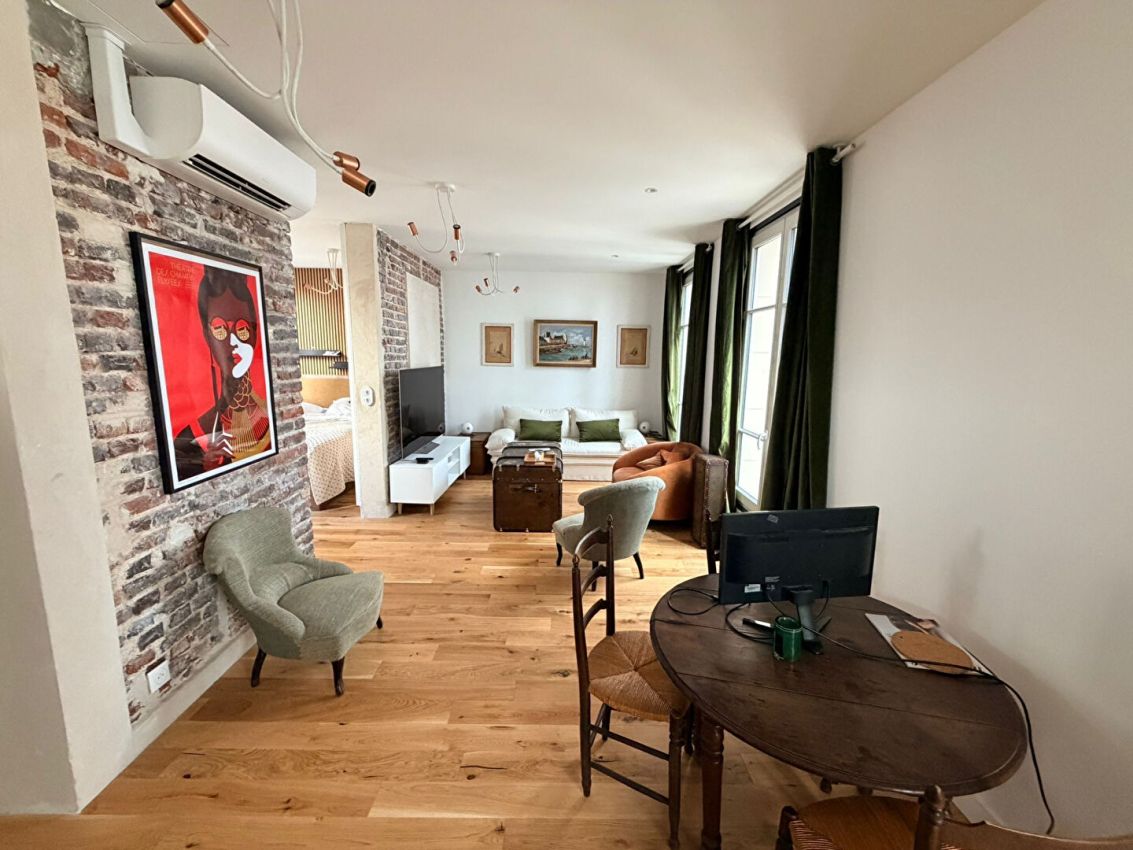 Located on the second floor of a beautiful building on the Rue de Lévis, this apartment comprises a living room with magnificent glass roof, a fitted kitchen, a bedroom, and a shower room with toilet. Available immediately. Bail code civil (exclusively for use as a secondary residence or for employee accommodation).