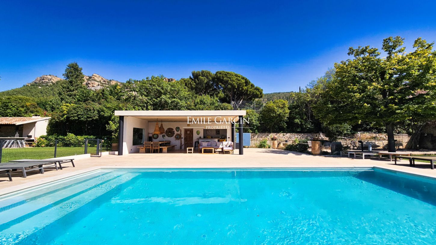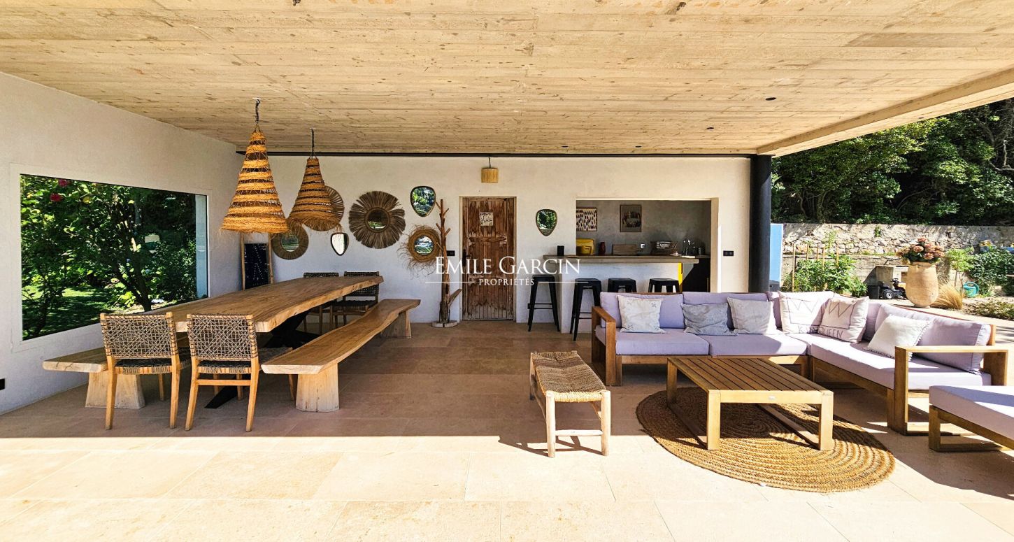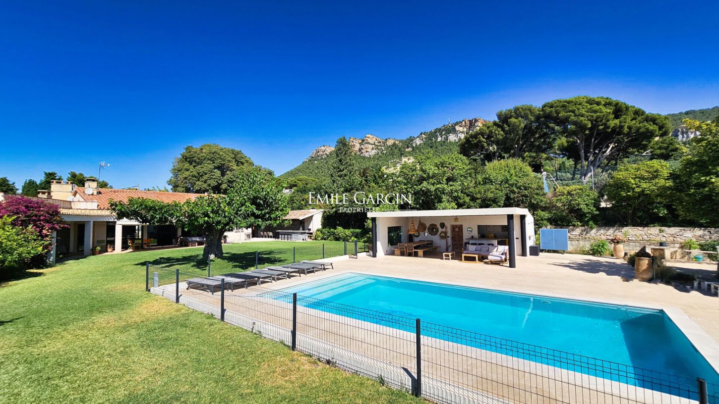 Idyllically located near Cassis, offering a view of Cap Canaille and the seafront, this villa offers 250 sq.m of living area. Presenting all modern equipment and facilities, this is the perfect setting for a pleasant family vacation. Exuding peace and tranquillity, it is only 10 minutes by foot from the village of Cassis, its small port, its shops and its beach. 6 air-conditioned bedrooms and 5 bathrooms. Maximum capacity: 12 people. Swimming pool (10 x 5 m), two BBQ areas, pétanque area. Option to rent an annex of 70 sq.m with 2 bedrooms, a bathroom, a kitchen and a living room, bringing the capacity to 16 people.