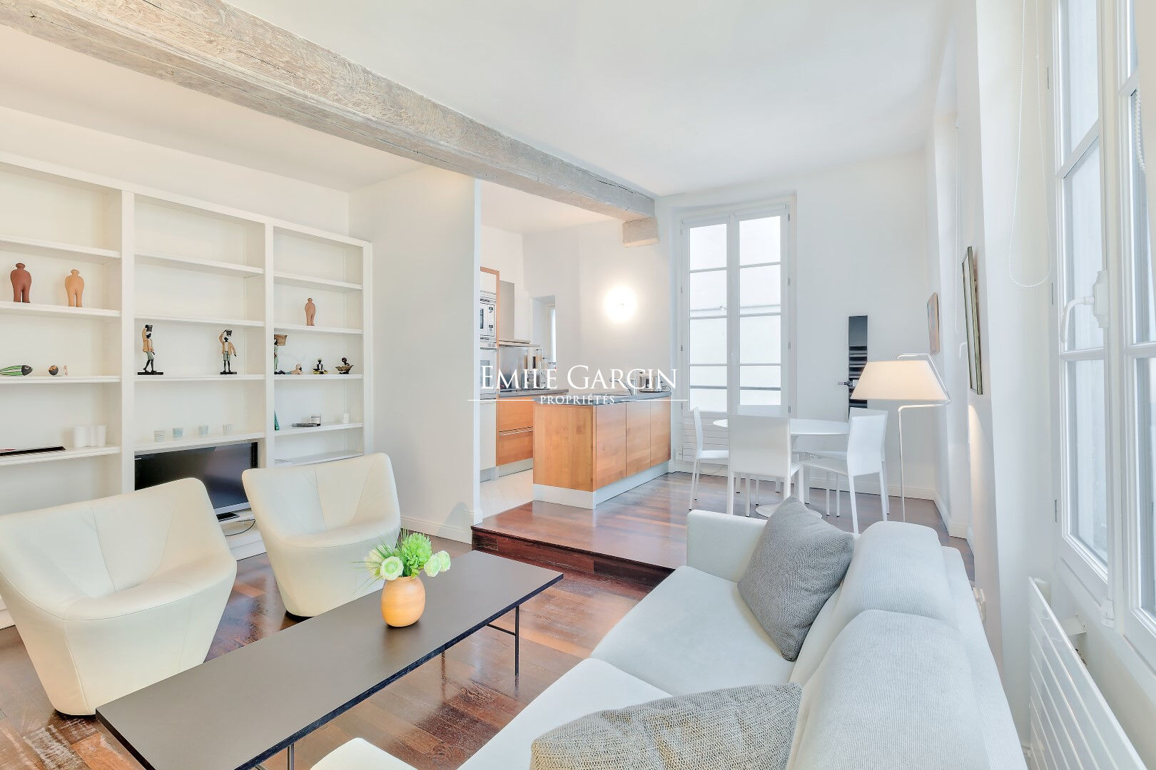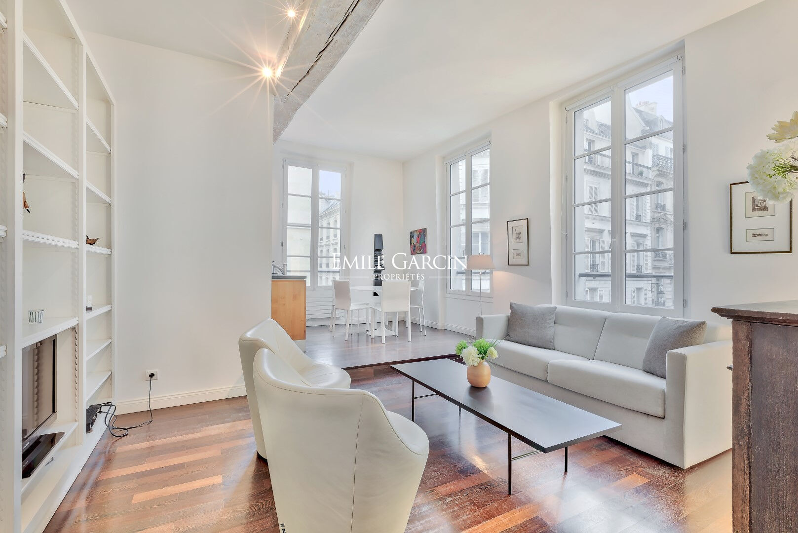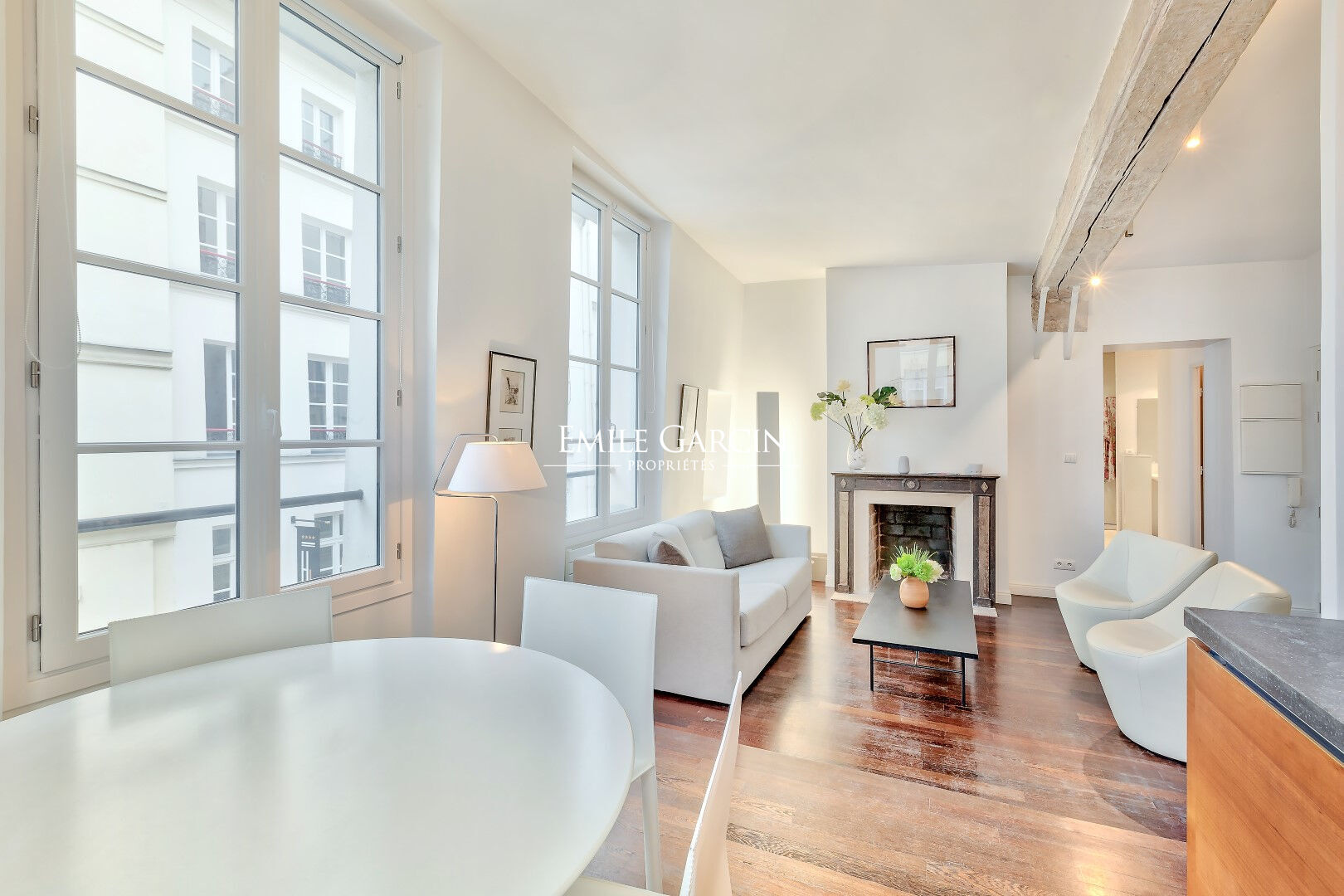 Dans un immeuble du XVIIIème siècle, au 2ème étage accessible par un bel escalier d'époque, un appartement de 57,19 m² loi Carrez comprenant une grande pièce de vie en angle très lumineuse avec cheminée et poutres, une salle à manger avec cuisine américaine, une spacieuse chambre avec salle de bains, une salle de douche et des toilettes séparés. Très lumineux cet appartement est en parfait état. Un idéal pied à terre proche de Saint Germain des Près. Condominiums of 12 units (No proceedings in progress).