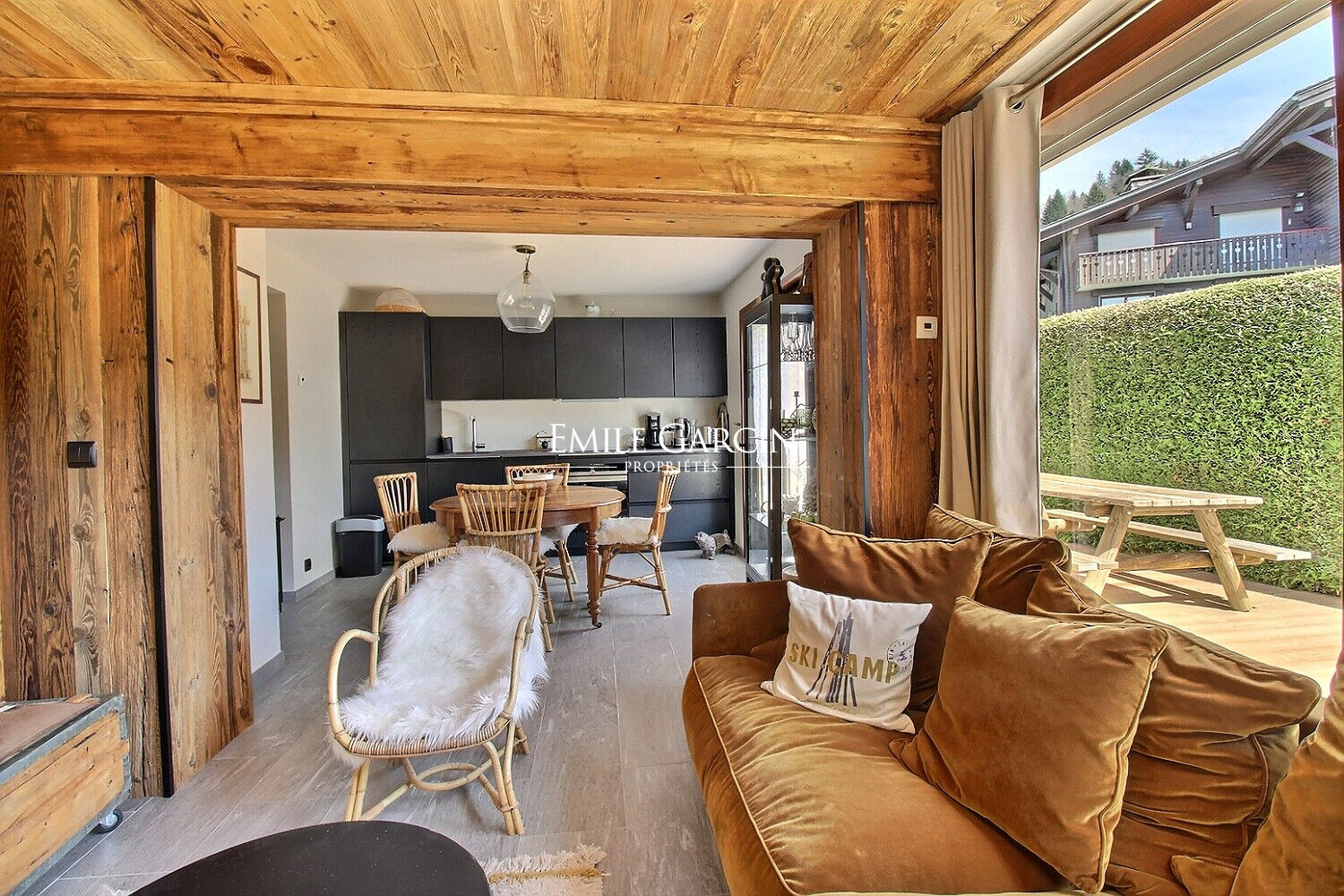 Attractive bright apartment presenting 44.74 sq.m of refurbished living area in a quiet and sought-after location a few steps from the centre of Megève. It comprises a living room with large windows with an access to a private garden, an open kitchen, a bedroom, a shower room, a smaller bedroom and a separate WC. Additional facilities include a cellar and two outdoor parking spaces.