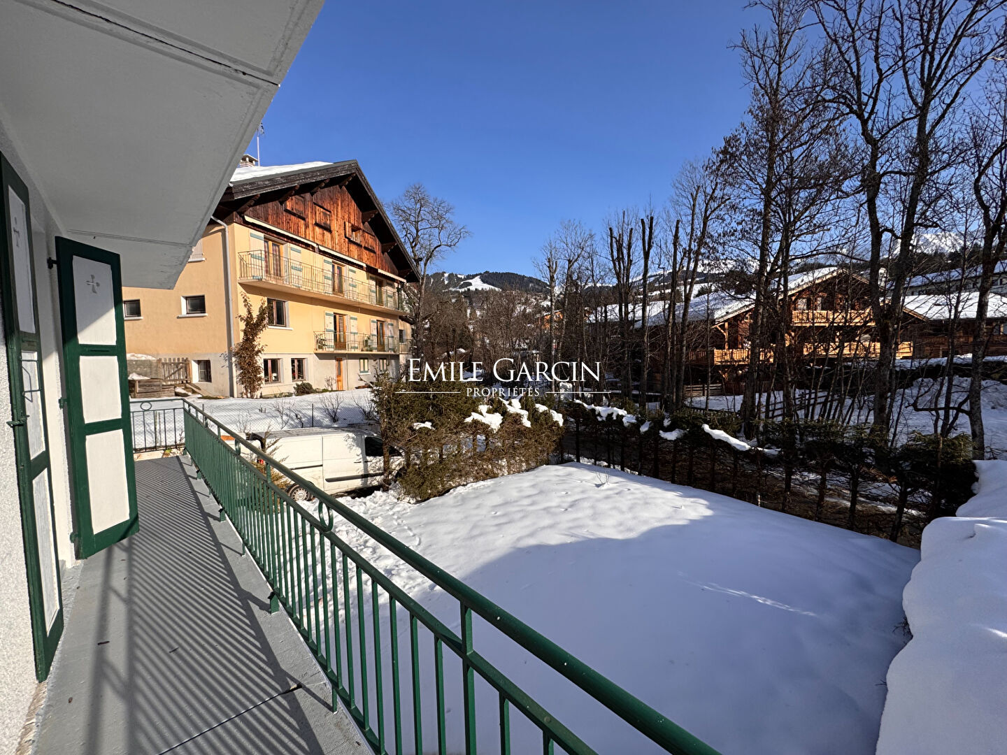 Perfectly located just a few minutes' walk from the pedestrian zone of Megève and a few minutes from the Chamois gondola lift, in a quiet setting by a stream. South-facing with views of the surrounding mountains. This apartment, located on the first floor of a recently renovated building, offers 67.32 sqm of living space (Carrez Law). It comprises an entrance hall, a living room with access to a balcony, open to a fully equipped kitchen, two en-suite bedrooms with shower, sink, and toilet, a second bedroom, and a separate toilet. The property is sold with a ski locker and an outdoor parking space.