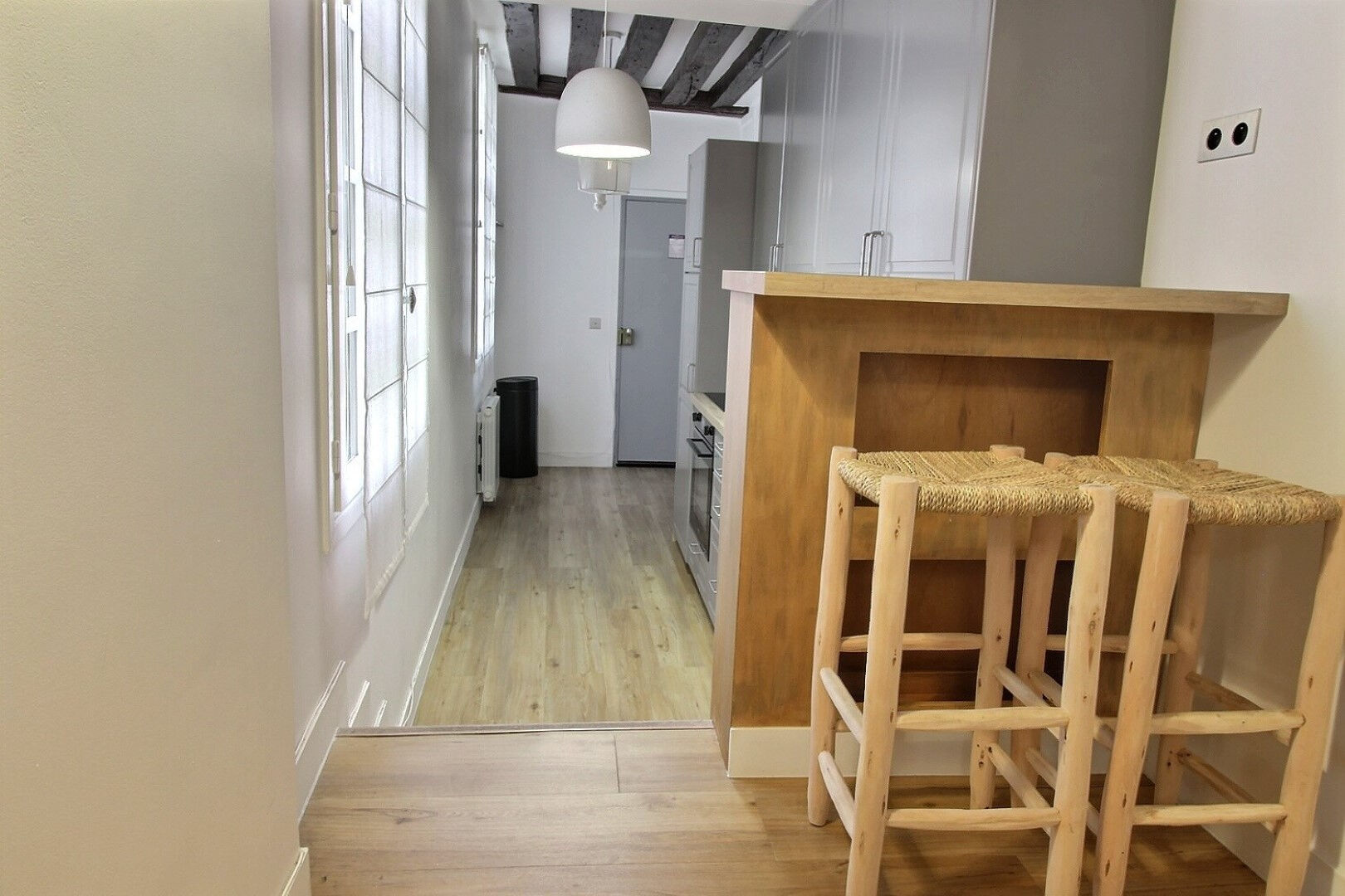 Charming furnished apartment of approximately 50sqm (34.62sqm living space) on the 1st floor of a lovely building on Rue Quincampoix. The apartment has been completely renovated and comprises a fully equipped kitchen, a living room with a dining area, a bedroom, and a lovely shower room with WC. Charming and bright. Original features include exposed beams and parquet flooring. Contemporary decor. Ideally located near the Town Hall and the Centre Pompidou, and easily accessible by public transport. Trendy neighborhood with numerous restaurants and shops. Energy Performance Certificate (EPC): D. Rent: EUR2,350/month including utilities and internet. Available immediately. Civil Code lease and agency fees according to our fee schedule.