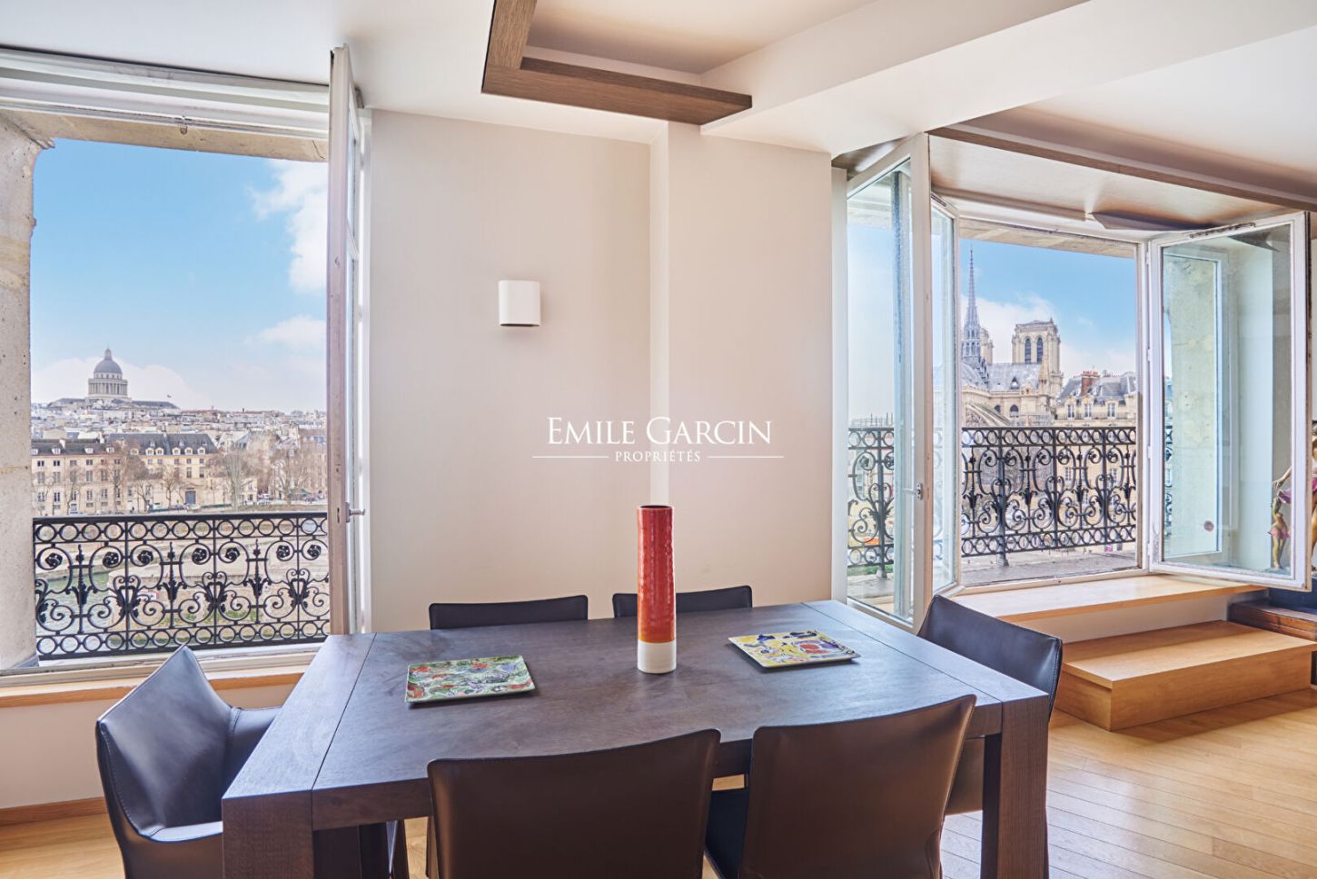 Ile Saint Louis, on the mythical and highly prized Quai d'Orléans, in its part which faces the left bank and the Cathedral Notre-Dame de Paris, luxury building that was built in 1897 by the architect Ange Castelin. This facade is quite particular, the porte cochère is particularly important, it is part of an advanced body that includes two elegant colonnettes. The facade is punctuated with a vegetal decoration and shell (a decorative element that was widely reused throughout the 19th century.) On the 5th floor by elevator of this luxury building with caretaker, an exceptional apartment, only upstairs, of 195m² (190.32 m² Carrez), offering spectacular views of the Seine and Paris, its monuments (Eiffel Tower, Pantheon).
