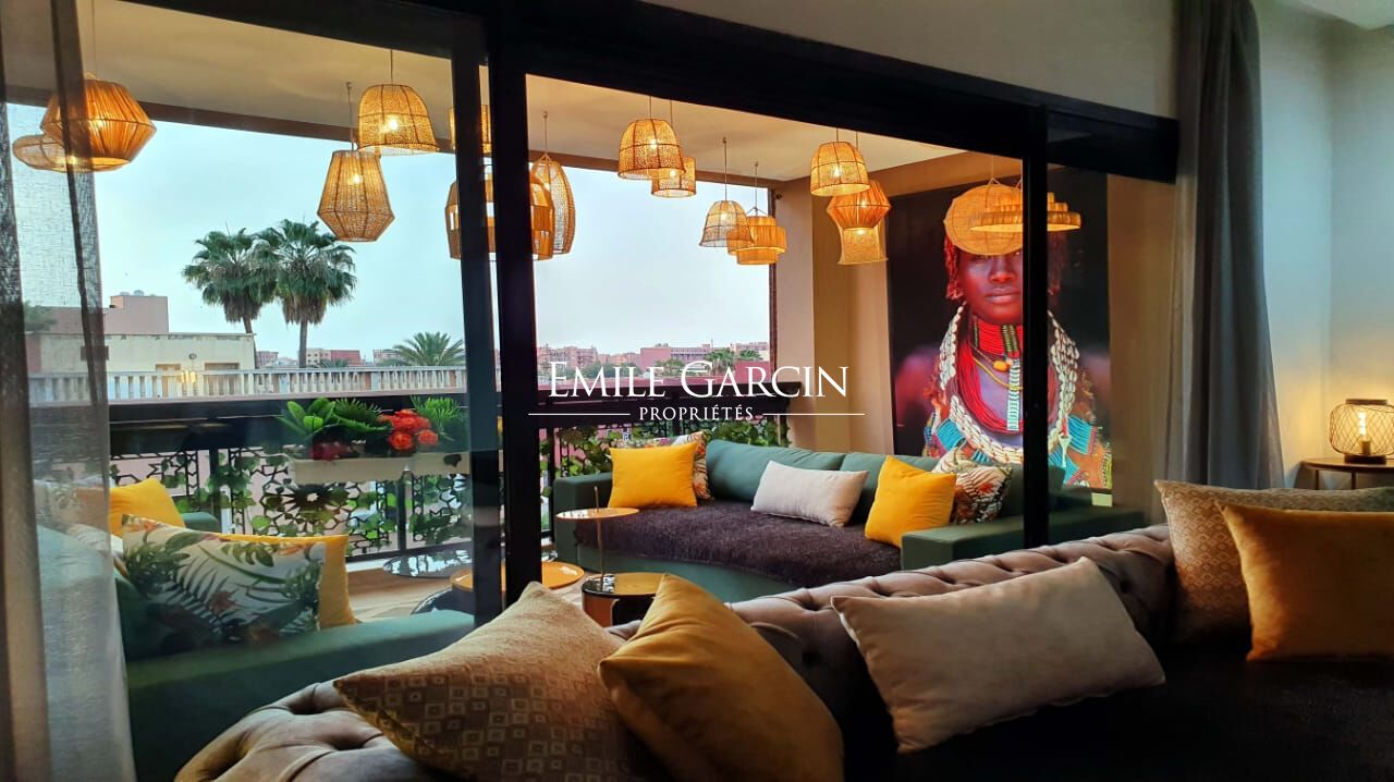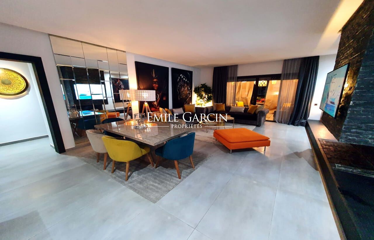 Idyllically located in the modern district of Marrakech, only 20 minutes from the Place Jemaa El Fnaa, this bright contemporary apartment offers 154 m² of living area including: three suites with bathrooms, a beautiful spacious living room with fireplace and a small functional terrace. Car parking available. From 250 EUR / night