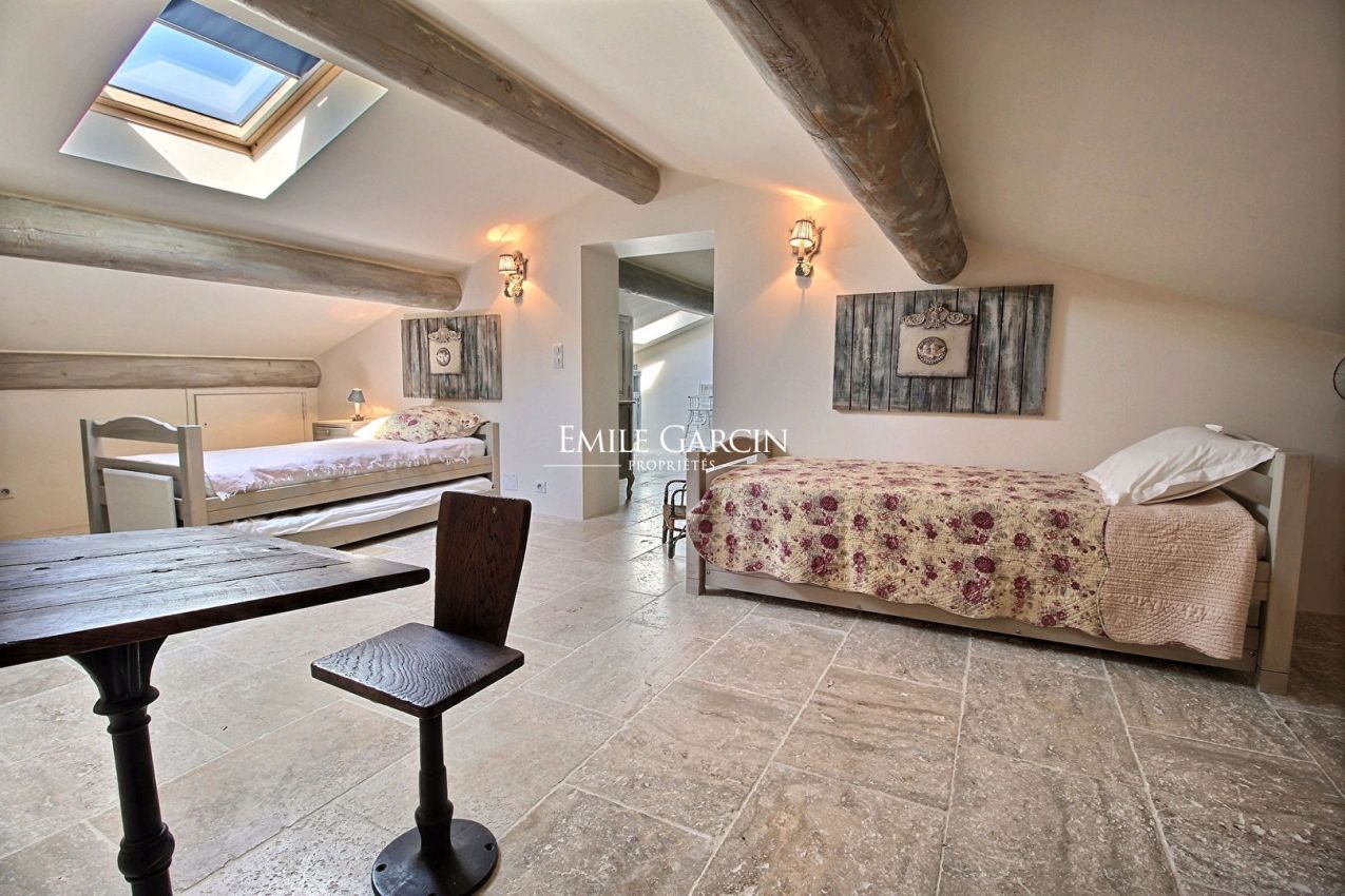 In Eygalières, this completely renovated farmhouse will charm you with its authenticity and comfort. Inside, there are beautiful living areas, 5 double bedrooms and a children's dormitory. Airconditioning in the bedrooms upstairs and refreshing floor on the ground level. Outside, a covered terrace for al fresco dining, a beautiful heated pool which is secured by a shutter and a large garden filled with the charm of Provence. The perfect place to spend family holidays.