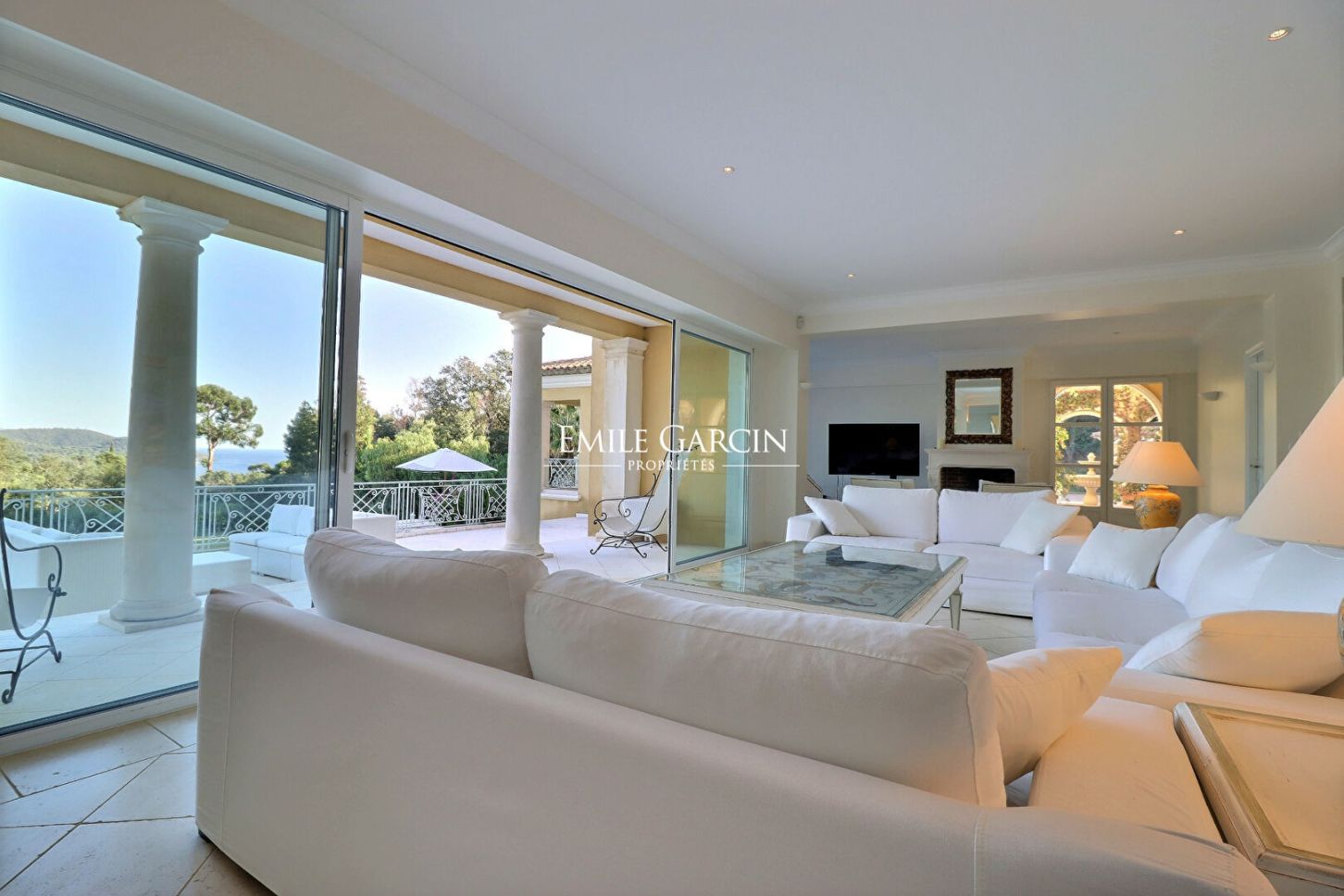 All the charm of Italian-style architecture can be found in this luxurious property of 400 sqm. Positioned on a dominant landscaped plot of 7,000 sqm with a beautiful sea view over the bay of Gigaro. Between La Croix Valmer and Ramatuelle, 15 minutes by car from Saint-Tropez and the beaches of Pampelonne. Easy access to the beaches of Gigaro. Heated infinity pool, jacuzzi. 6 bedrooms, 6 bathrooms. Registration number: 83048001258 ZR
