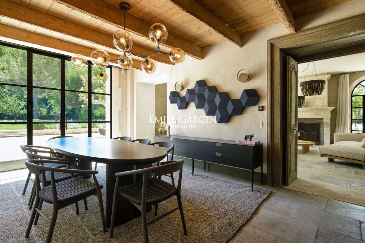 Peacefully located 5 minutes from the centre of Saint-Rémy de Provence, this charming farmhouse boasts a large garden planted with Mediterranean flora and fruit trees. Fully renovated and tastefully decorated, the house presents reception rooms opening out onto the terrace and garden, five air-conditioned bedrooms (one of which is independent) and five bathrooms. The heated swimming pool and pool house create the perfect setting to spend relaxing holidays with family or friends. Tennis court.
