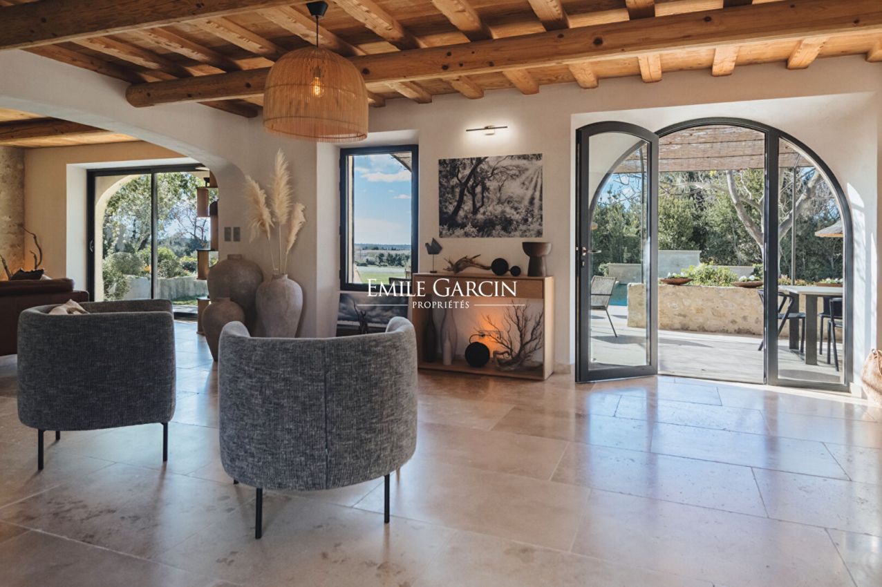 5 minutes from Maussane-Les-Alpilles - Beautiful 280 sqm house with modern décor and fully air conditioned. 4,000 sqm of land, overlooking fields. 5 bedrooms and 5 bathrooms, this property offers all the comfort for a vacation with family or friends. Heated swimming pool of 12.5 m/5 m, secured with an electric cover. Wood barbecue - Weber barbecue - Pétanque court. Various areas to relax and unwind by the pool.