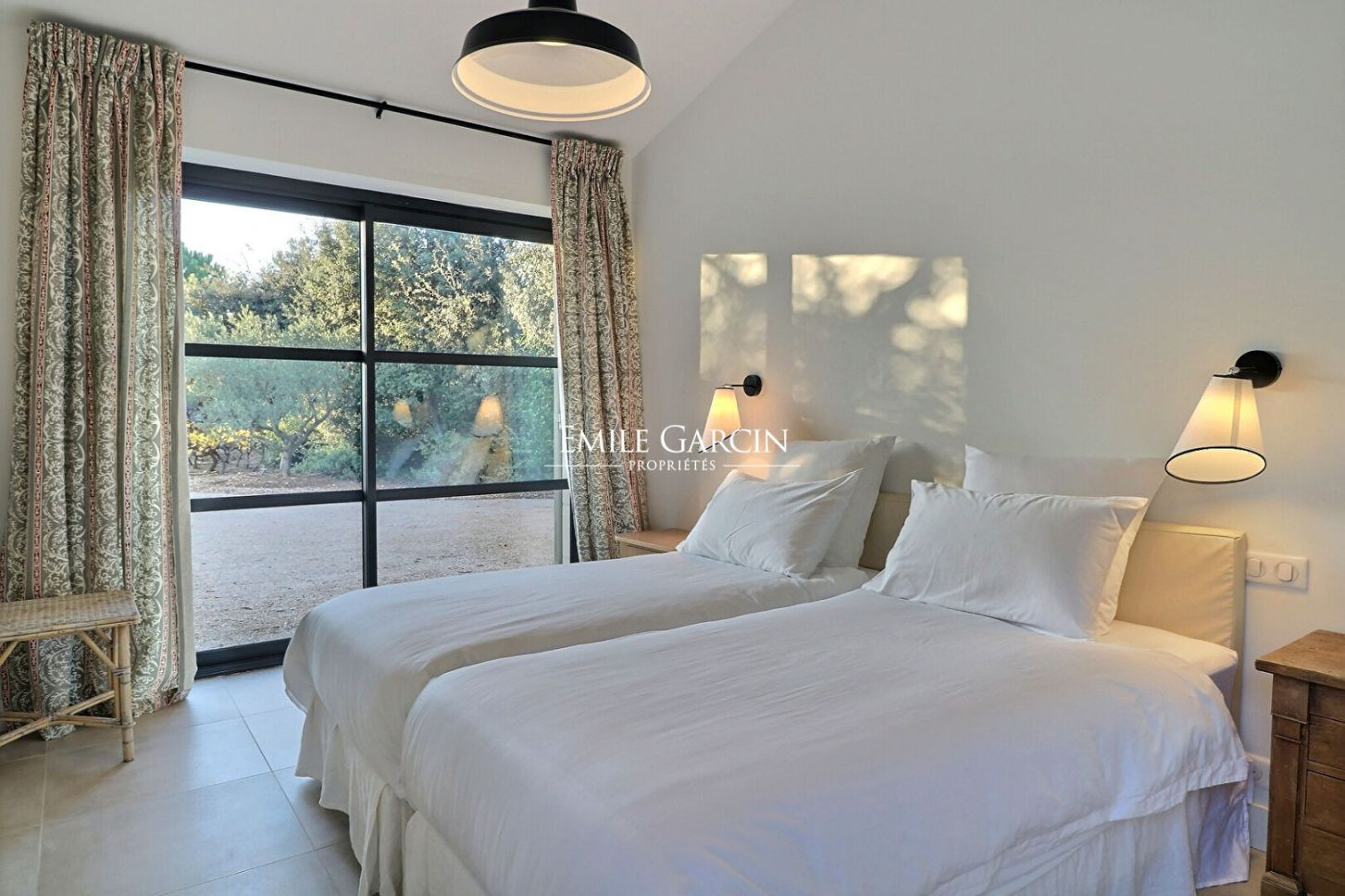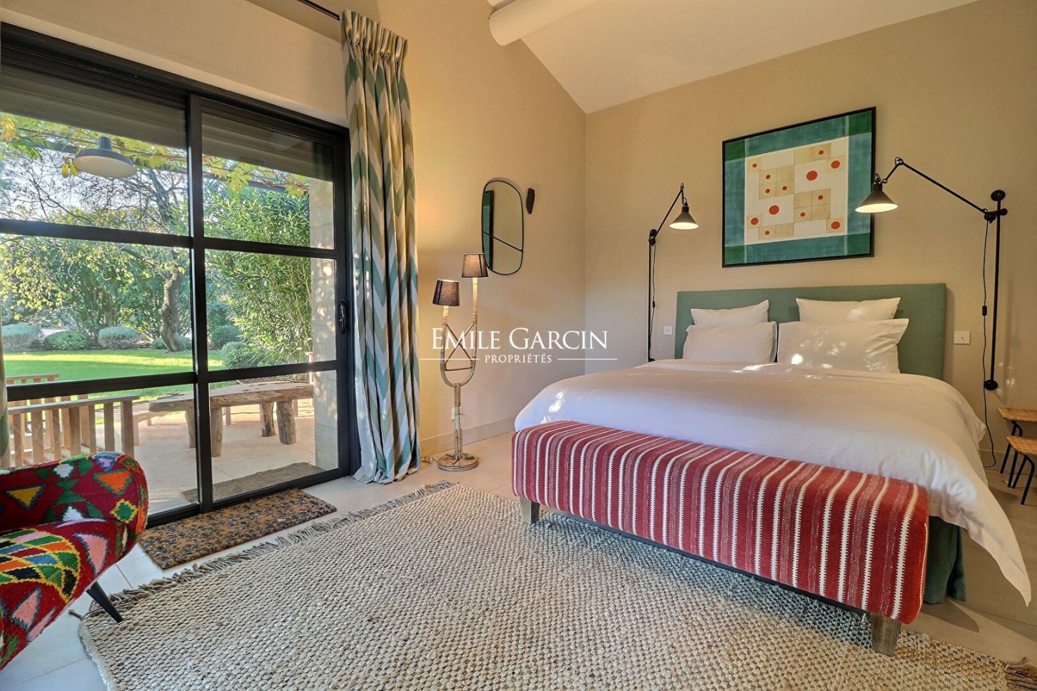 Located just 15 minutes by foot from the village of Eygalières, this farmhouse with a contemporary decor offers 6 air-conditioned bedrooms and 6 bathrooms. It is equipped with underfloor cooling in the living room, the dining room and the kitchen. Outside, you will find a delightful garden of over 4,000 sq.m, a heated swimming pool (15 x 5 m) and a raised terrace with sublime views of the Alpilles.