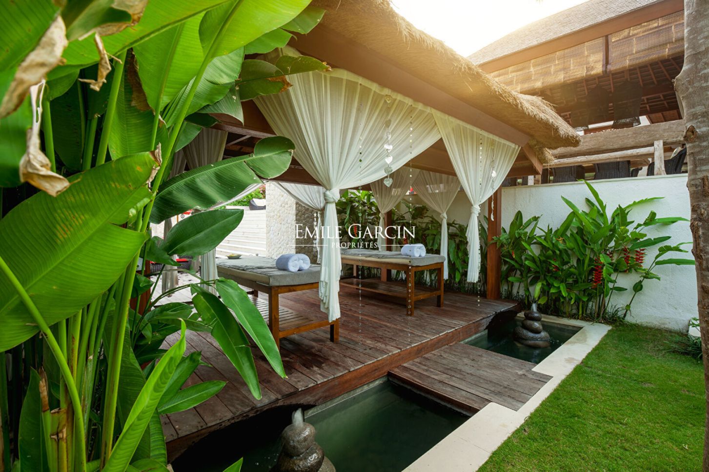 Nestled in the heart of 2600 square meters of tropical gardens and surrounded by Balinese rice fields, this villa offers a peaceful and pleasant setting. Located near Seminyak, this six-bedroom sanctuary is the perfect haven for gatherings with friends and family. Each bedroom, arranged around the pool, offers its own en-suite bathroom, while the two master bedrooms have private plunge pools. The spacious living and dining areas cover almost 200 square meters, providing ample space for relaxing and entertaining. Fully equipped, the villa offers a 25-meter swimming pool, a gym and a media room. You can also enjoy delicious meals prepared on the barbecue or pizza oven, or indulge in some friendly competition in the billiard room. With an outdoor gazebo for massages and a seamless fusion of indoor and outdoor spaces, this villa promises an unforgettable getaway. **Available from 4 bedrooms.