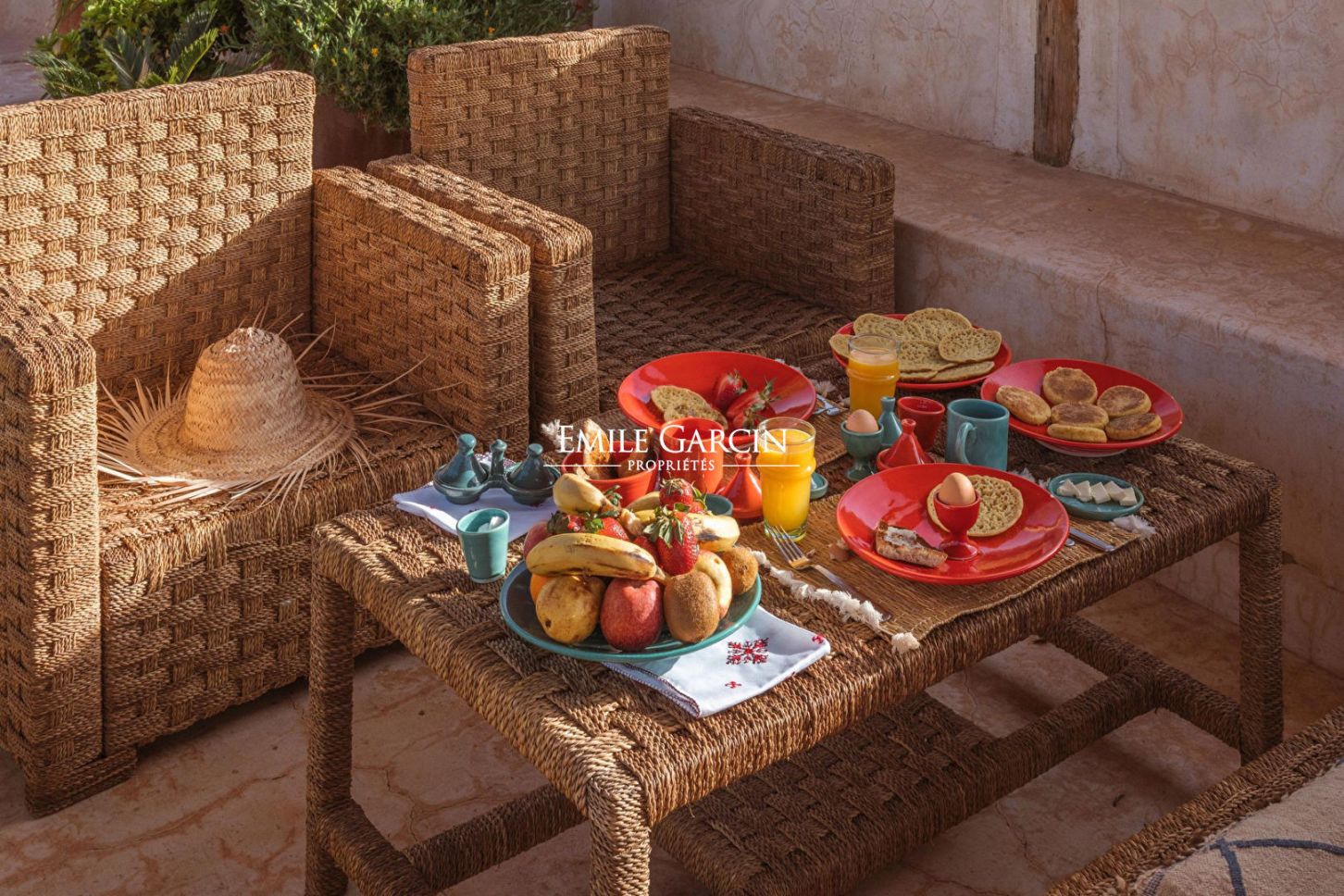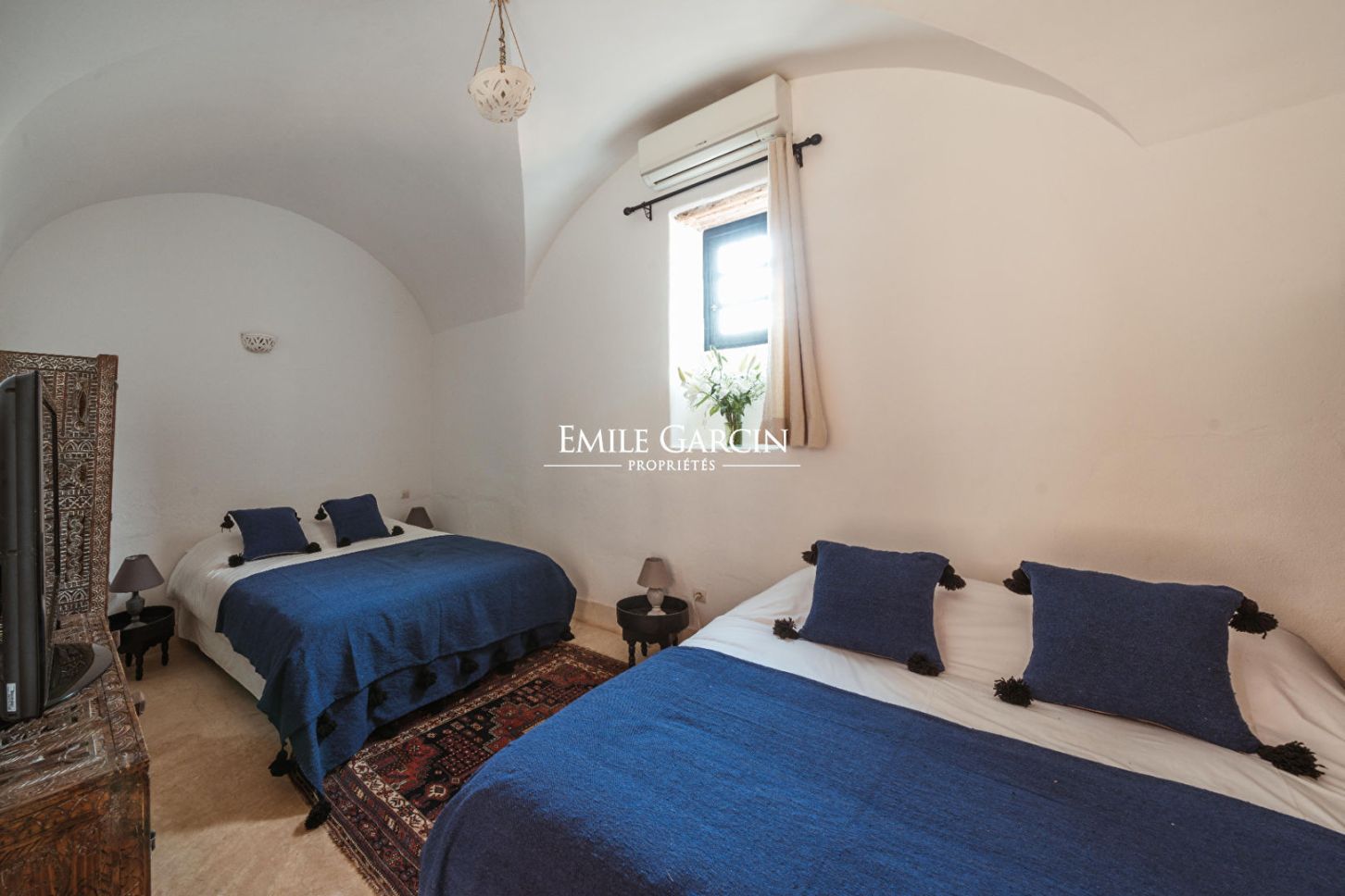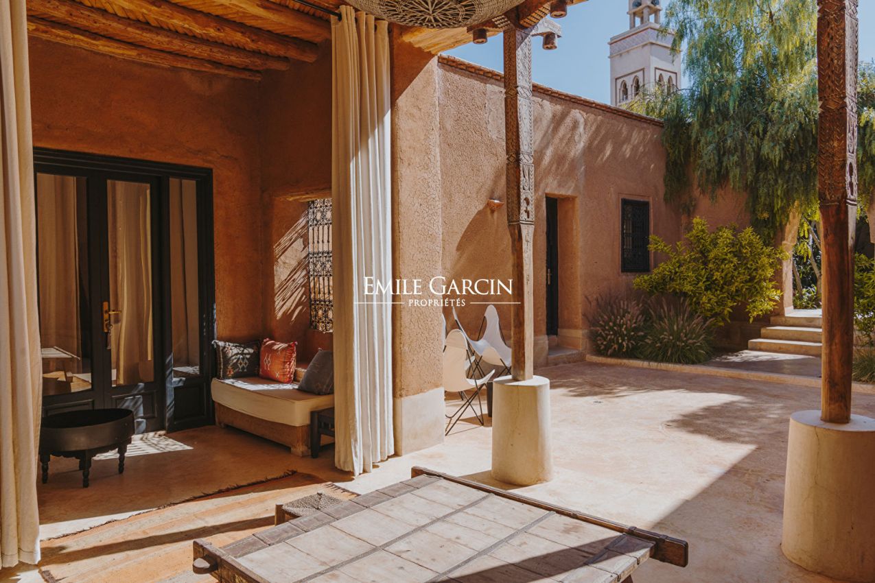 Delightful house located in a Berber hamlet on the Route de Barrage, just 20km from Marrakech. A charming mud property combining ethno-chic and traditional styles, it looks out towards the Atlas Mountains past the stunning lunar landscapes of the Haouz plain. The house blends effortlessly into its natural surroundings, while offering modern levels of comfort. It boasts an interior comprising five bedrooms, five bathrooms, a reception room and a dining room. Also includes three patios, a garden and a swimming pool. Central heating and air conditioning. From 450 EUR per night. Breakfast included.