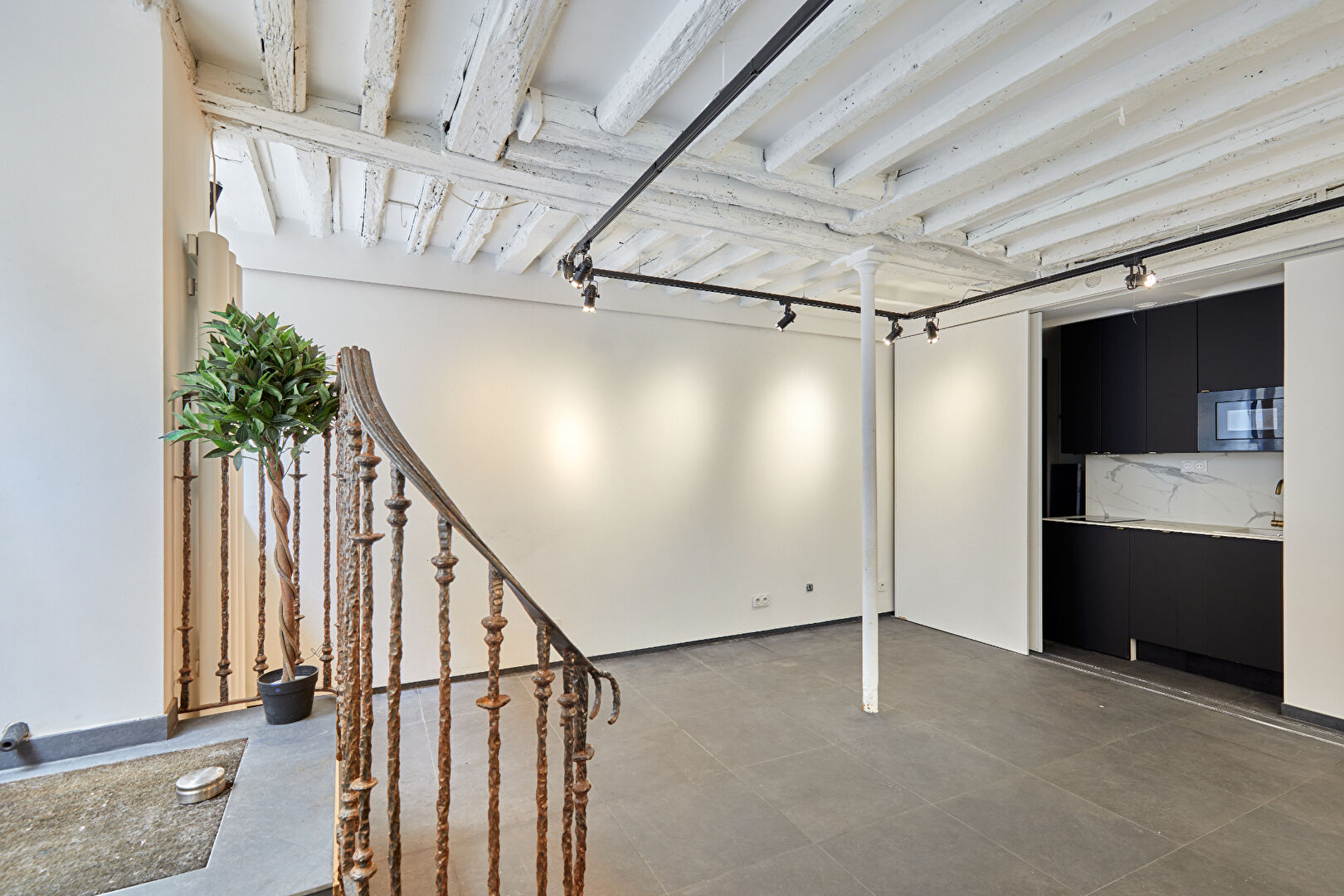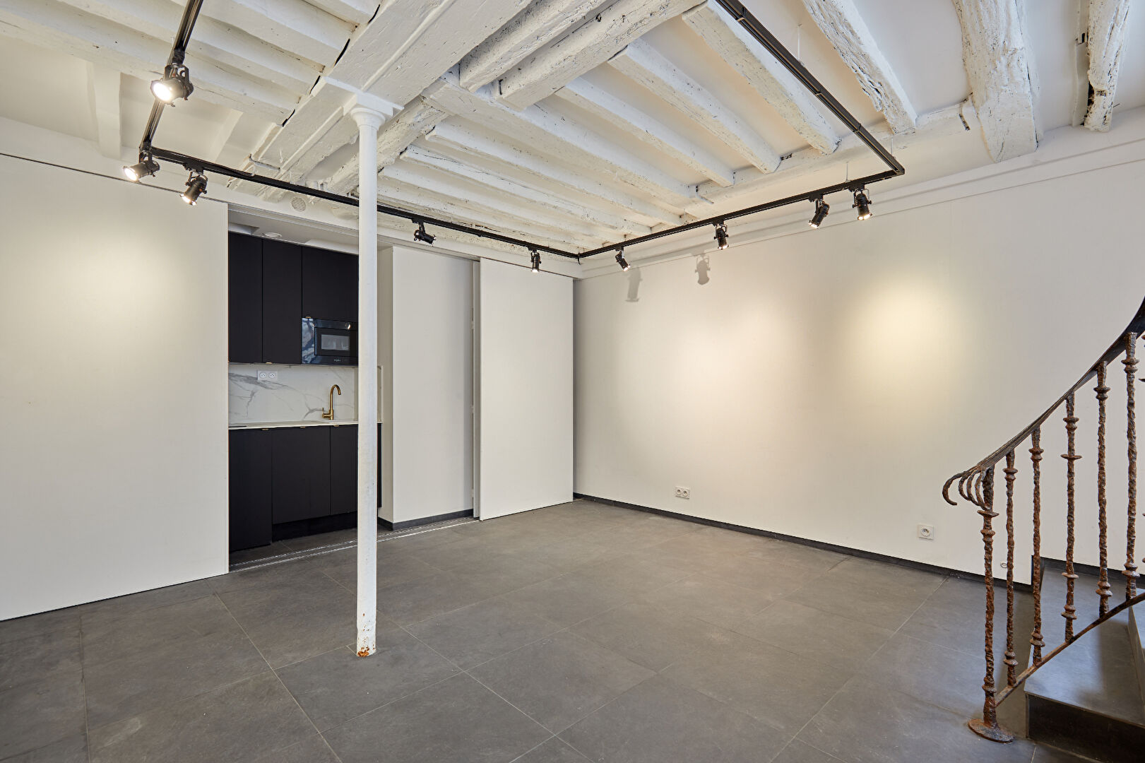Ile Saint Louis - Located on the island's main thoroughfare, this fully renovated 317 sq ft apartment/shop (Carrez law) comprises: a 295 sq ft square workspace, equipped kitchen area, bathroom with toilet, and a cellar, making this a rare property for sale. Charming and bright. All types of businesses possible, excluding those causing noise or odor nuisances. Commercial potential available. Condominiums of 15 units (). Annual expenses : 1896 euros.
