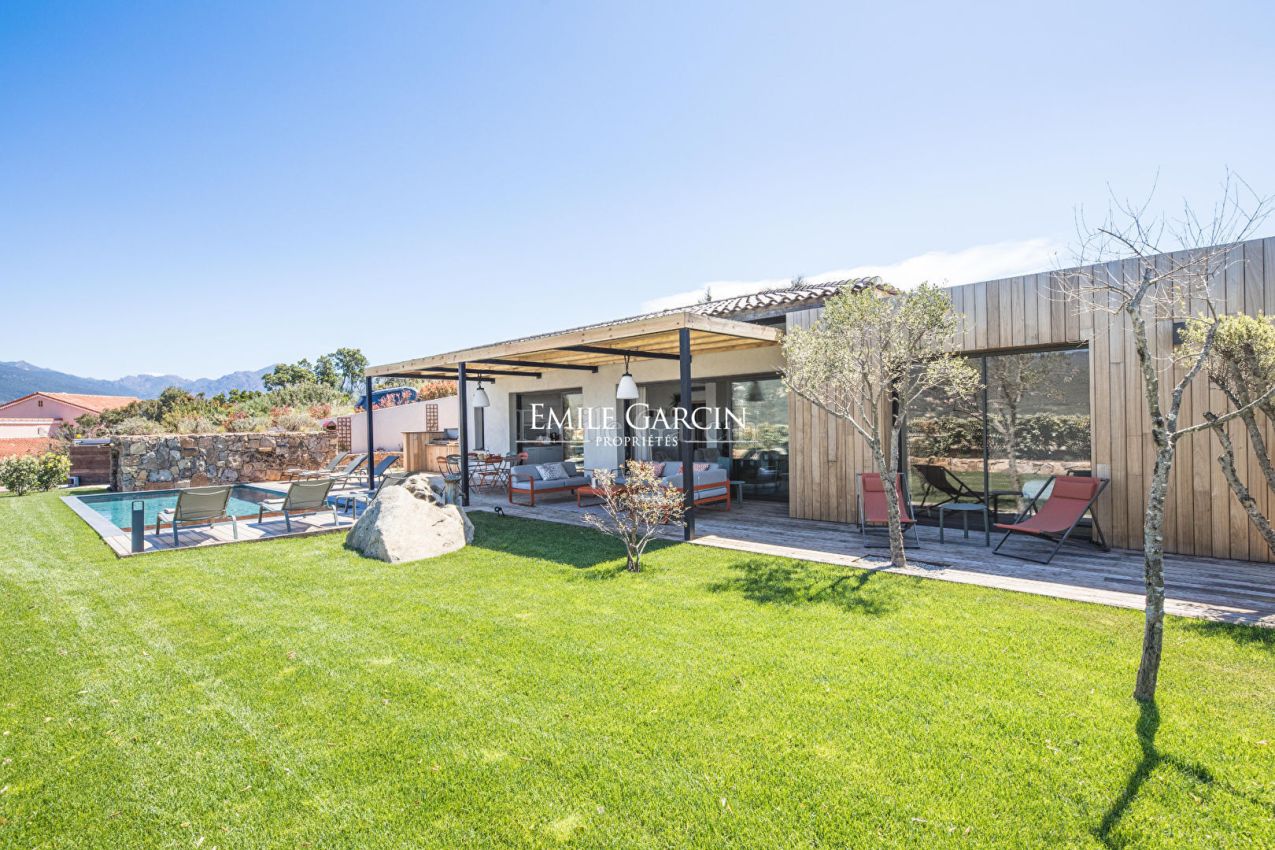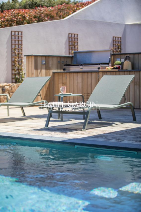 Located on the hillside in Propriano, La Casa Mirà is a modern villa of 130 sq.m offering 3 bedrooms and 2 bathrooms. Magnificent views of Valinco Bay. Fully equipped and fully air-conditioned. Beach: 10 minutes by foot. Town centre and shops: 5 minutes by car. Secure swimming pool (4 x 8m) heated from April to October. Large outdoor terrace with numerous shady areas around the swimming pool, equipped with dining area, barbecue, sofas and deckchairs. Secure parking facilities. End of stay cleaning included in the cost of your stay. Figari South Corsica Airport: 1 hour. Ajaccio: 1h 5mins.