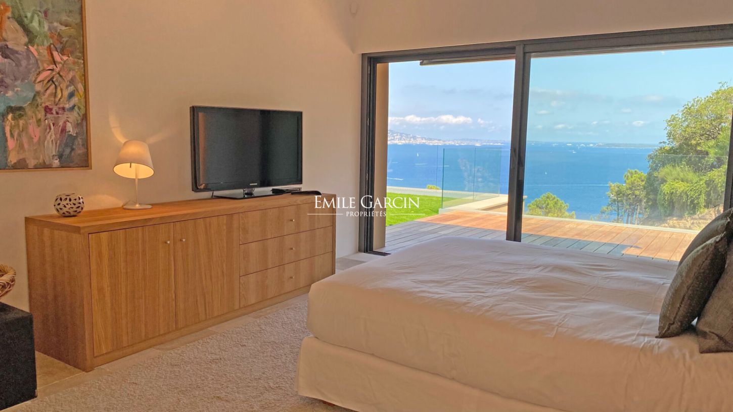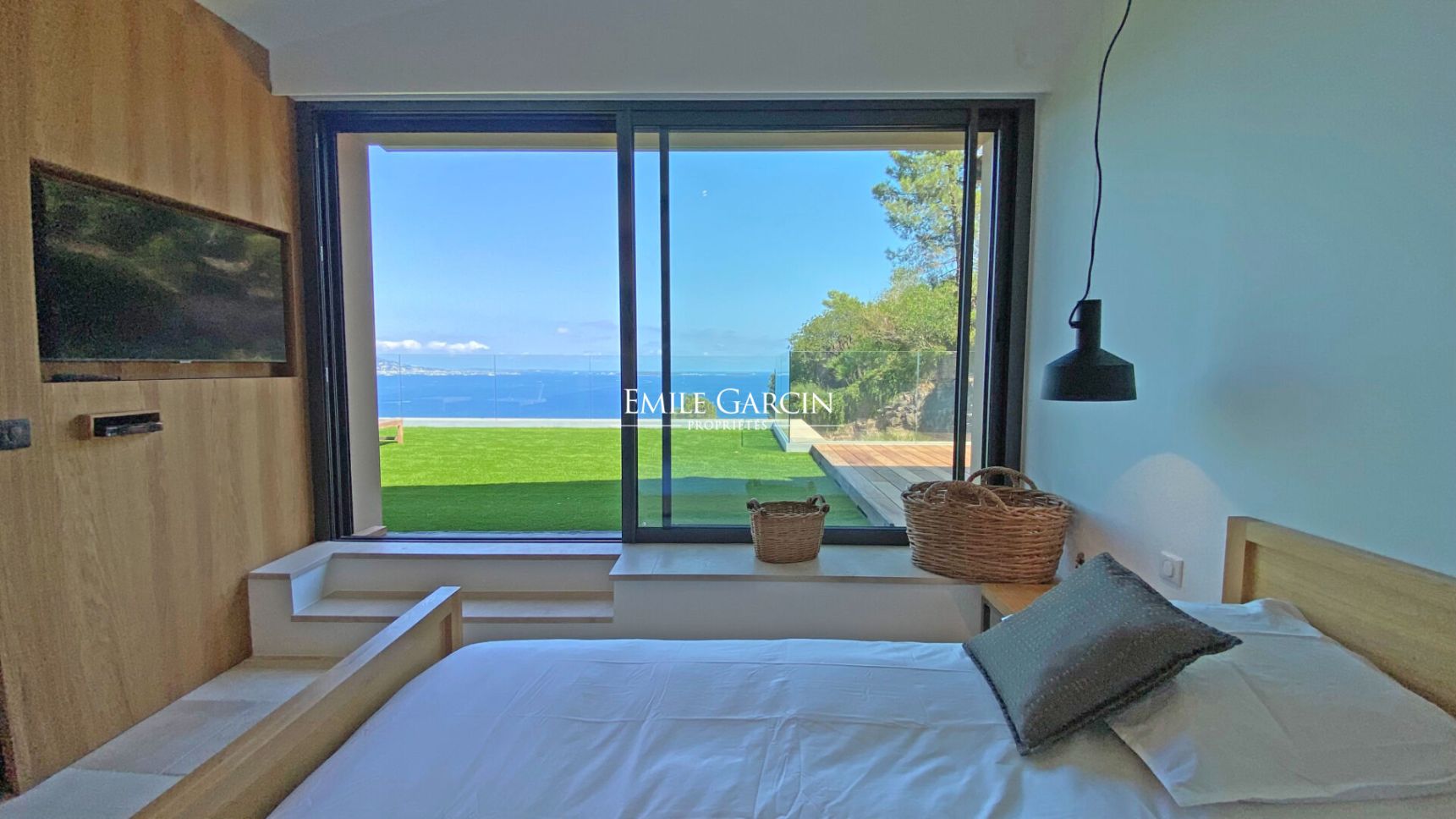 Idyllically located in Théoule, above the port of La Rague and only 800 metres from the beach, Villa Roc is the perfect setting for a dream holiday. Boasting clear views overlooking the Bay of Cannes and the Iles de Lérins, this comprehensively equipped property presents a tasteful decor. Its outstanding features include an infinity pool and hot tub that will make you feel like you are floating above the Mediterranean, and a 160 sq.m terrace nestling sweetly against the backdrop of the Esterel. The main living space, living room, dining room and open kitchen are all in perfect harmony with the outside spaces. The bedrooms are spacious, comfortable, superbly decorated and each fitted with a private bathroom. The whole villa is air conditioned and heated.