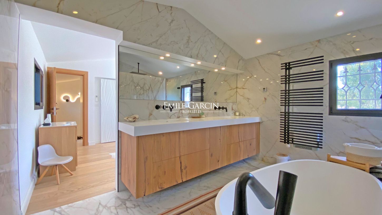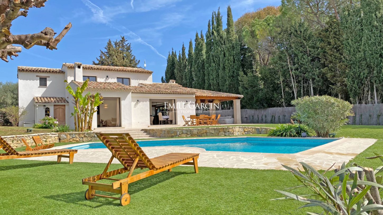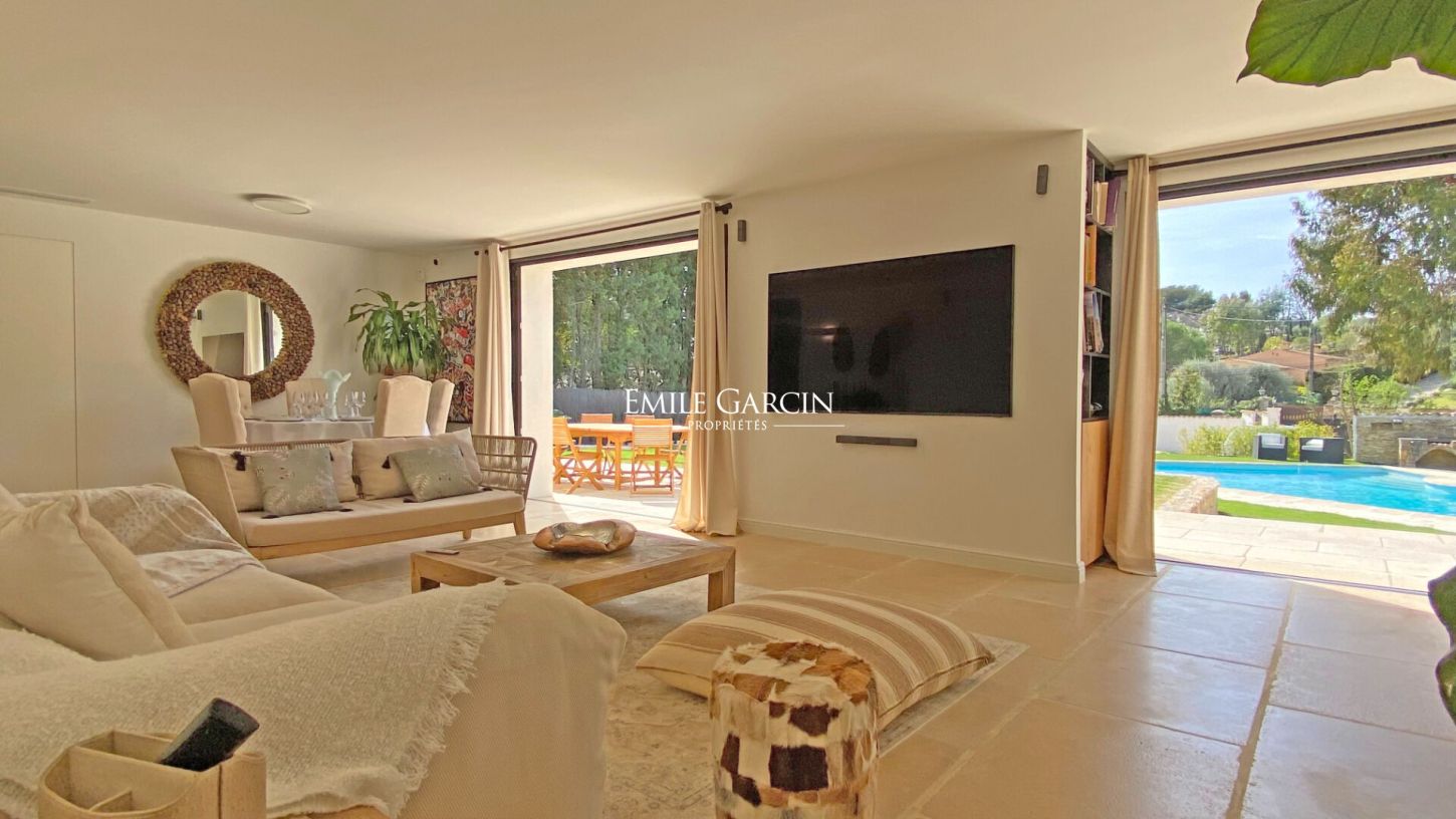 Beautiful contemporary-style house located in the most sought-after area of Mougins. Peaceful and secluded. Air conditioning in the living areas and upstairs bedrooms. Sleeps up to 8 people. Four bedrooms, including two on the ground floor. Two bathrooms. Swimming pool, parking for five cars. Charcoal barbecue and brasero grill.