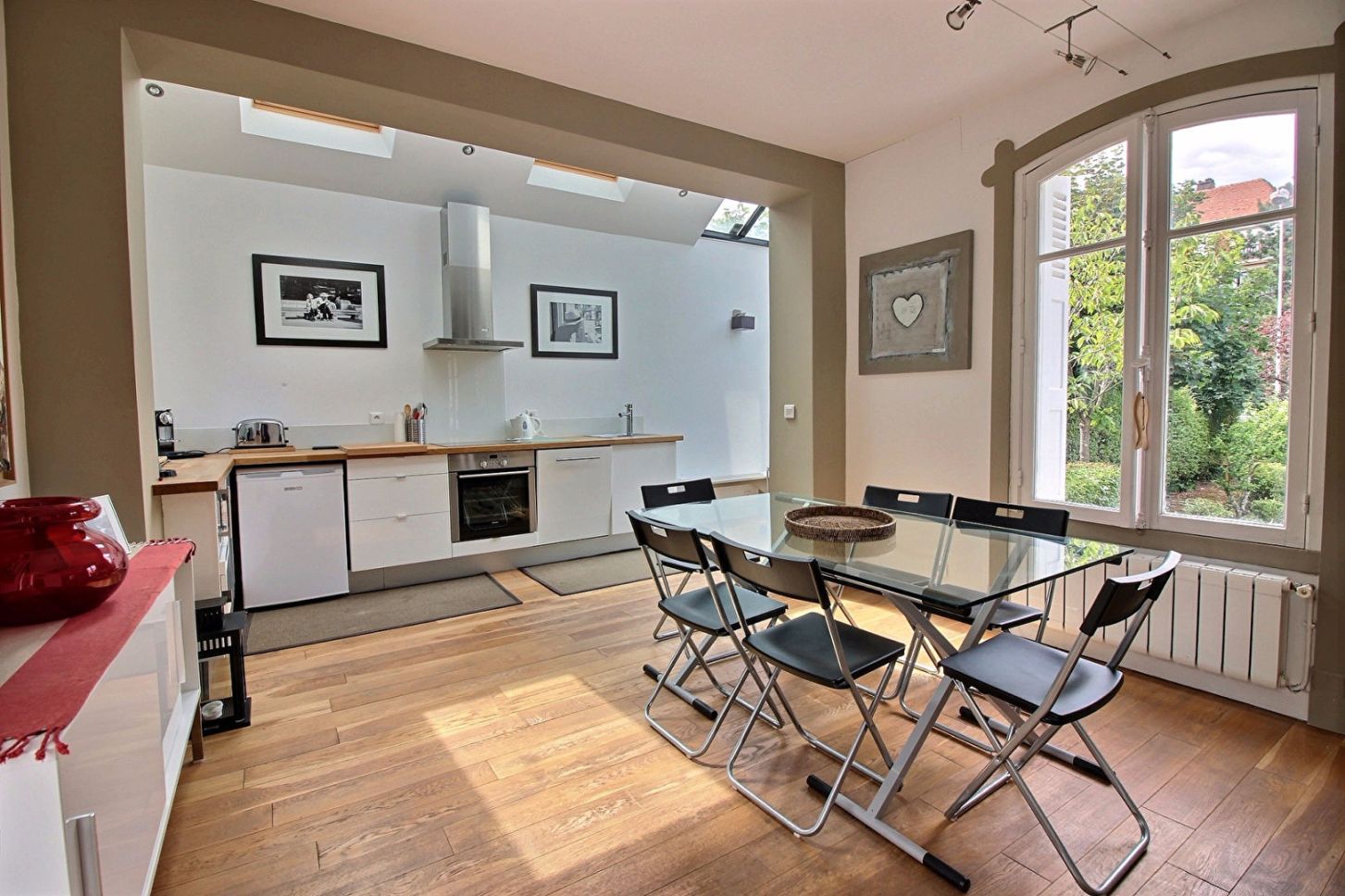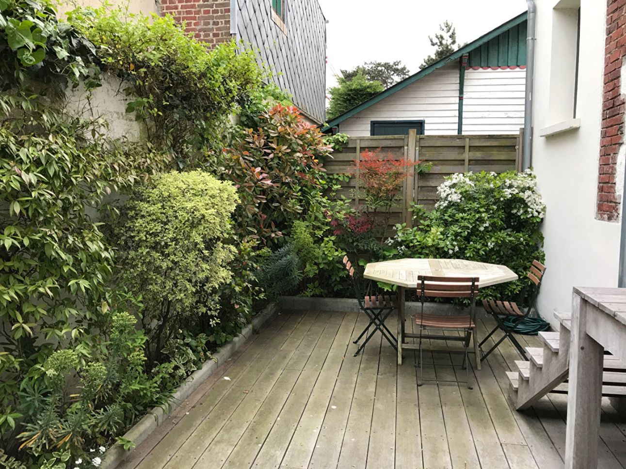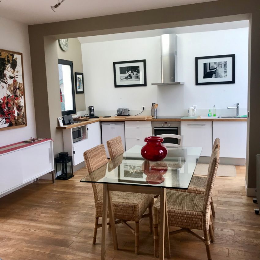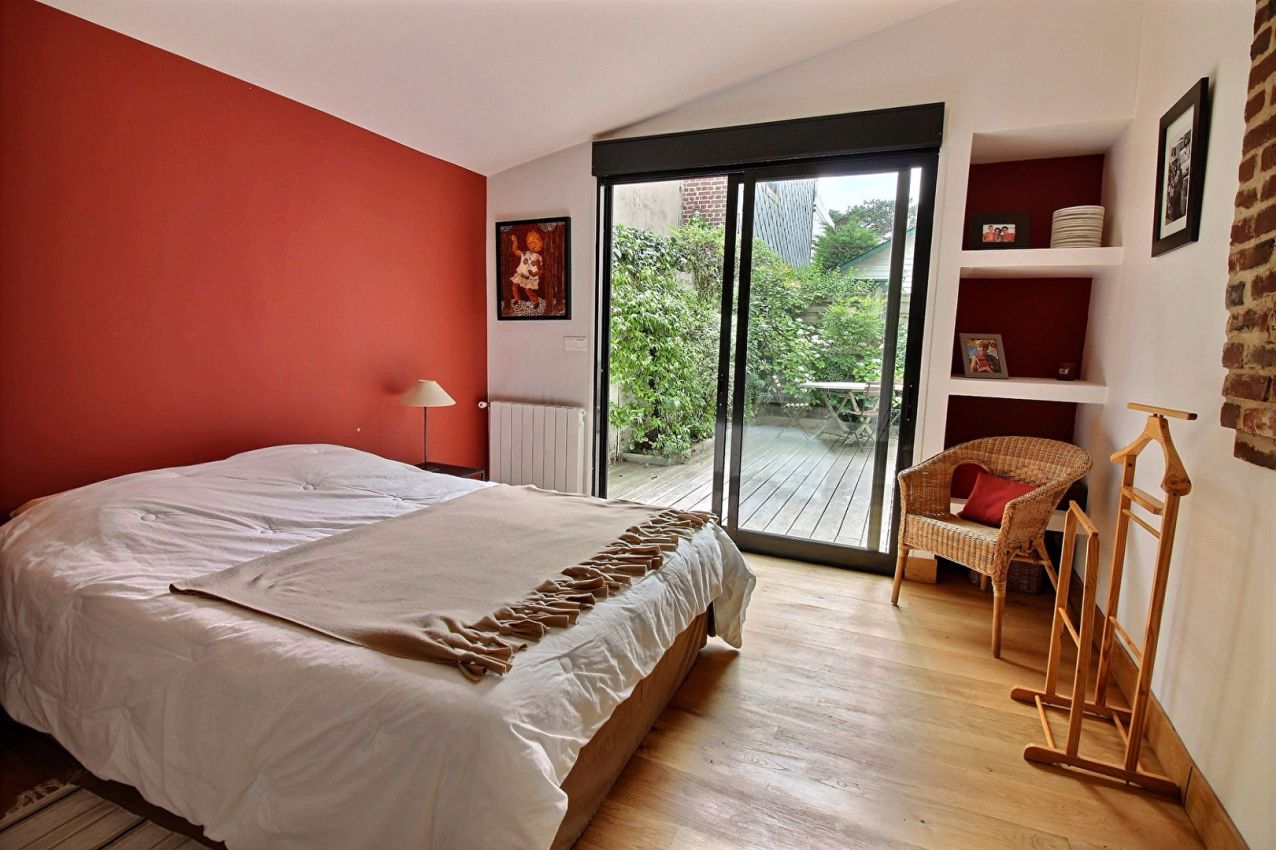 Located in the centre of Deauville, this handsome property features an entry hall with access to an equipped open kitchen and TV lounge. At garden level, it offers an ensuite bedroom, a WC, and a drying area with adjoining terrace. The garage includes a laundry area and boiler room, while the first floor comprises 2 bedrooms (one double and one twin) and a shower-room. Wi-Fi.