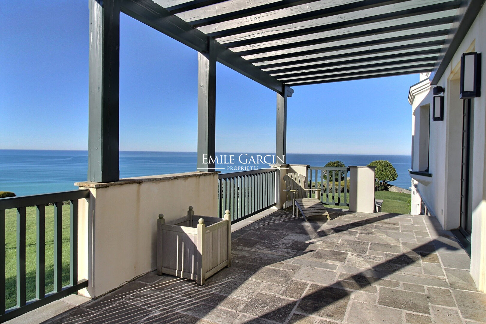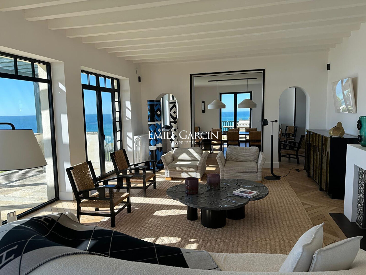 This unique and delightful 1920s property faces the ocean in Bidart. Sitting on 5 hectares of private grounds, it offers a 360-degree panoramic view. The property includes a caretaker's house and an outbuilding, plus the main building of approximately 400 sq.m of fully renovated living area with a high-end finish. The entrance leads to a sumptuous living area with lounge, dining room backing onto two large terraces and kitchen. The four suites offer breathtaking views of the ocean and the mountains. Additional facilities include a guest house of approximately 115 sq.m, a caretaker's house, a heated swimming pool, a sauna and a garage. An exceptional property.