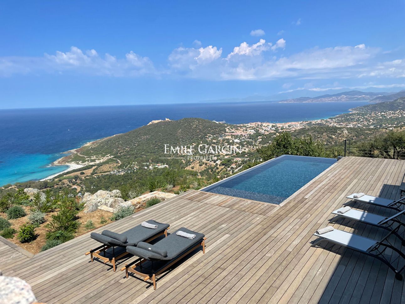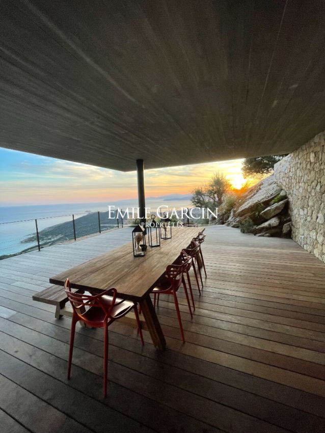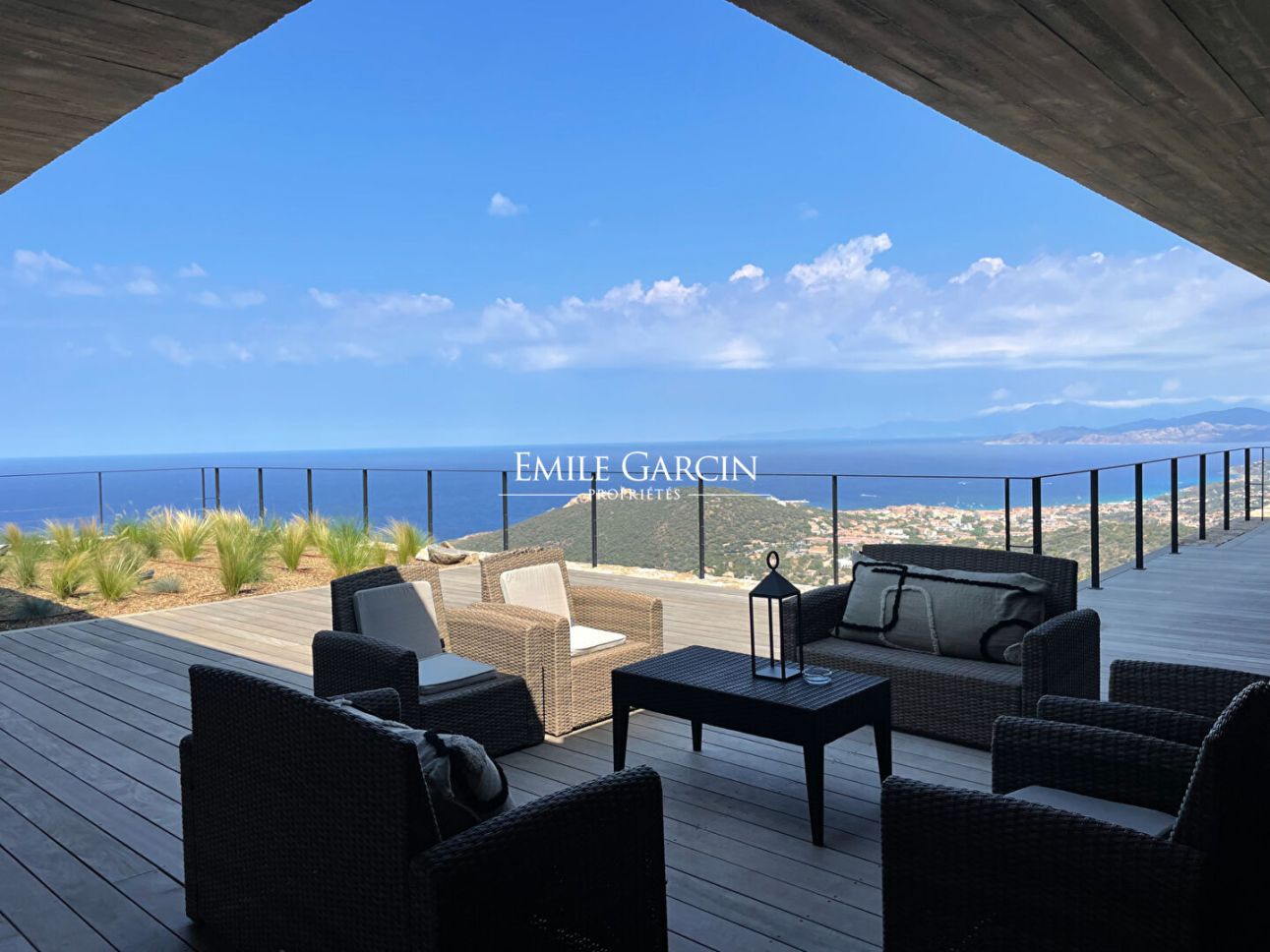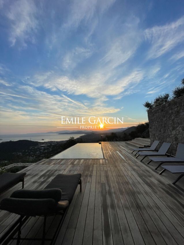 La Casa Alta Cima is a new property presenting 4 bedrooms and 4 bathrooms, built entirely on the hillside with a 180-degree view of the seafront and the famous islands of Ile Rousse. Offering a chic decor combining the warmth of wood and the coolness of raw concrete, this residence will make an intoxicating setting for your holidays in Corsica. The house is surrounded by a large wooden terrace which overlooks the sea, as well as several relaxing areas allowing you to enjoy the view in complete privacy. Additional outdoor facilities include a fully equipped kitchen and a heated infinity pool (10 x 4m) secured by an alarm. You will also have access to a hammam, a hot tub and a cinema room, which can also be converted into a child's bedroom. Cleaning 5 days a week included in the cost of your stay. Calvi airport: 30 mins. Ile Rousse town centre: 15 mins. Beach: 10 mins.