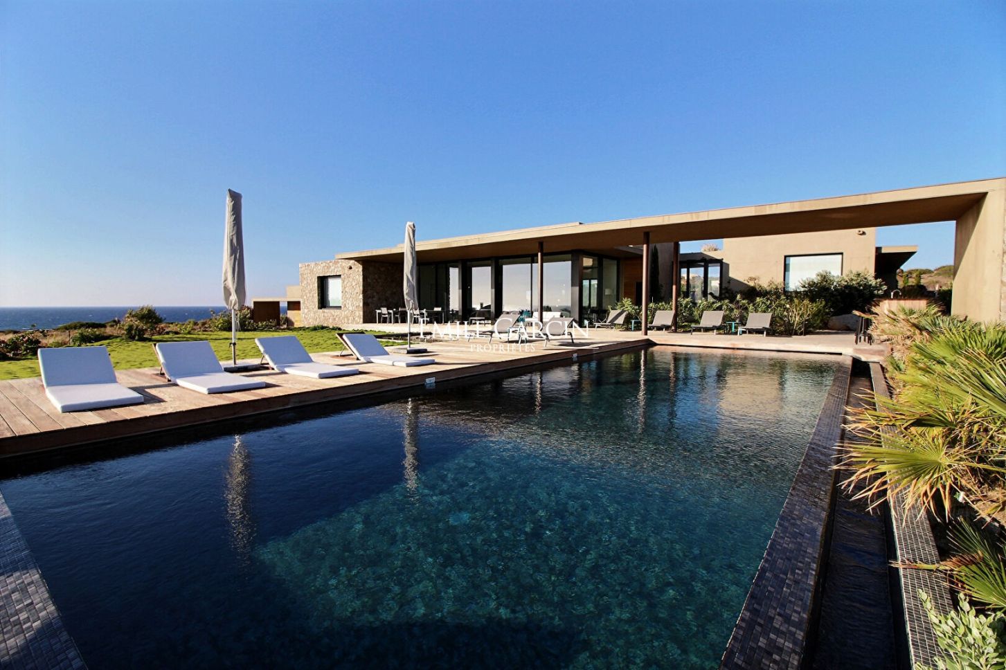 La Maison des Mascareignes is ideally located between Ile Rousse and Calvi, in an unspoiled location 500 metres from the seafront and 1.5 km from the beautiful turquoise beach of Ghjunchitu. 6 bedrooms and 6 bathrooms. Underfloor air-conditioning. Heated swimming pool. Garden featuring rare exotic plants and ornamental ponds. 15 x 5 m heated swimming pool secured by an electric roller cover. Two terraces (front and rear). 2,500 sq.m of land with rare exotic vegetation and fish ponds. Calvi Airport: 20 mins. Bastia: 1h15mins. Beach: 5 mins by foot. On the ground floor, the entrance leads to a large living room of 100 sq.m including the lounge, the dining room and the open kitchen. High-end ?Miele? household appliances: traditional oven, steam oven, microwave oven, food warmer, two refrigerators, two freezers, two dishwashers, Nespresso coffee machine, etc. Pantry/utility room: washing machine, dryer, refrigerator. Bedroom 1 (Master bedroom): 180 x 200cm bed, TV, bathroom with bathtub and shower, toilet, double sink, very pretty sea view. Bedroom 2: 2 x 90 cm twin beds (can be joined with comfort mattress topper), shower room, TV, sink and toilet, sea and garden view. Bedroom 3: 2 x 90 cm twin beds (can be joined with comfort mattress topper), shower room, TV, sink and toilet, sea and garden view (this bedroom can be accessed through the first bedroom or from the outside. In the outbuilding, you will find: Bedroom 4: 2 x 90 cm twin beds (can be joined with comfort mattress topper), shower room, TV, sink and toilet, sea, swimming pool and garden view. Bedroom 5: 2 x 90 cm twin beds (can be joined with comfort mattress topper), shower room, TV, sink and toilet, garden view. Bedroom 6: 2 x 90 cm twin beds (can be joined with comfort mattress topper), shower room, TV, sink and toilet, garden view. The fourth, fifth and sixth bedrooms are completely independent of one another and accessible from the outdoor terrace.