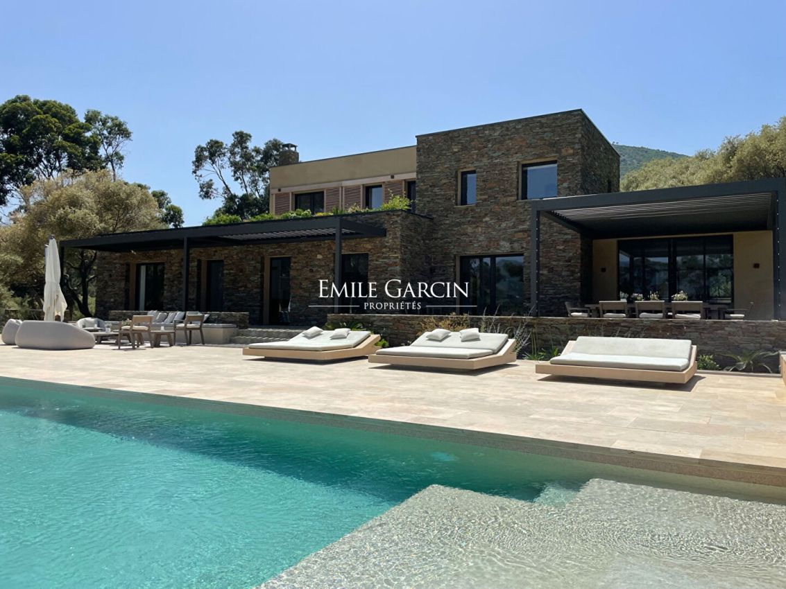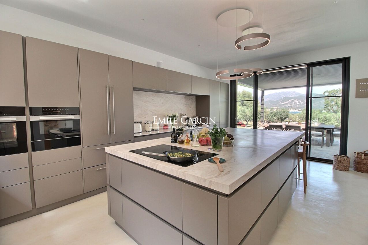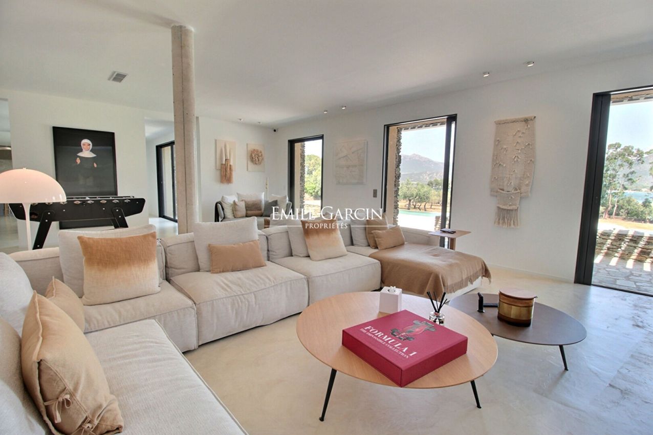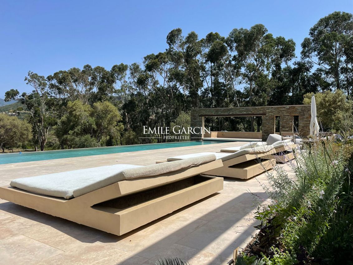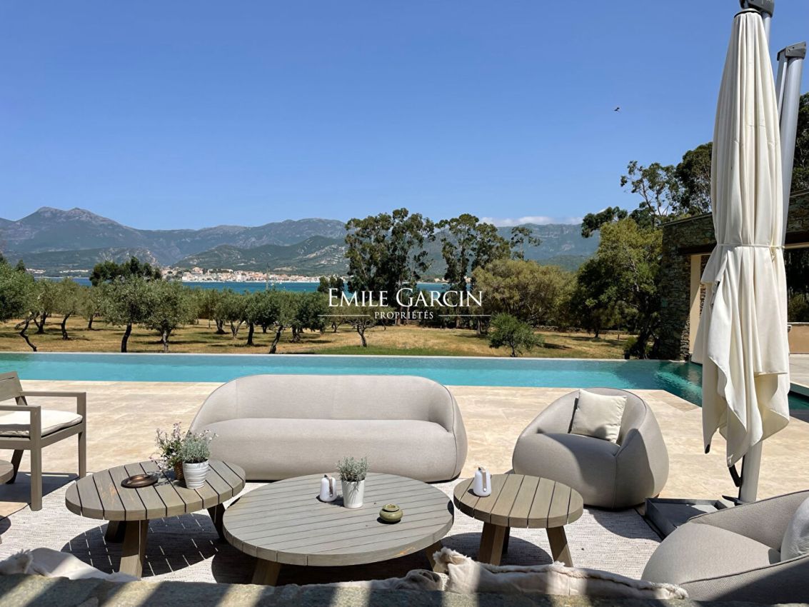 Magnificent property presenting 6 bedrooms and 6 bathrooms, accommodating up to 14 people. It is located a few steps from the seafront and less than 10 minutes from the centre of the charming village of St Florent. The ideal setting for an exotic family holiday among the olive trees. Fully air-conditioned. Infinity pool. Two outdoor kitchens, pétanque area with outdoor bar and sound system. Services of an onsite cook 6 days a week. Domestic services (8 hours a day, 6 days a week). Bastia Airport: 30 mins. St Florent town center: 5 mins. Beach: 5 mins by foot.