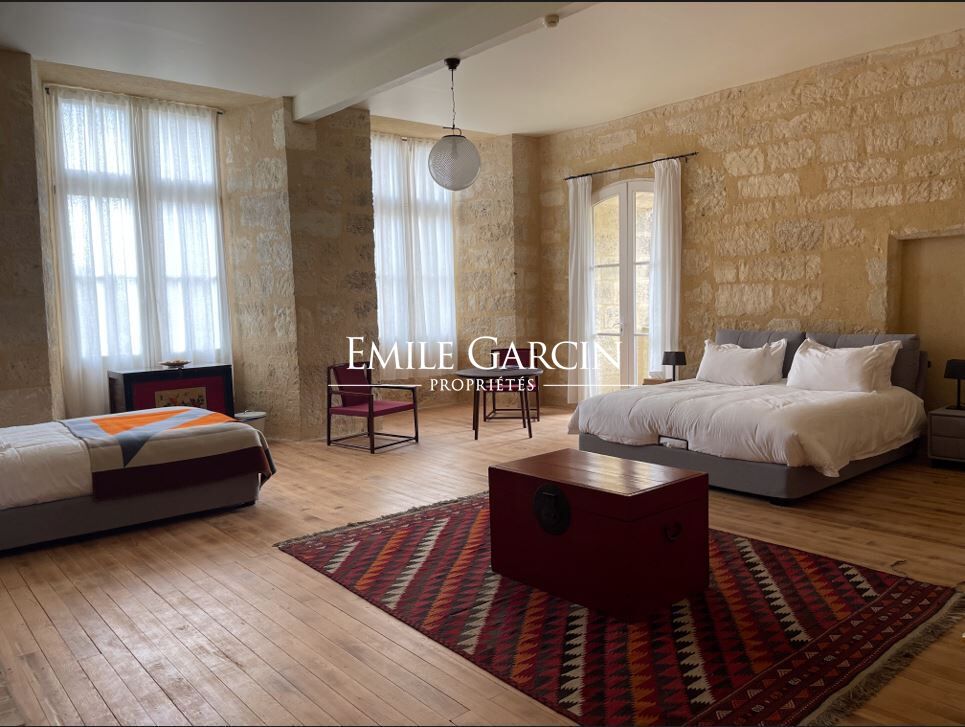 Magnificent château nestling in the heart of the Bordeaux vineyards, surrounded by 1.5 hectares of private grounds. Located a few kilometres from the charming town of Libourne, the property is within easy reach of Libourne train station and Bordeaux airport. It presents eight spacious bedrooms, allowing flexible accommodation according to your needs: 4x King Size beds (180 cm), 7x single beds (120 cm) and 4x Queen Size beds (160 cm) are spread between the main building and an outbuilding. The reception areas are welcoming and perfectly furnished, including a large living room with fireplace, a dining room and a professional-standard kitchen equipped with high-end appliances. Outside, you can relax around the heated swimming pool and enjoy several terraces equipped with BBQ, plancha and elegant garden furniture. Whether you are organising an intimate getaway or a stay with a large group, this château presents the perfect blend of luxury, comfort and authenticity and guarantees a unique holiday in the heart of the Bordeaux countryside. Accommodation capacity: 15 - 23 people maximum.