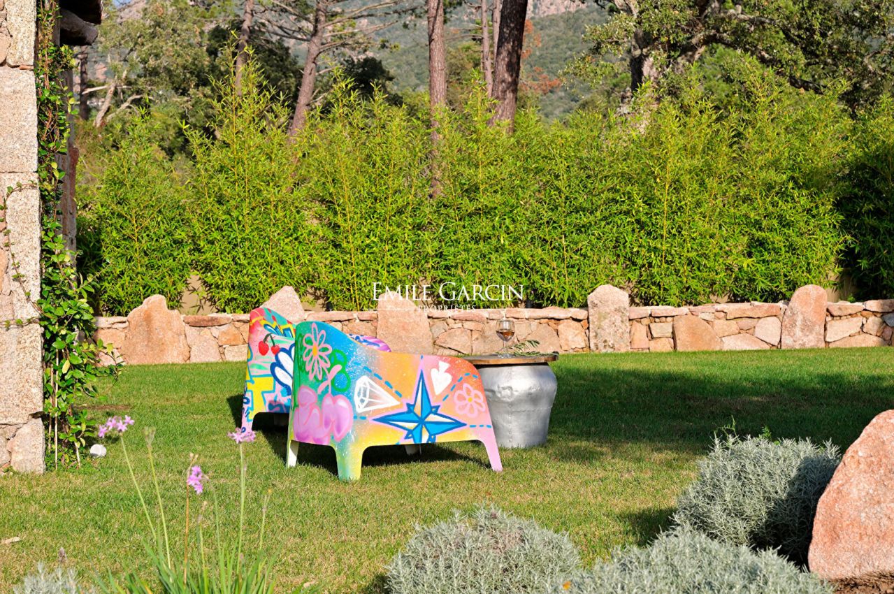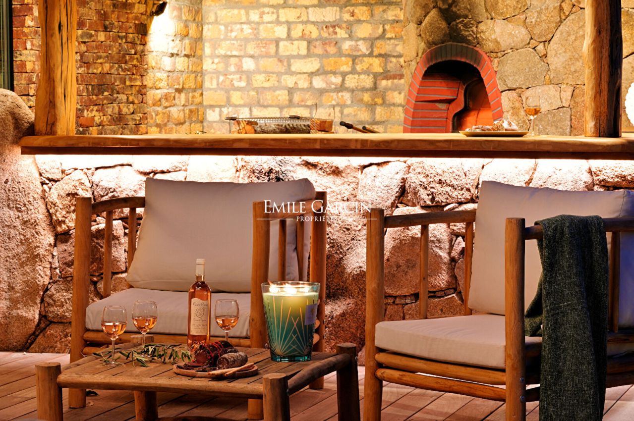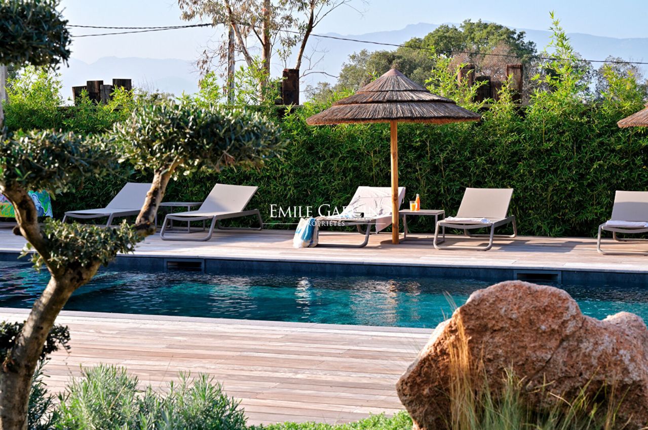 Beautiful property presenting 6 bedrooms and 6 bathrooms, tastefully decorated in colourful and warm tones. Fully equipped with high quality facilities, this is a true oasis of calm just a few minutes from the beachfront and the centre of Porto-Vecchio. Fully air-conditioned. Beautiful landscaped grounds. Furnished with sofas, several deckchairs and parasols. Large heated swimming pool (16 x 4.5m) secured by roller cover. Pool house of 70 sq.m with a large table that can accommodate around 15 guests, plus a beautiful fully equipped kitchen, a TV, and a shower room with toilet. 25 minutes from Figari airport. 10 minutes from the port and the centre of Porto-Vecchio. 15 minutes from Palombaggia Beach. Cleaning included in the cost of your stay.