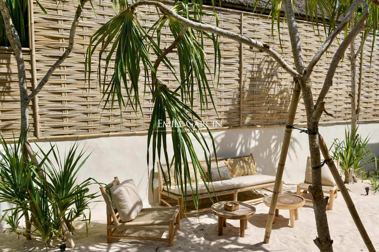 Combining contemporary mid-century inspired design with traditional Indonesian craftsmanship, this seaside vacation oasis is designed for those seeking a slice of paradise in Nusa Lembongan. These secluded cabins are nestled directly on Sandy Bay Beach, where refinement meets island life. The house offers breathtaking ocean views and private beach access. Comprising four independent bedrooms with en-suite bathrooms and an open-plan living and dining area amidst an exotic garden, this home is ideal for families or a group of friends and can accommodate up to 12 people.