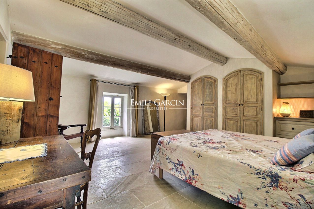 In a peaceful setting (the last house on a dead-end road), the 18th-century Mas de l'Escalette is nestled in a secluded and sheltered location, offering breathtaking panoramic views of the surrounding countryside and the Luberon mountains. The village is within walking distance. The property features 5 bedrooms (4 with air conditioning), a children's dormitory, and 5 bathrooms. It can accommodate up to 10 people (including children). Enjoy the 11 x 5 m heated infinity pool. The property sits on 7.5 hectares.