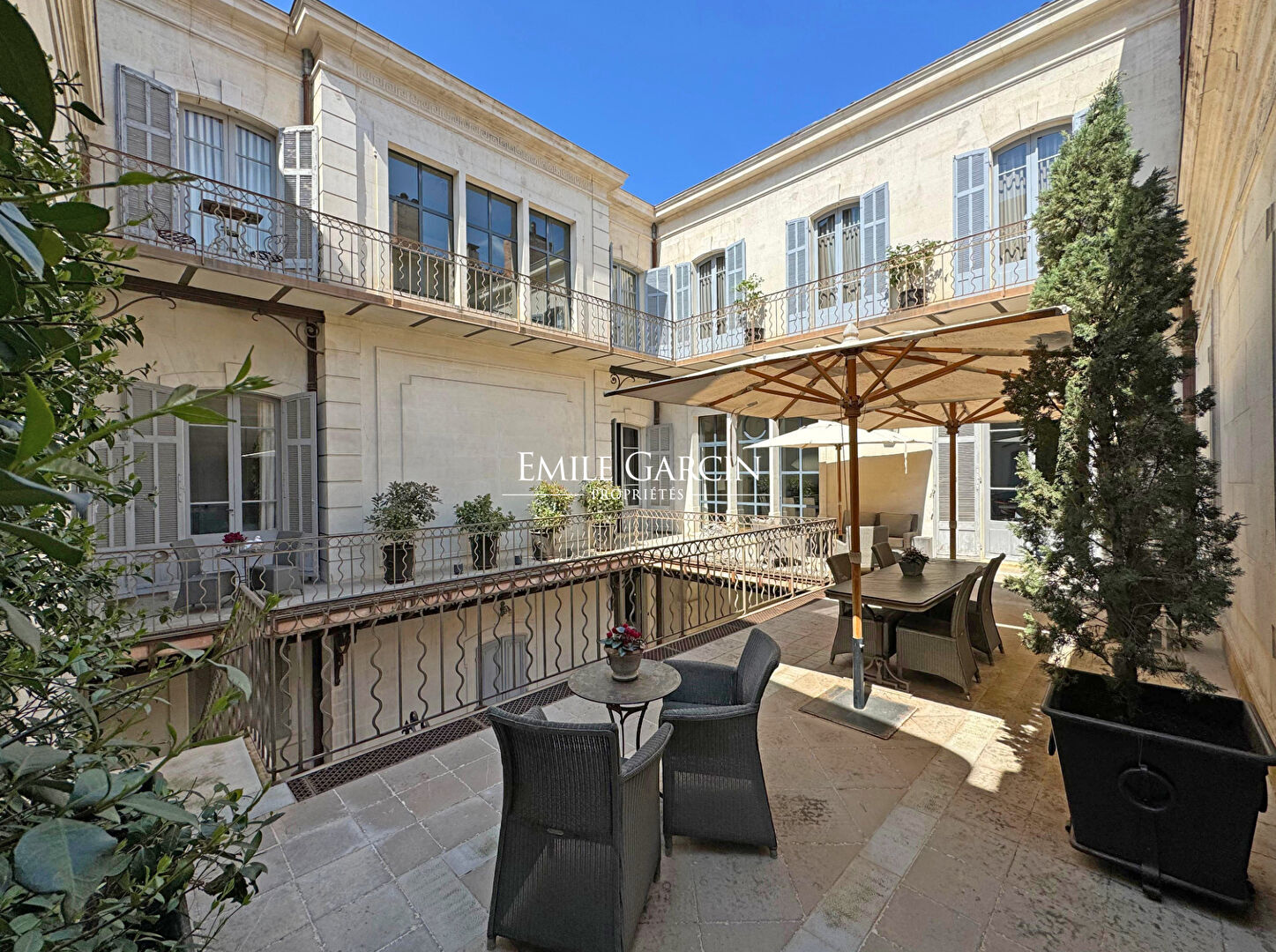 Located on a quiet street near the Palais des Papes, this fully renovated city mansion presents a winning blend of historic charm, unique architectural elements and modern levels of comfort. A spacious entrance hall opens onto an interior courtyard (with the potential of being made into a small garden), as well as a staff apartment. A magnificent marble staircase leads to the upper floors, which are also accessible via an elevator. This part of the property comprises a large living room, a library, a bright dining room with a glass roof, a kitchen, a bedroom and a small workshop. You will find four bedrooms on these floors, including two suites with dressing rooms, shower rooms, bathrooms, and private toilets, plus two other bedrooms with a shared shower room. This unique property also features a caretaker's apartment, a double garage and an attic. An exceptional setting for anyone in search of refinement and tranquility in the heart of Avignon.