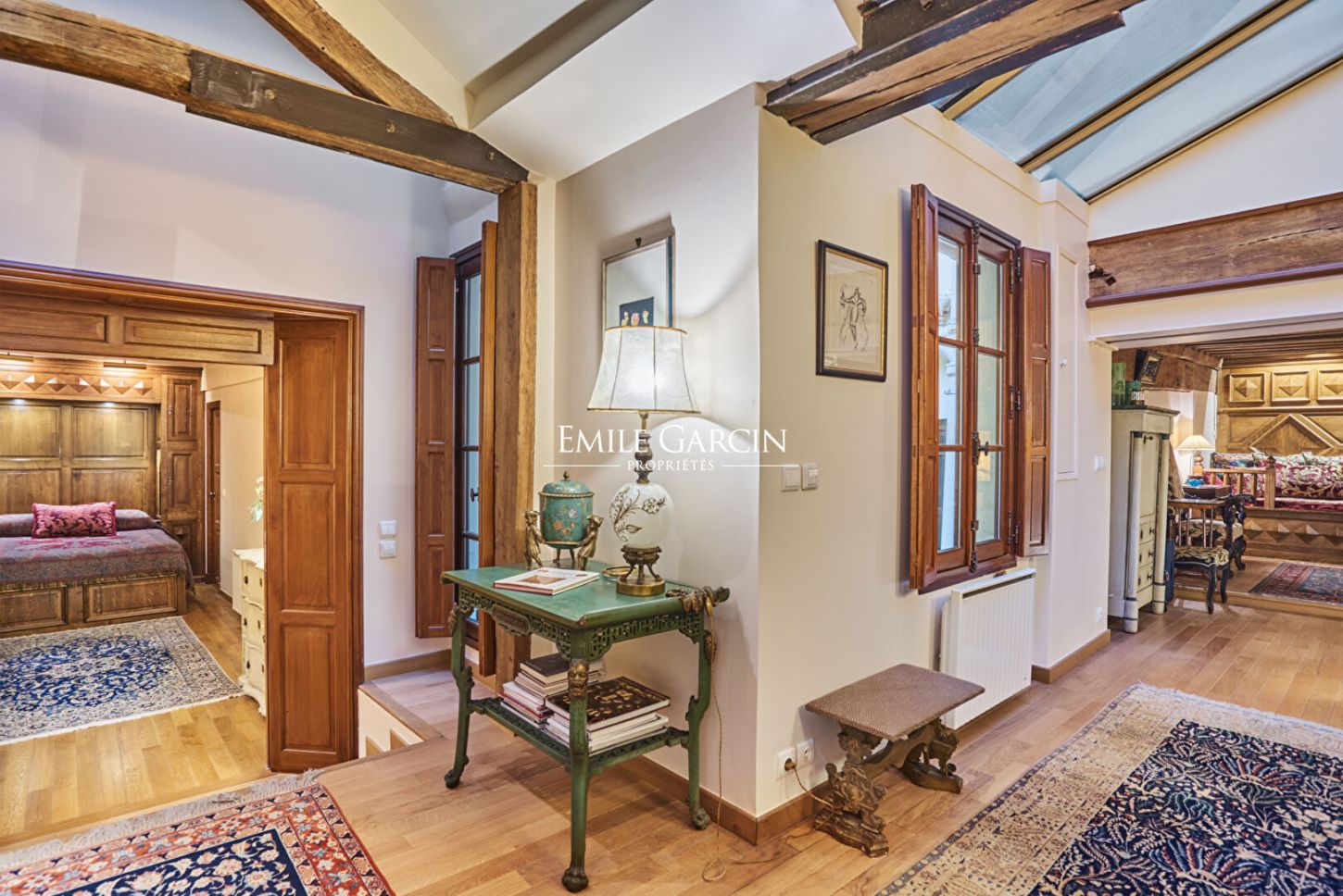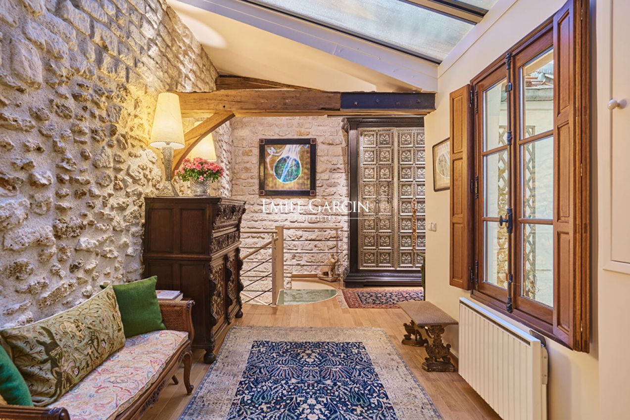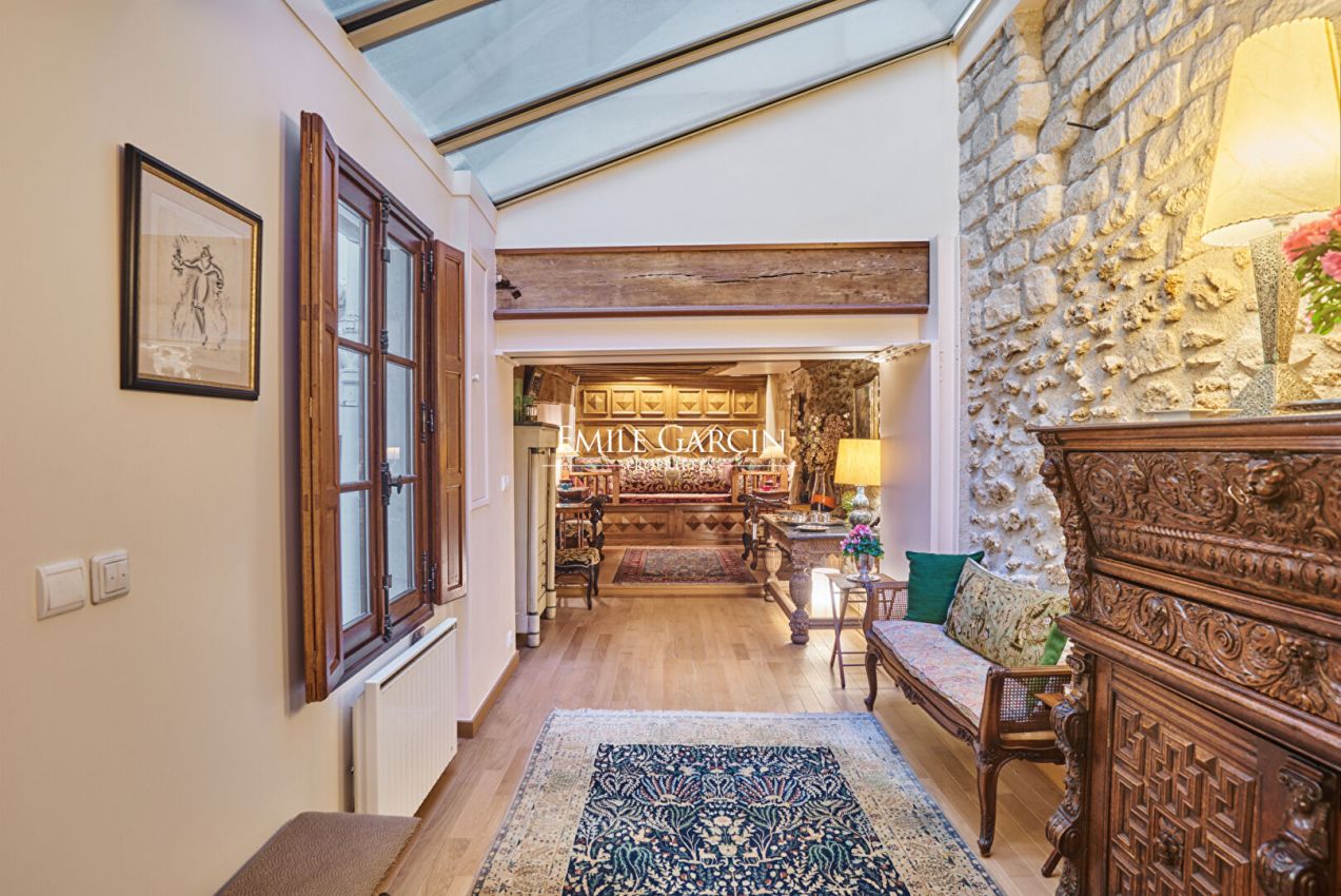 In exclusivity, in a building of the XIX century, the apartment of 68,17 m² loi Carrez in two floors is located in the heart of the island, on court in absolute calm. The apartment has direct access to the private garage, a particularly rare asset on the island, it enjoys soft light through windows overlooking the courtyard and zenith lighting throughout the day. Old beams, wooden shutters, woodwork, noble materials chosen with care. The set composes an interior where each detail finds its place, a refined atmosphere. It consists on the first floor: of the living room, a bedroom with bathroom and toilet, on the ground floor: an independent kitchen, a bathroom with toilet. In the basement (cellar), a ventilated laundry room accompanies this property. Direct access to the garage (area 17.49 m²). Condominiums of 18 units (No proceedings in progress). Annual expenses : 2760 euros.